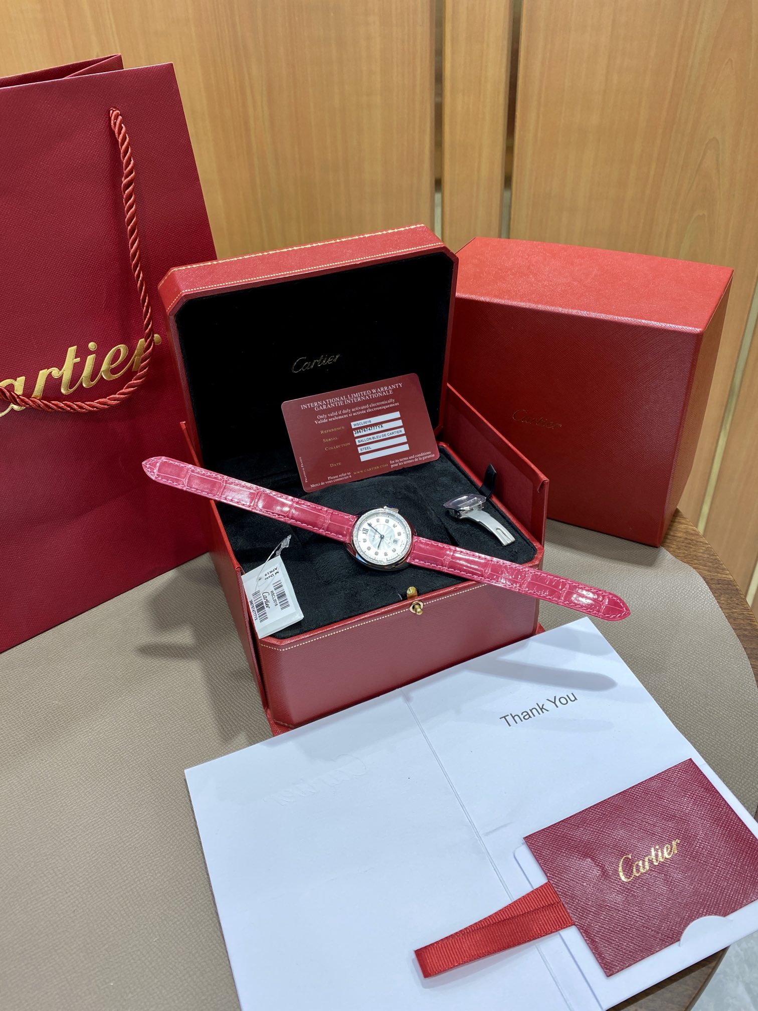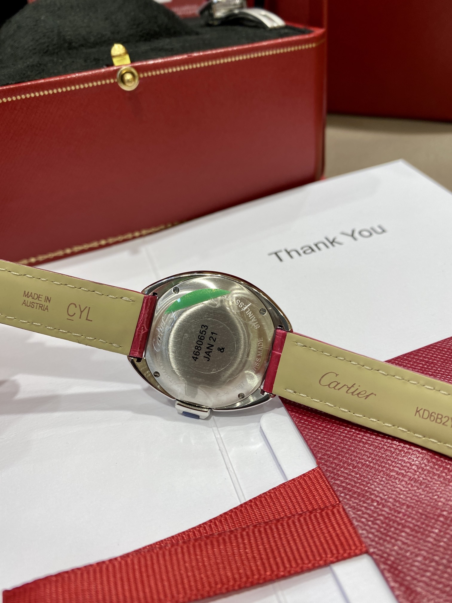 Cartier Key Series The watch retains Cartier's classic design: Arabic numeral hour markers and sword-shaped blue steel hands, a crown shaped like a key with a sapphire set on top, a guilloche dial with sunray pattern, a date display window at the 6 o'clock position. The watch is paired with an alligator leather strap, features an imported automatic mechanical movement, a 316L stainless steel case, 31mm size, and uses an abalone shell shape. The classic design has high recognizability and is suitable for any occasion, making it a watch with high cost performance.