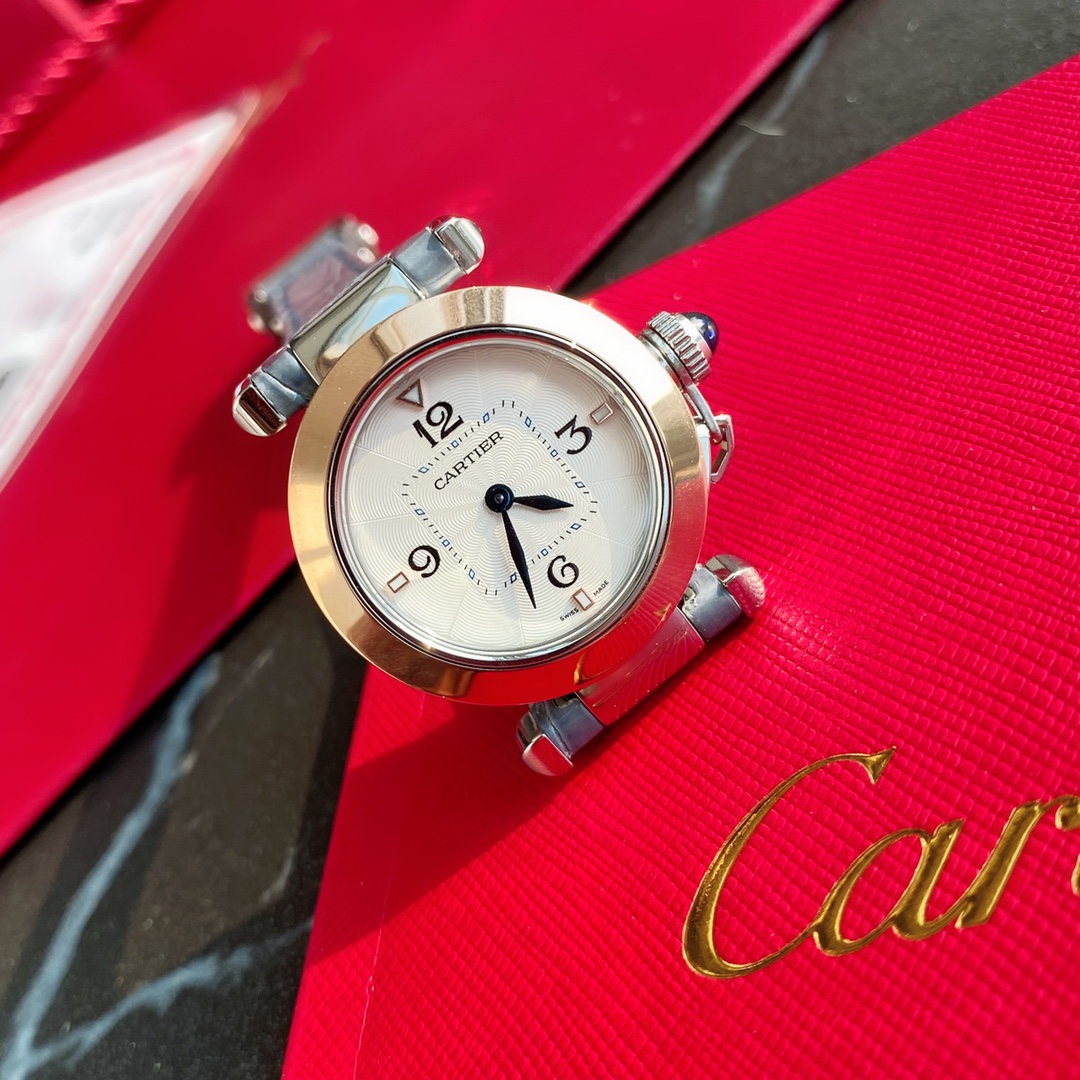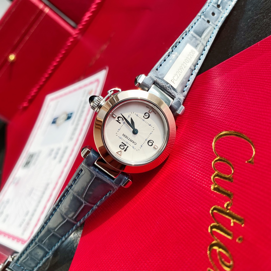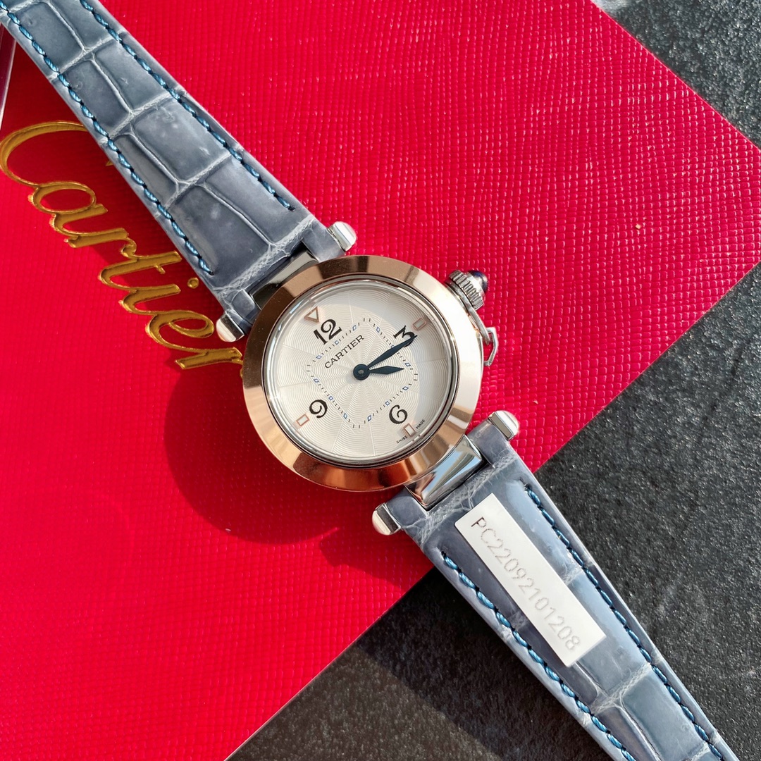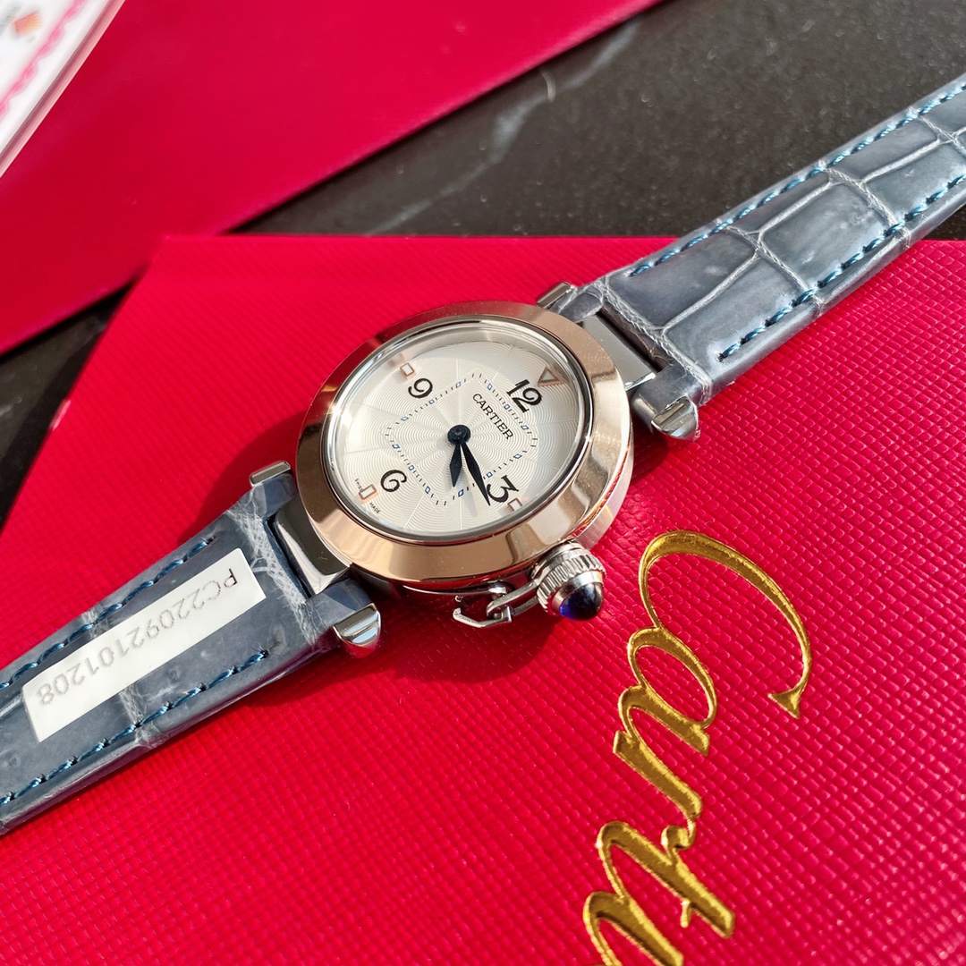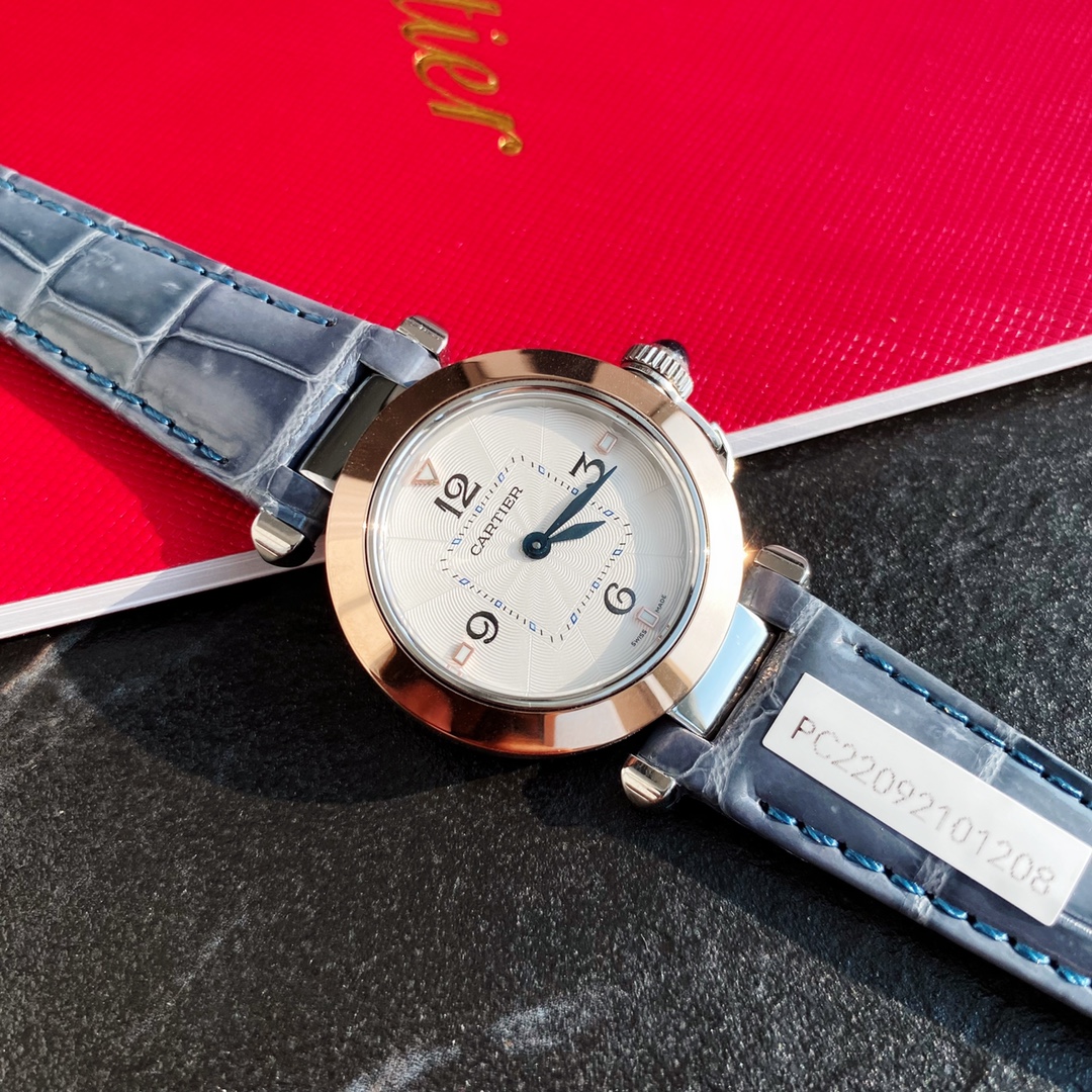 Cartier Pasha 2022 new release, 30mm diameter, 8.22mm thickness, Swiss quartz movement, alligator strap, four colors available.