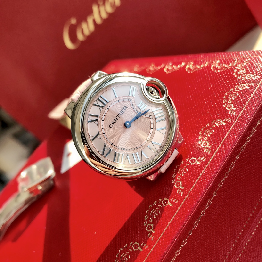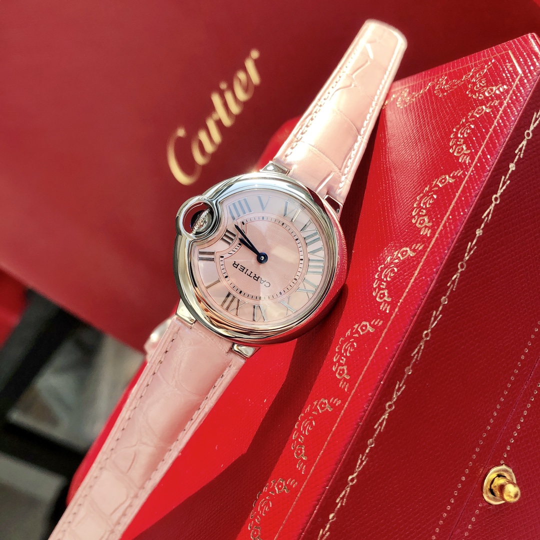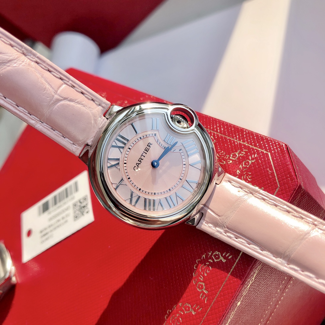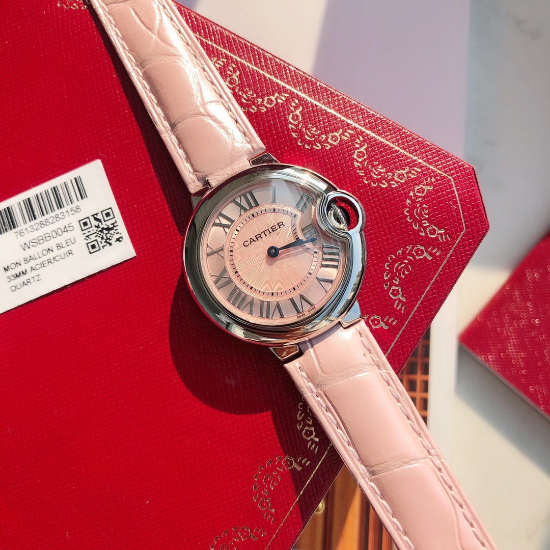 Batch pink 33 quartz with American alligator leather. Heavyweight launch! One of the most popular styles globally! A timeless classic that can carry the weight of years, never going out of style! Exclusive channel! The movement is Swiss quartz. Cartier, the world's top jewelry and watch brand, has created numerous classics throughout its long brand history, such as legendary watch series like Santos and Tank. In recent years, the most popular Cartier watch model is undoubtedly the Ballon Bleu. The ultra-thin watch, with its slim profile and lightweight texture, brings the inherent elegance of the Ballon Bleu watch series to the extreme.