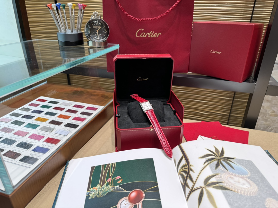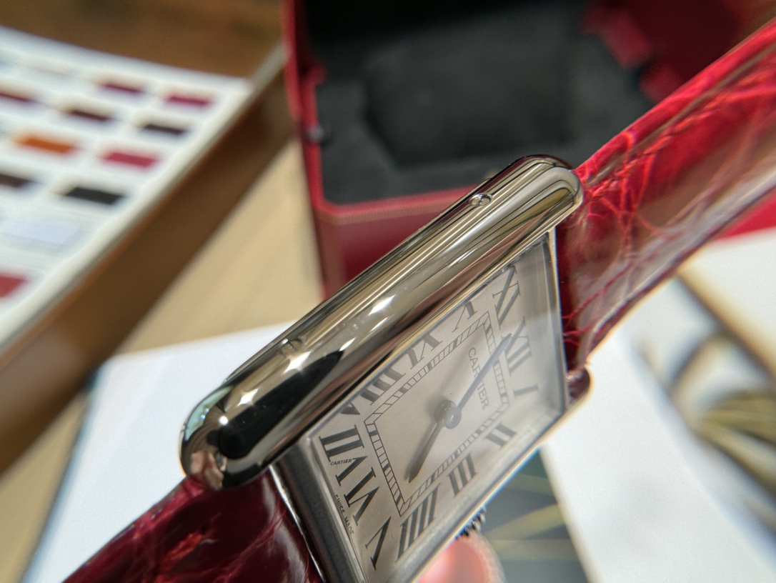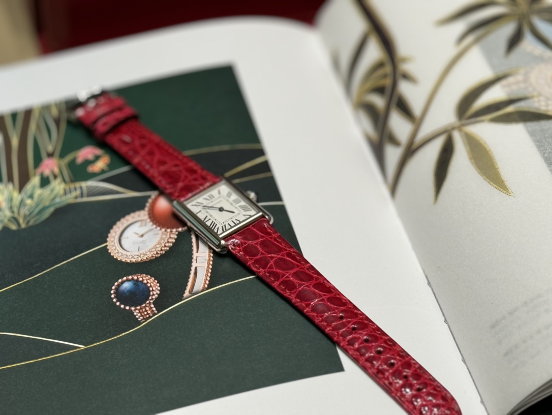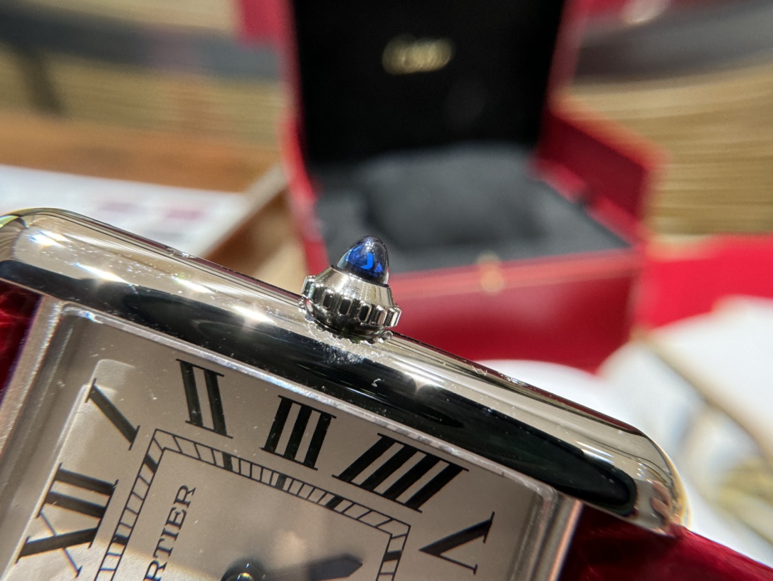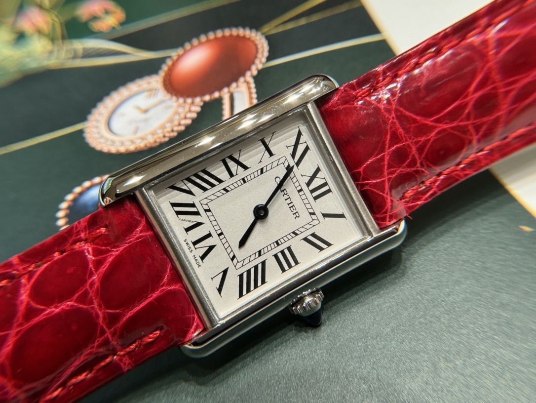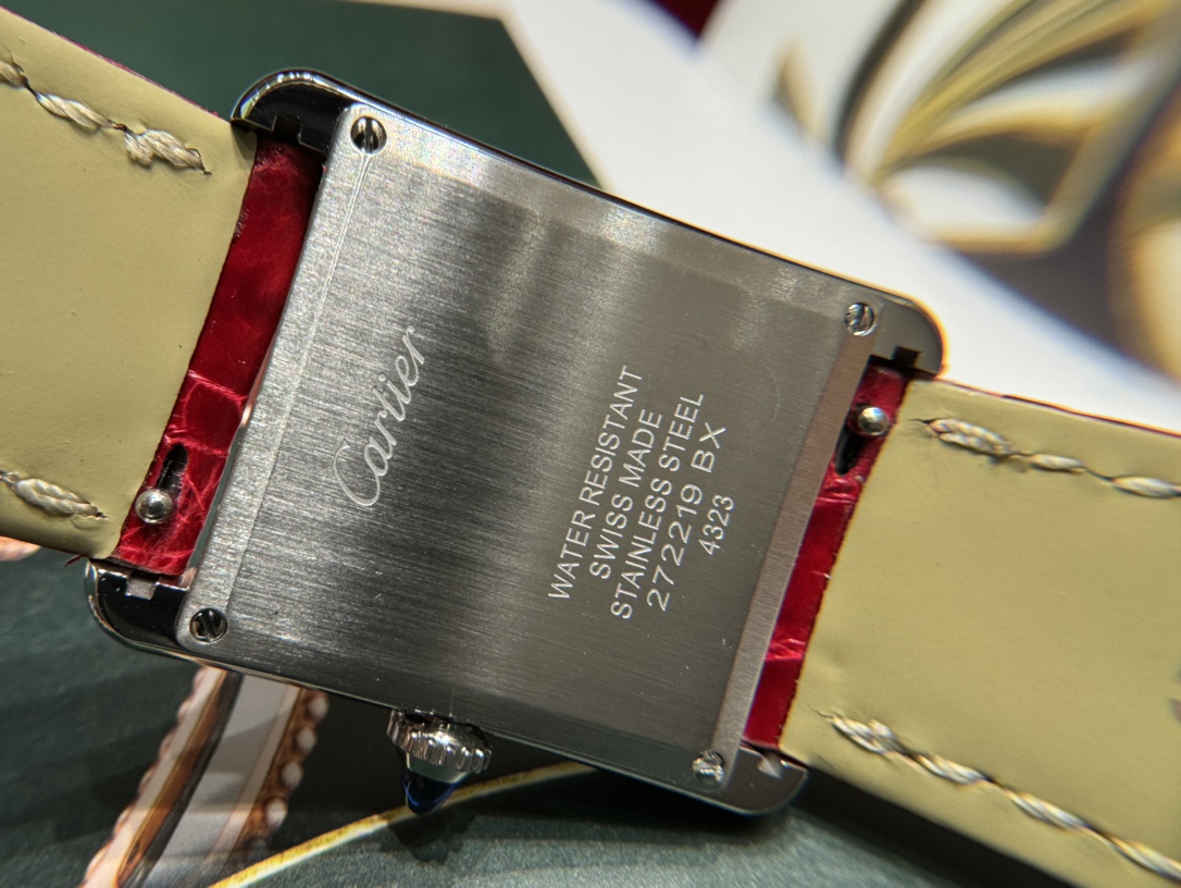 In 2021, Cartier newly launched the Tank Must watch. It Must be a TANK. Among all the classic Cartier Tank watches, if I were to own one as a daily watch to wear every day, I would definitely choose the TANK Solo. However, this might be changed by the latest TANK MUST in 2021. This year, the brand introduced the new Tank Must series of watches. With their simple and precise lines, they are regarded as an exemplar of Cartier's elegant style. While maintaining the original design, the watch design has been innovated: the lugs have become more rounded, the dial proportions have been adjusted, and Cartier has set the bead-shaped crown with a cabochon gemstone. It is equipped with the original ultra-thin specialized quartz solar movement. Internal structural details are welcome for comparison! The American alligator leather strap has a delicate and soft texture, very comfortable against the skin! Not comparable to ordinary market products! This Tank Must series watch also adopts the brand's iconic square case! Small size 29.5×22 mm, thickness 6 mm. The dial is silvered with sword-shaped blued steel hands, sapphire crystal glass, and a unique blue spinel set in the crown! Compared to previous models, the line treatment is more rounded and smooth. Additionally, the watch is equipped with a quick-release strap function.