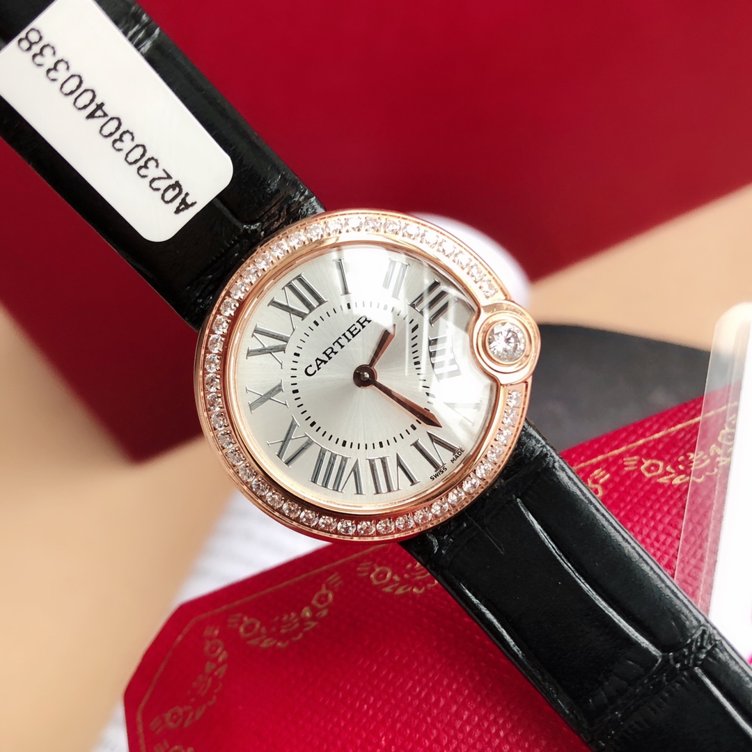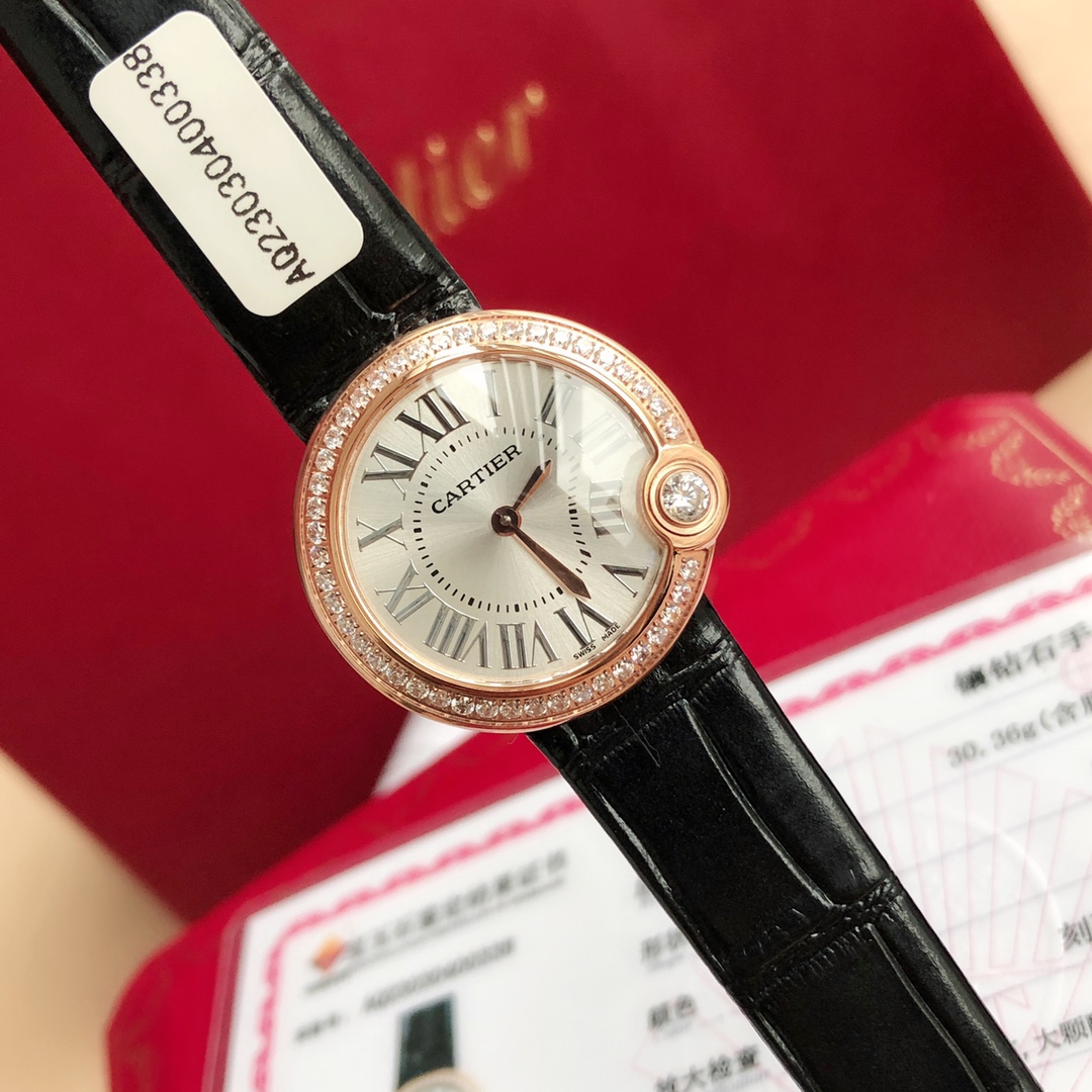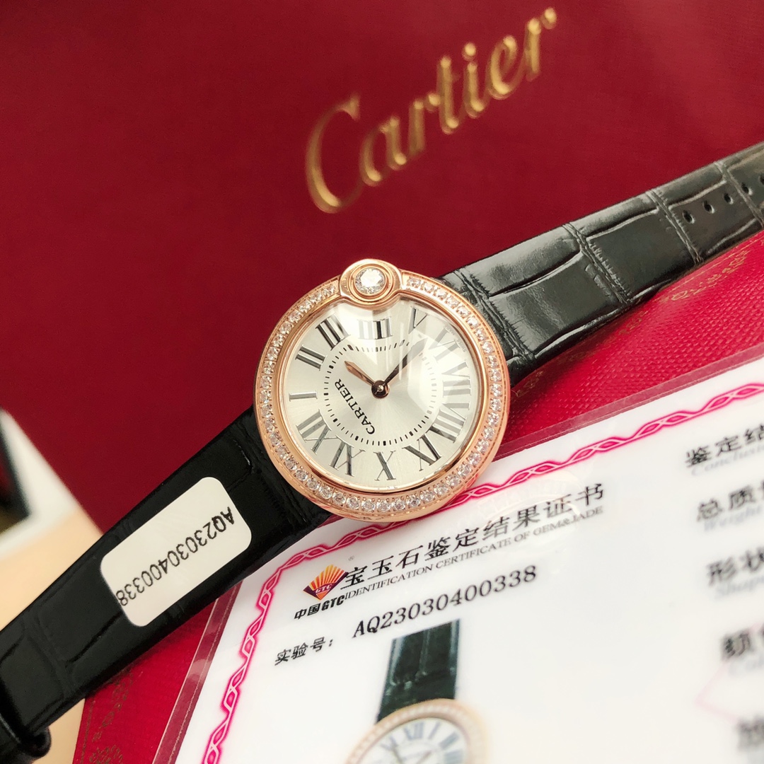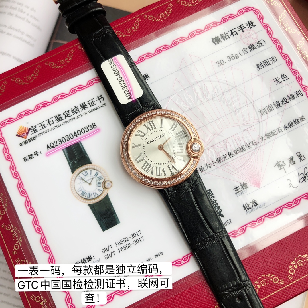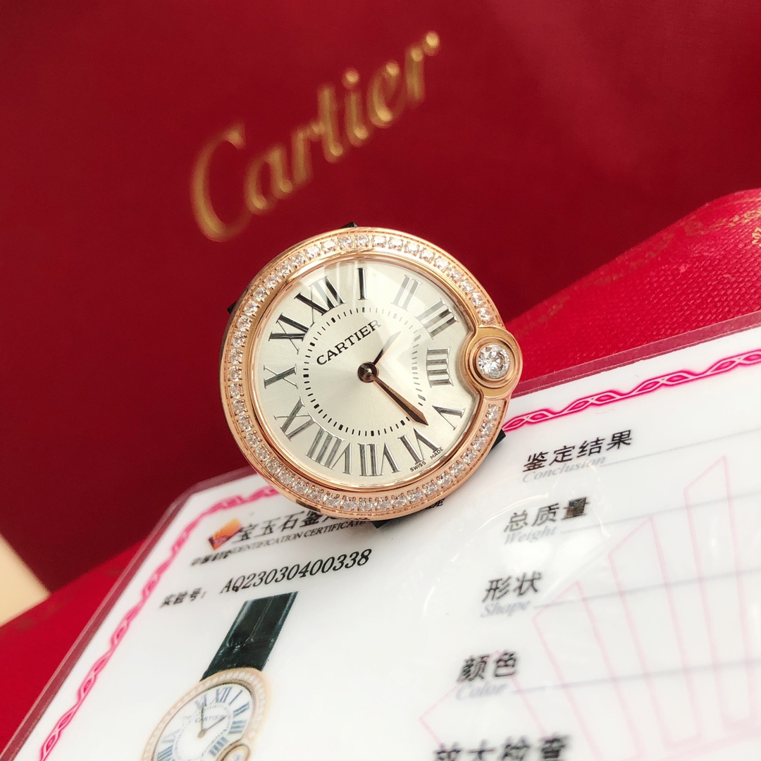 Precious timepieces engrave happy moments, sparkling rubies adorn warm wishes, "defining" New Year's luck, praying for red luck to follow. Open the New Year's red luck. Alligator leather Cartier new white balloon series, 43 VS1.5 pure natural diamonds (approximately 0.66 carats) are much larger than most women's watch styles on the market, big enough to be flashy. 18k real gold electroplated sapphire crystal glass mirror, red alligator leather strap complements the luster of rose gold. Much more durable than the easily collided blue balloon, perhaps this is the difference between an internet celebrity and a socialite. The dial size is 30mm, the case thickness is 8.4mm, a moderate size. Cartier cal.157 quartz movement, a red gemstone inlaid at the 4 o'clock position, the strap is also the same color red alligator leather, unique New Year atmosphere, shining with the gemstone at the four o'clock position, very skin-whitening! First-class river mother-of-pearl dial is more dazzling than ordinary mother-of-pearl, presenting different beautiful brilliance from different angles. The most characteristic Chinese women's style in the Cartier watch series👍