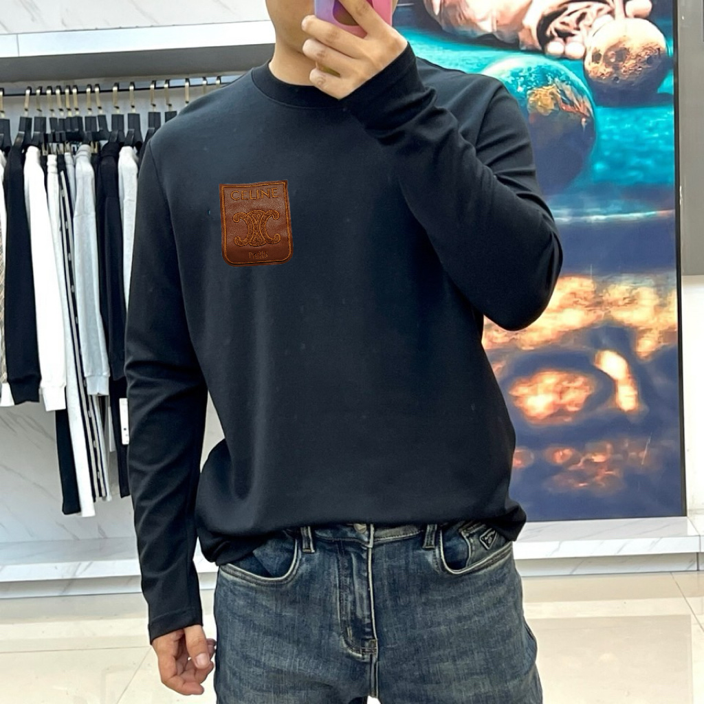 Celine 2025 Autumn/Winter New Arrival at Counters, Fashion Casual Base Layer Long-Sleeve T-Shirt. Fabric 280g, selected imported high-density double yarn 100% pure cotton fabric. Exquisitely crafted with original logo, excellent comfort and breathability, soft, wrinkle-resistant, elastic, and with great drape. Whether worn alone or as an inner layer, it looks very stylish, aligning with men's practical dressing habits. Pursuing a luxurious, noble, and elegant style, creating an exceptional taste for men. The visual effect is impressive, with a high-end feel, simple and fashionable, a must-have for casual and business occasions! (Complete with three labels)