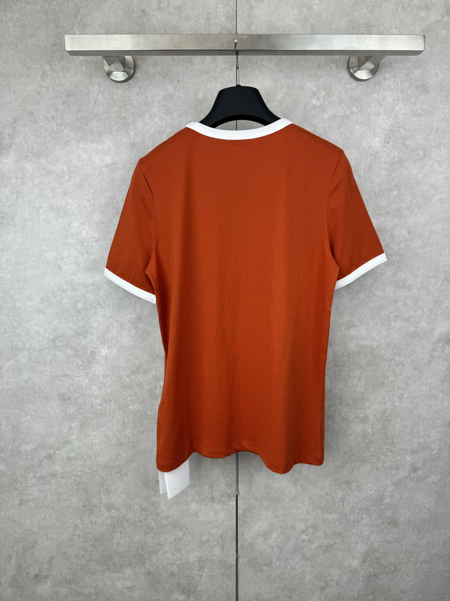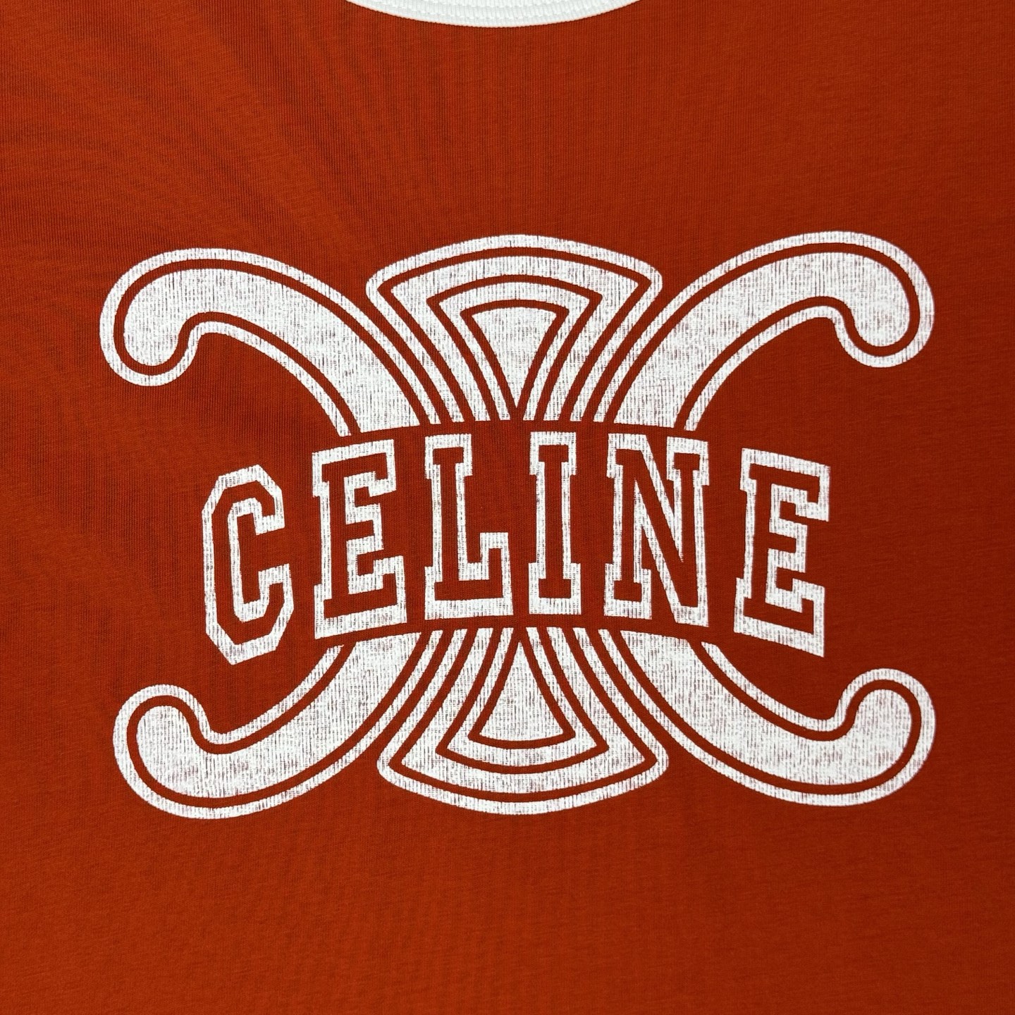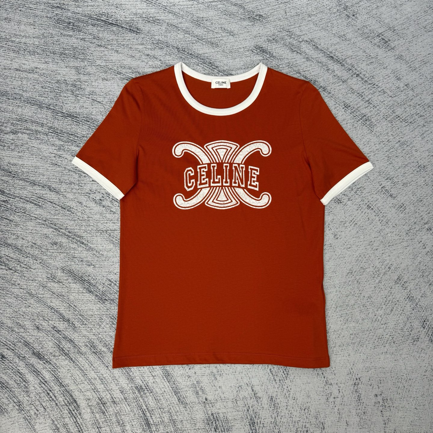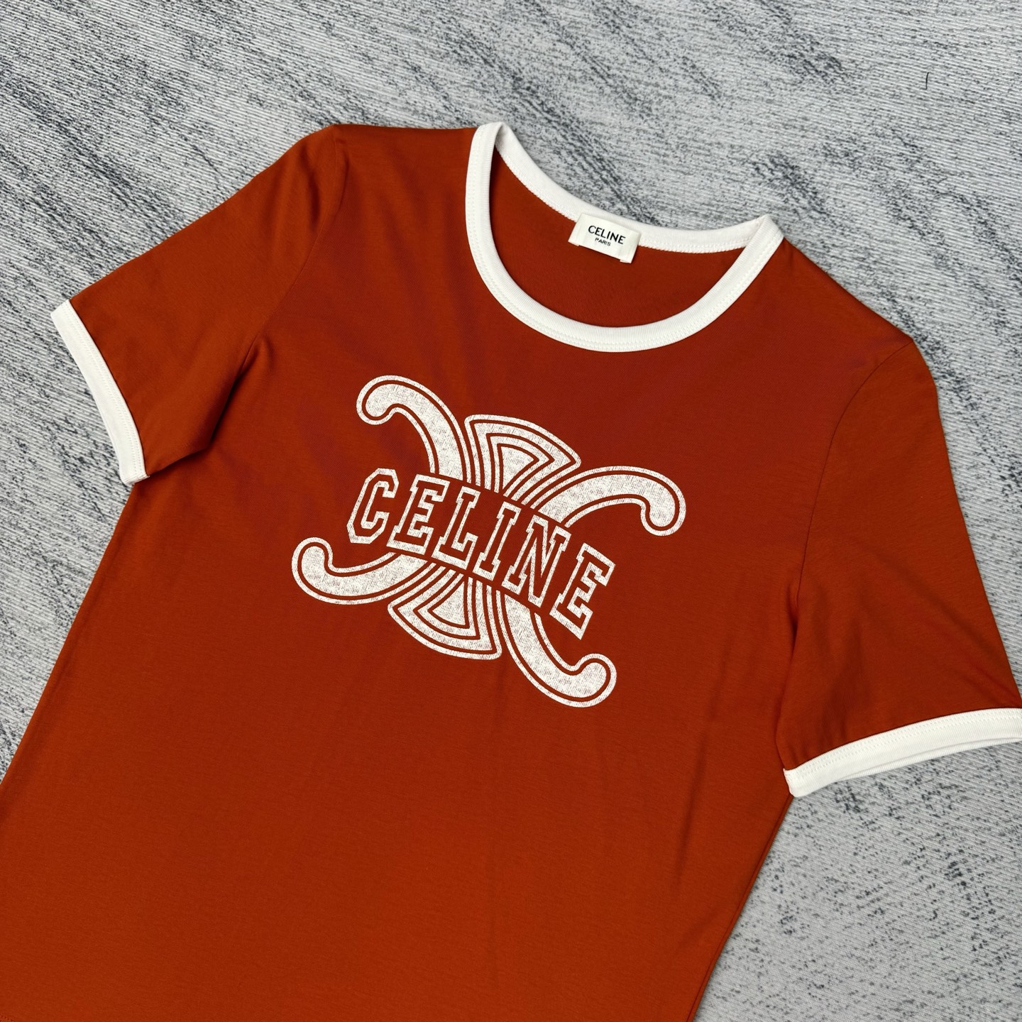 Celine 70s style short sleeve T-shirt, S/M/L sizes, classic fit, round neck, contrast ribbed trim.