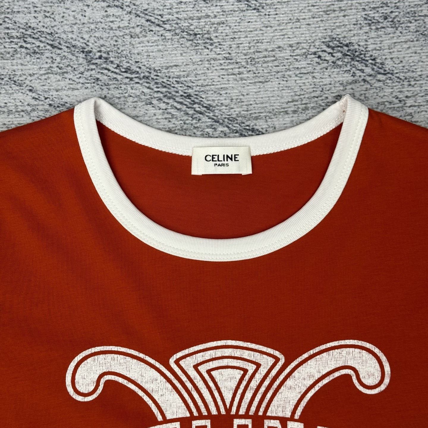 Celine Celine 25ss new plain knit 70s style short sleeve T-shirt SIZE S/M/L Features CELINE PARIS TRIOMPHE print, classic fit, round neckline Contrast ribbed trim details