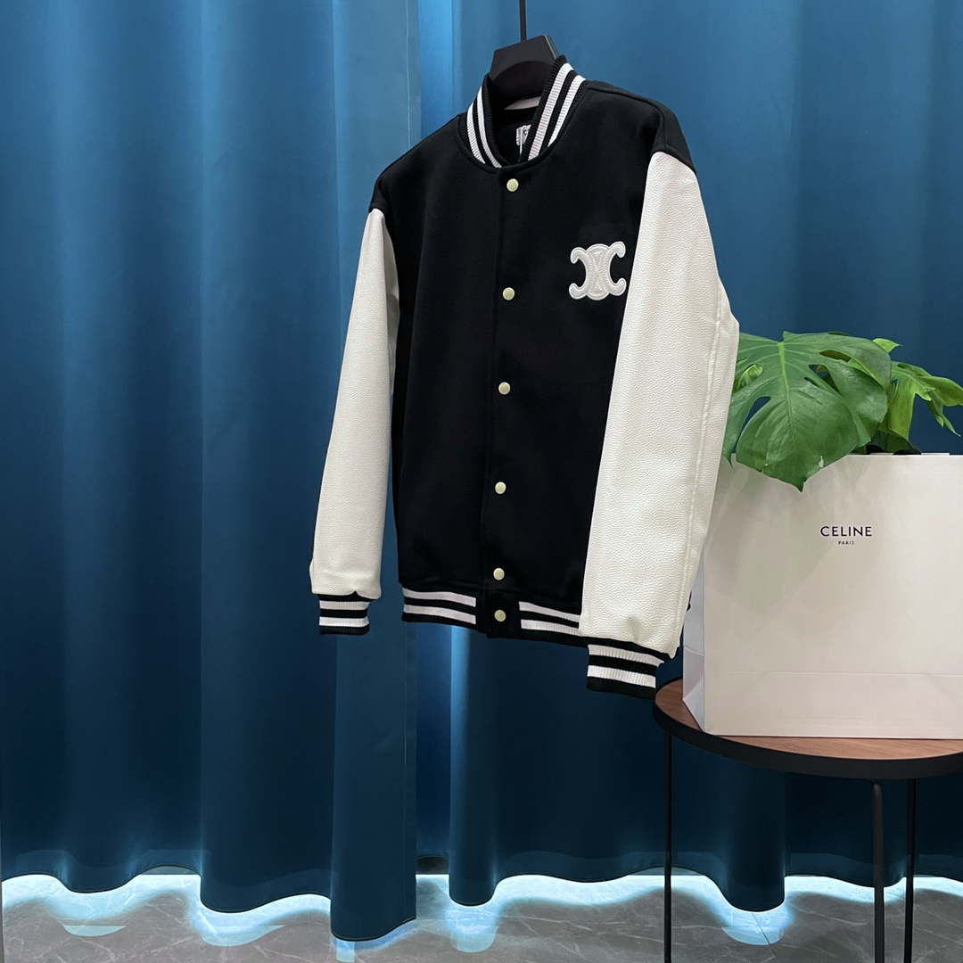 Celine baseball jacket, show style. Custom high-quality version with imported materials. Excellent craftsmanship, unisex luxury essential.
