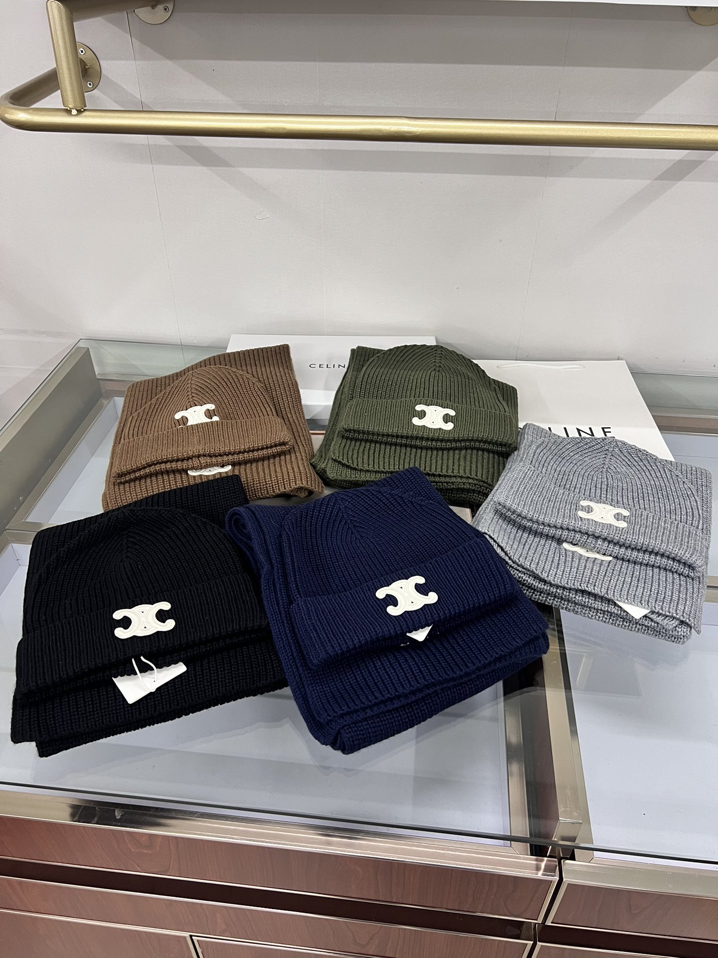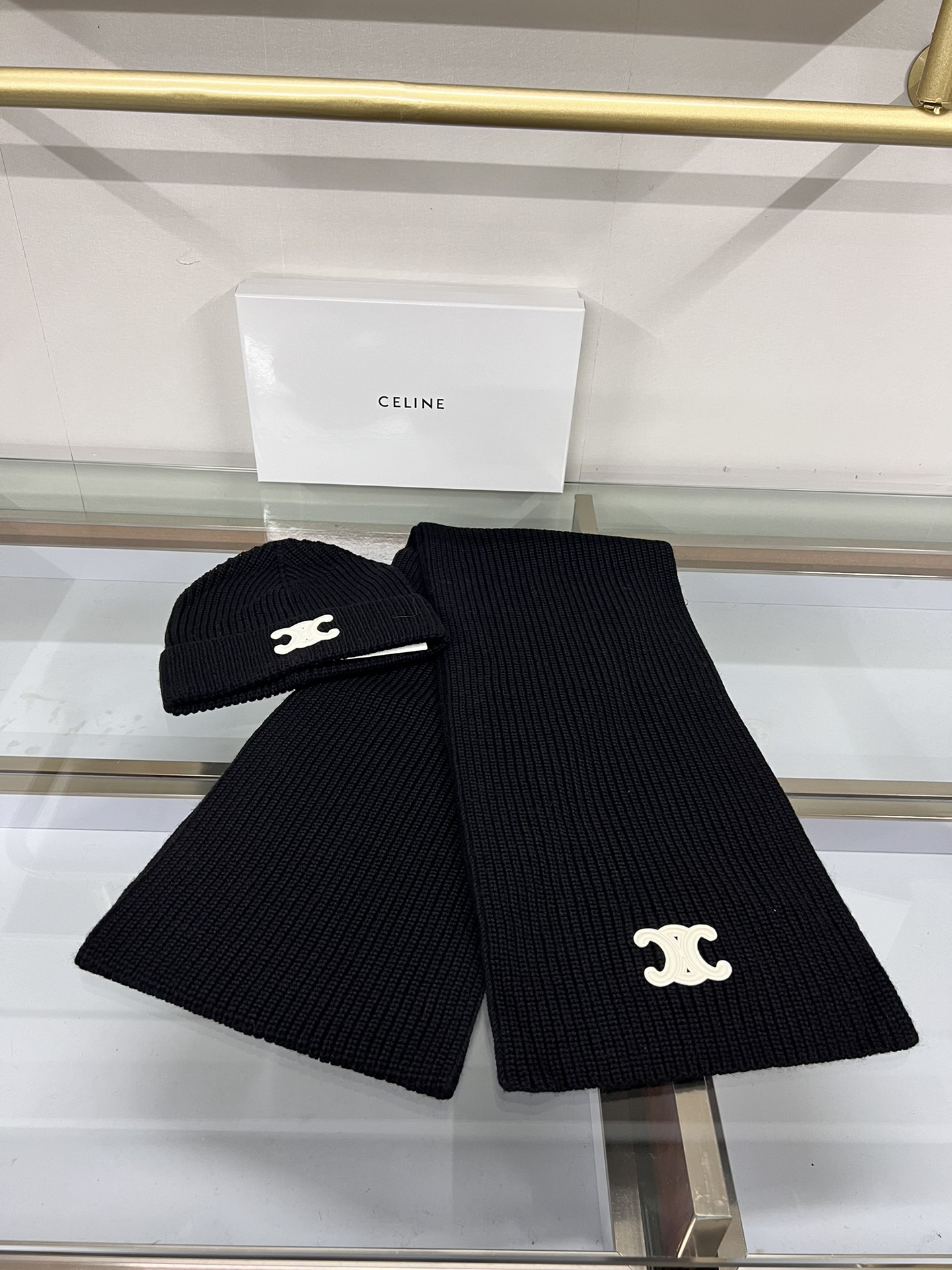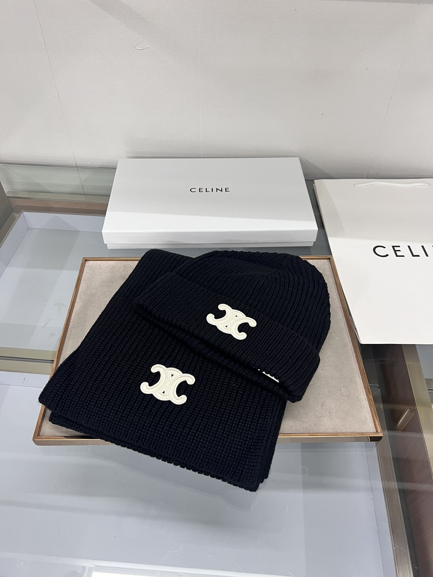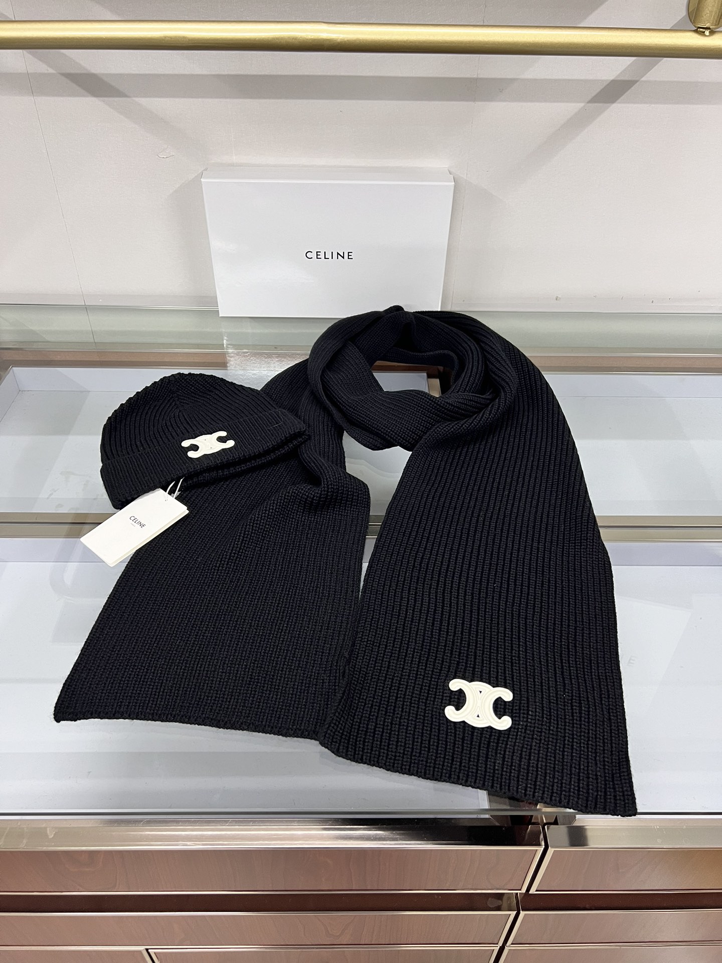 Celine classic hat and scarf set, soft and warm, perfect for winter fashion.