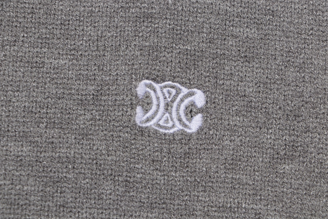 Celine small logo embroidered zip letter round neck wool sweater Color: Black Gray Size: S M L XL XXL Original title: Celine small logo embroidered zip letter round neck wool sweater Color: Black Gray Size: S M L XL XXL