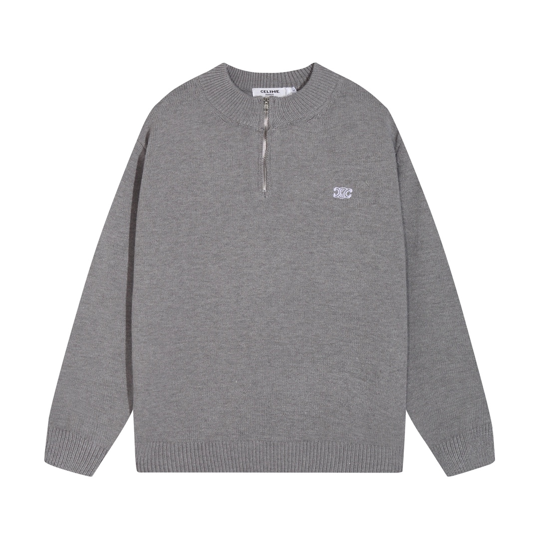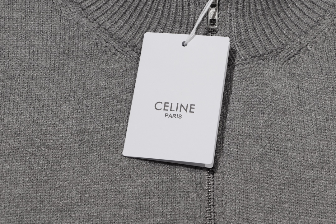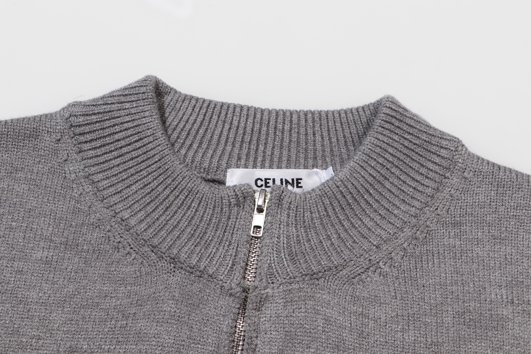 Celine embroidered logo zip-up wool sweater. Colors: black, gray. Sizes: S M L XL XXL.