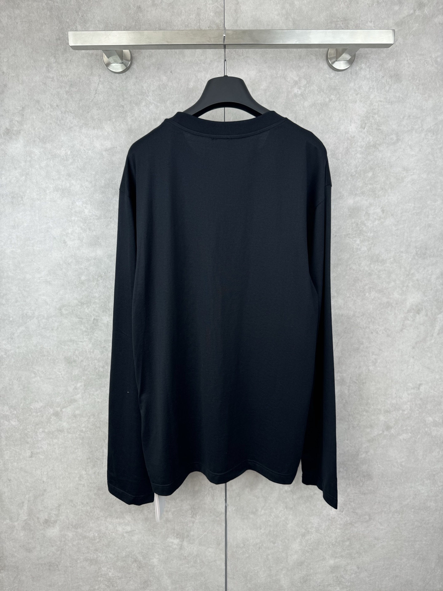 Selected pure cotton fabric, the entire garment uses a three-needle five-thread technique. Double stitching on the collar, shoulder seams, and sleeve seams. Round neck long sleeve style, exquisite workmanship, attention to detail. Complete with three labels.