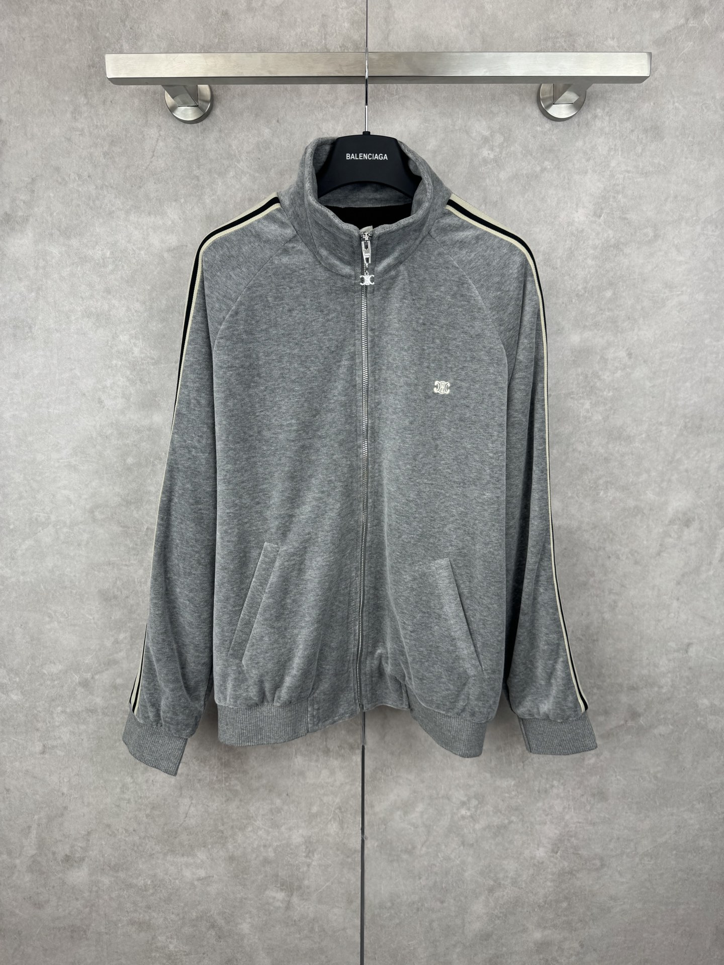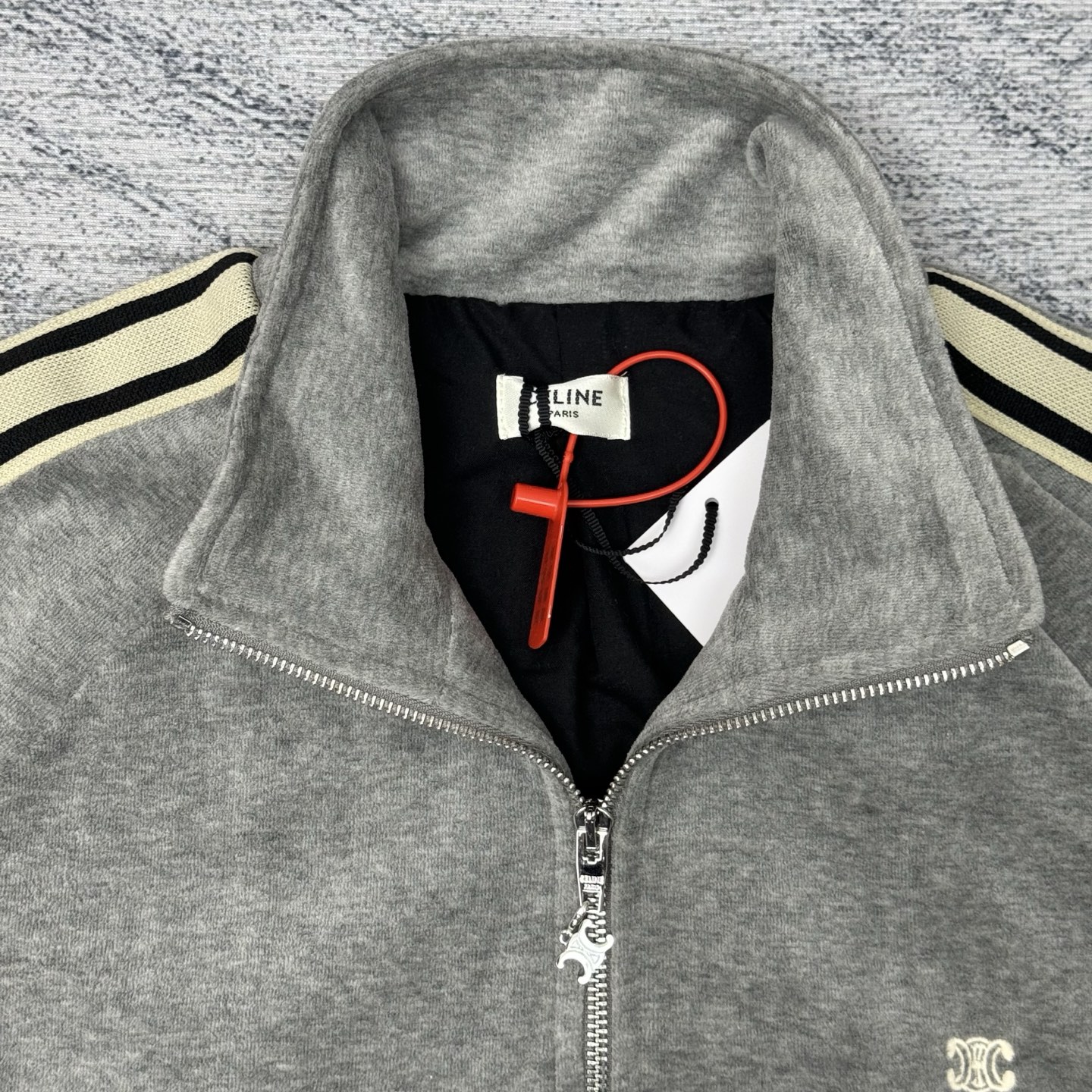 Celine Triomphe Embroidered School Set Zipper Jacket. Sizes S/M/L/XL. Custom cloud-soft double-faced satin cotton, imported embroidery, pre-washed. Resists shrinking, fading, deformation.