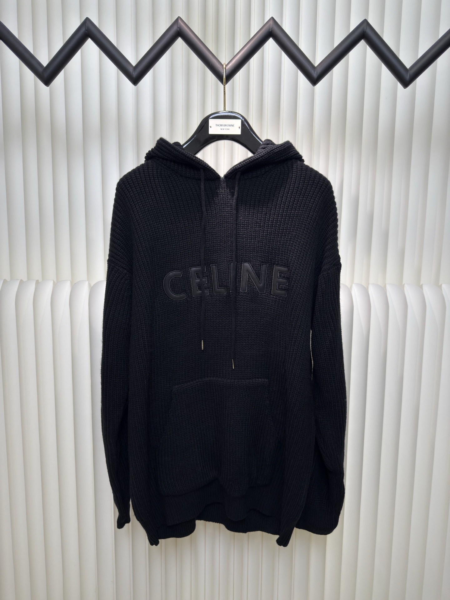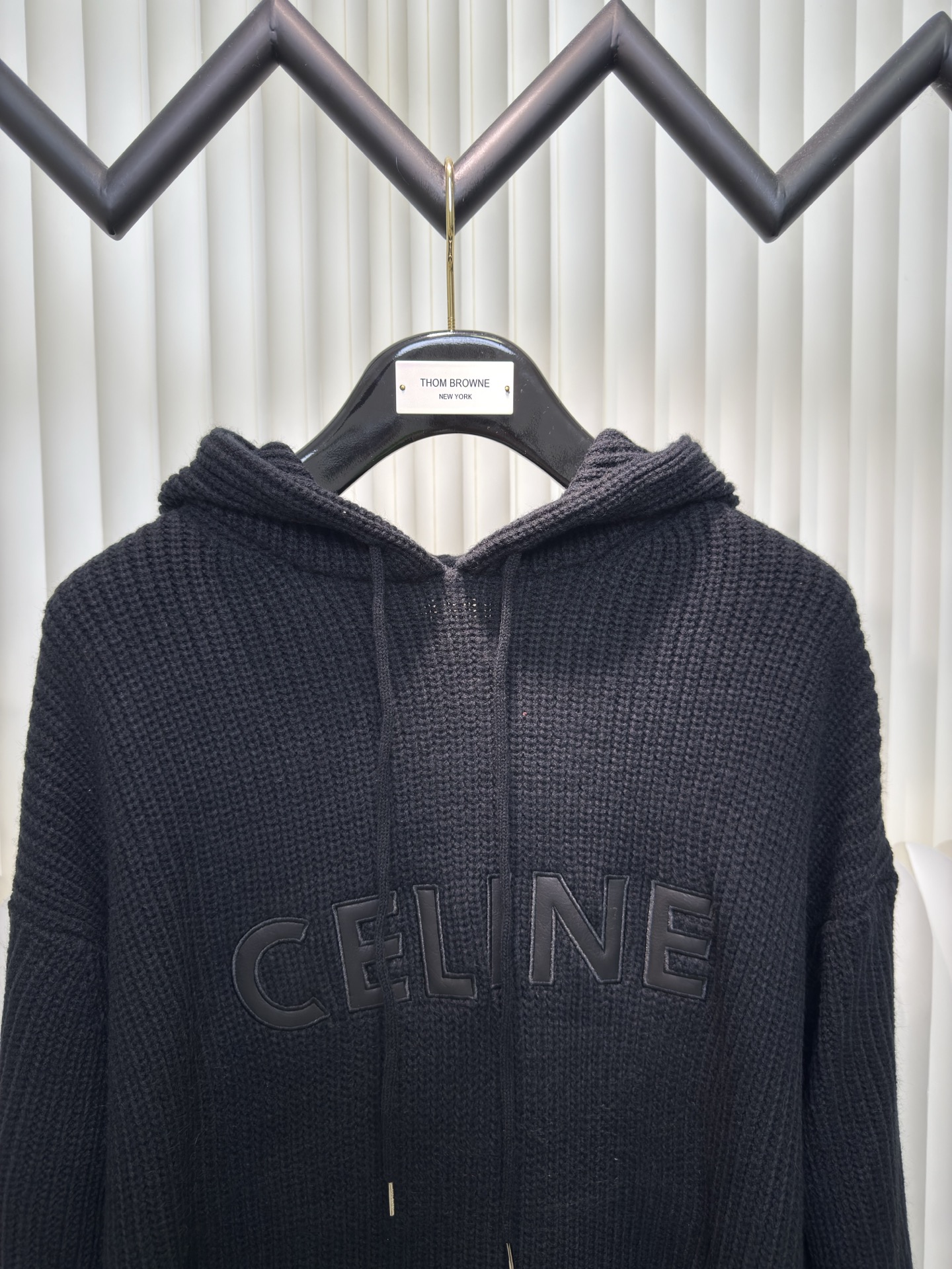 Celine Celine Leather Patch Embroidery Wool Hoodie