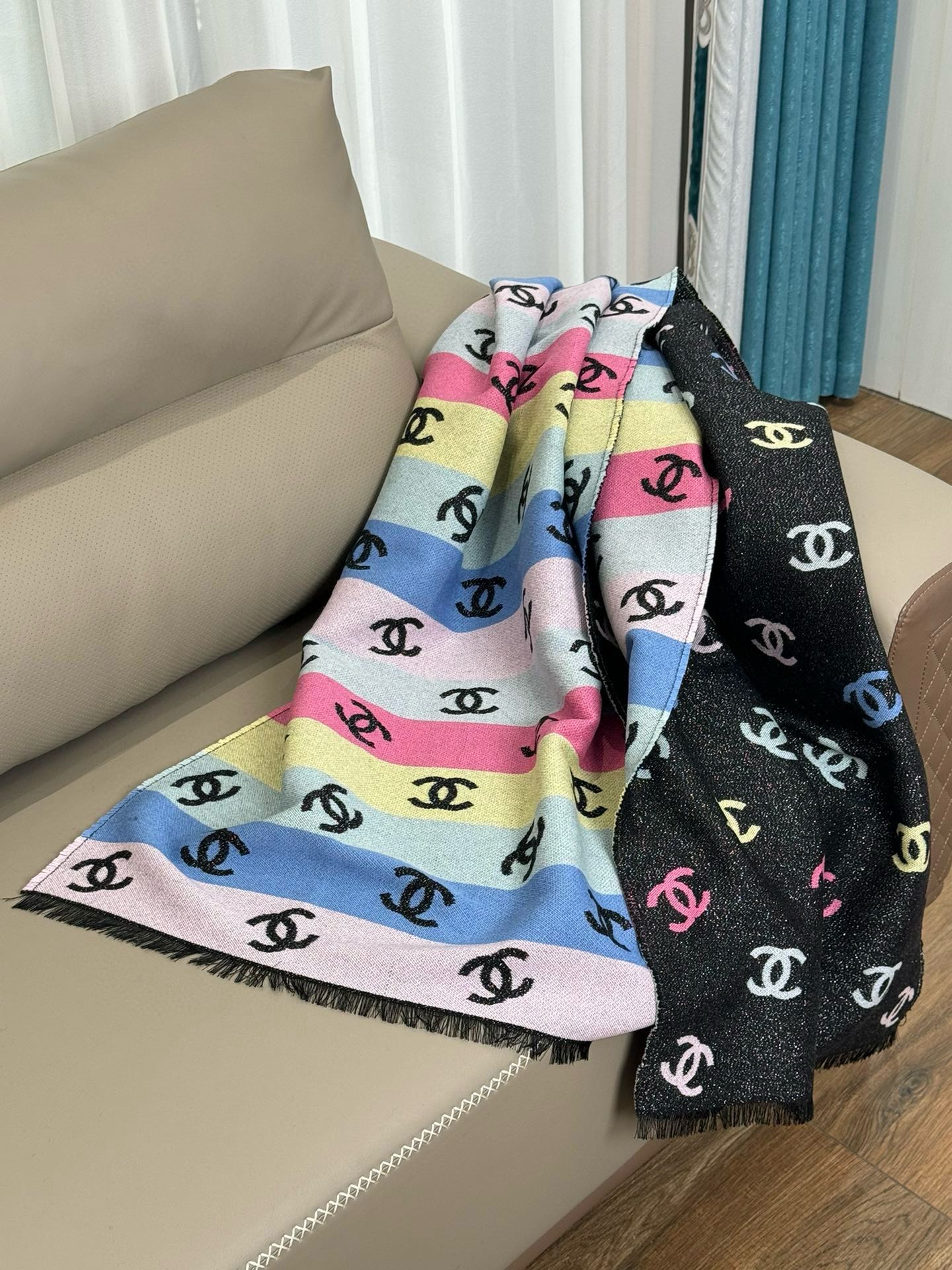 Chanel Rainbow Scarf, 24C early spring new rainbow glitter scarf shawl, double-sided, soft and warm, 70*180cm, 66% cashmere, 18% wool, 12% silk.