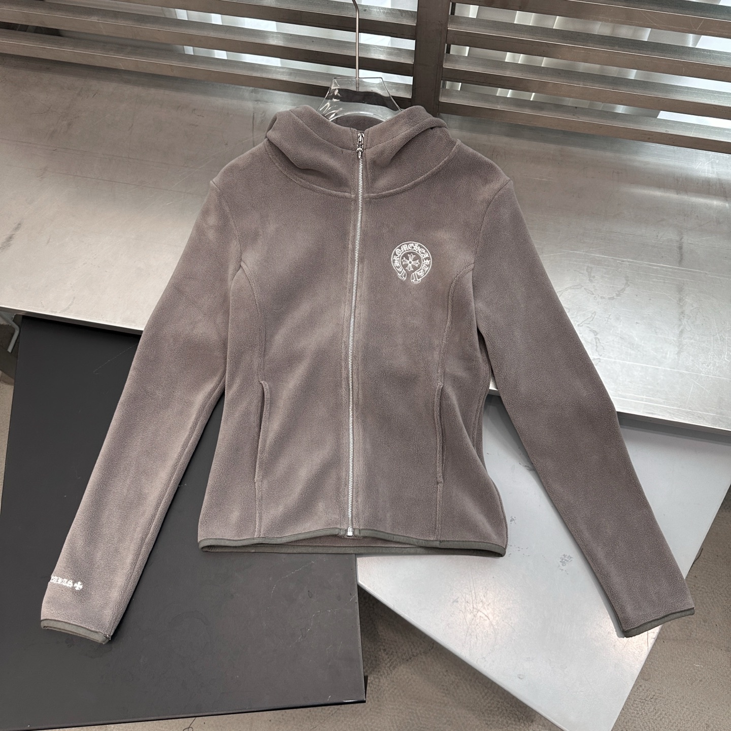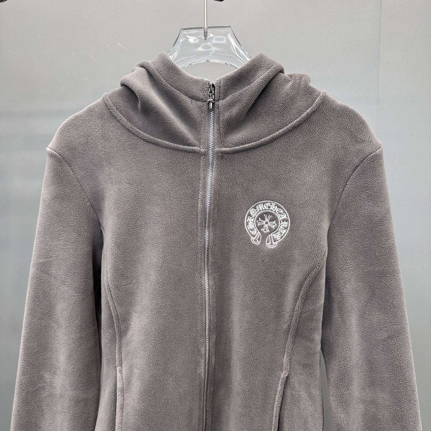 Chrome Hearts new fleece jacket with classic embroidery, casual and stylish, for layering or outerwear, sizes S M L.