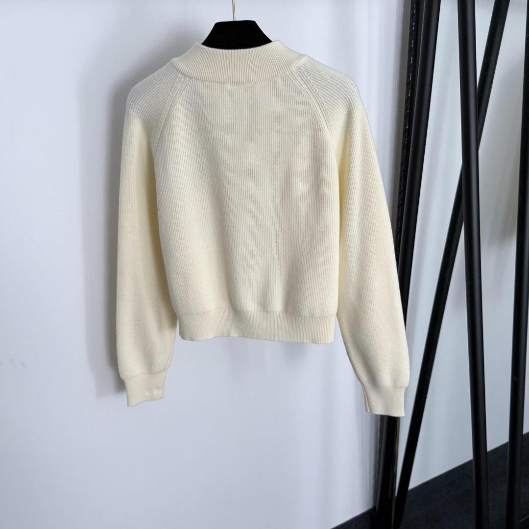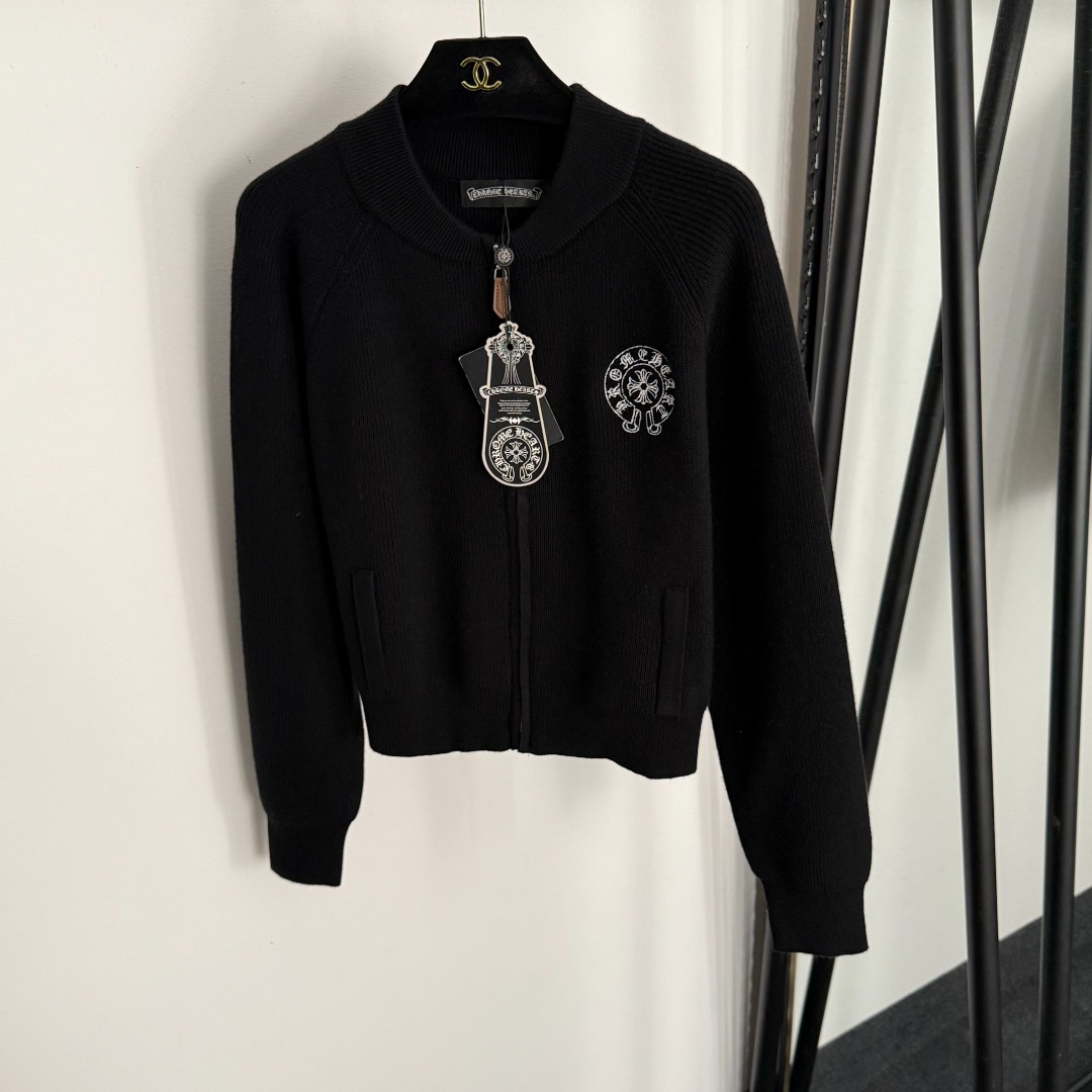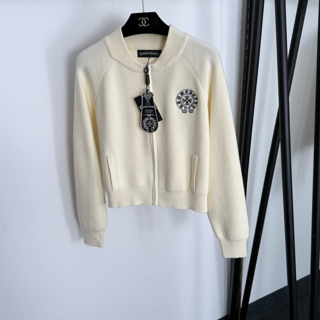 Style Number 20255550 Chrome Hearts* New Arrival Cross Flower Embroidery Logo Long Sleeve Knitted Cardigan Zipper Jacket, Cream White, Black, [One Size; Bust 92, Sleeve Length 66, Length 48; Weight: 0.395kg]
