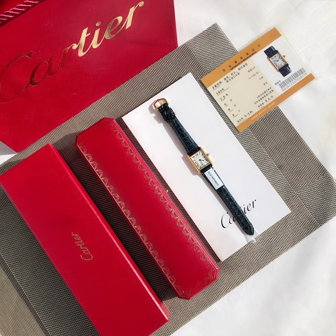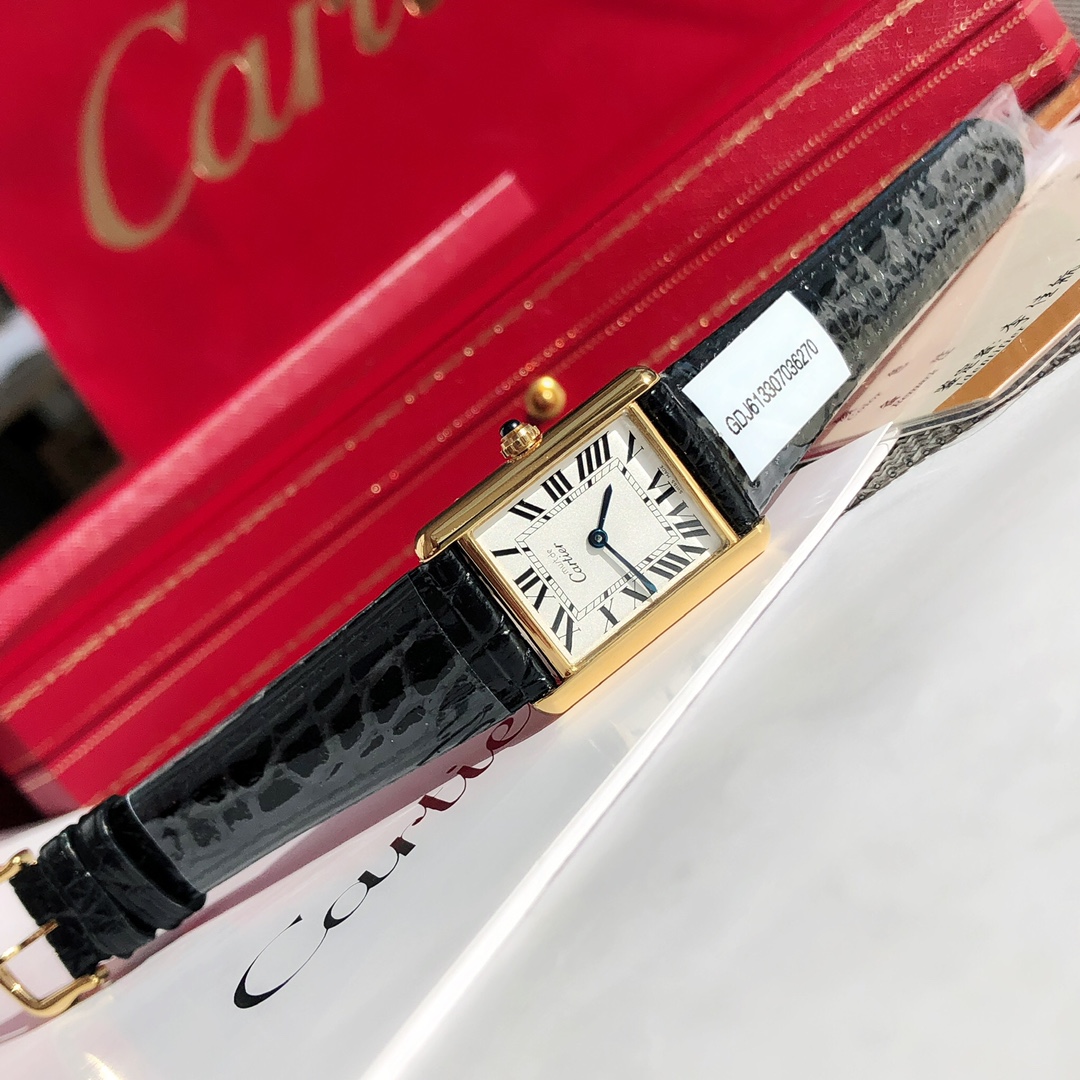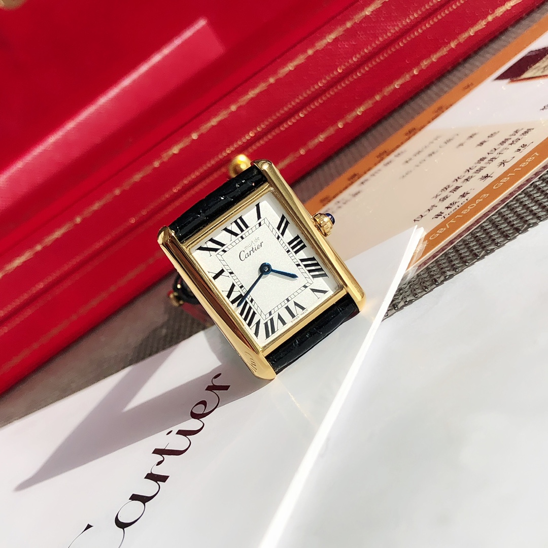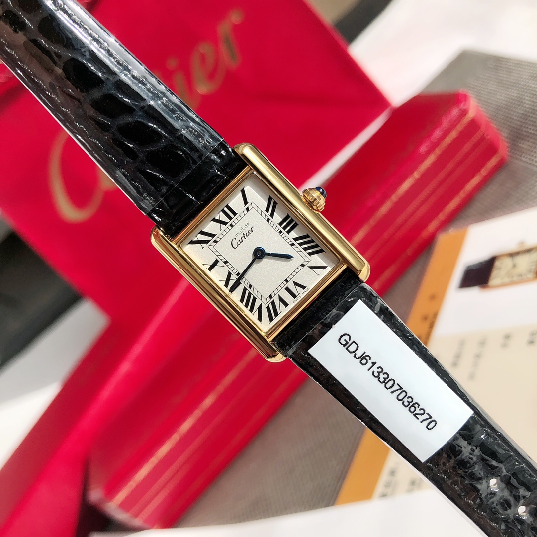 24k gold-plated Cartier Tank Must de vintage small gold watch, original specifications, divine aesthetics, imported alligator strap, sapphire crown exquisitely clear, not afraid of high-cost operation.