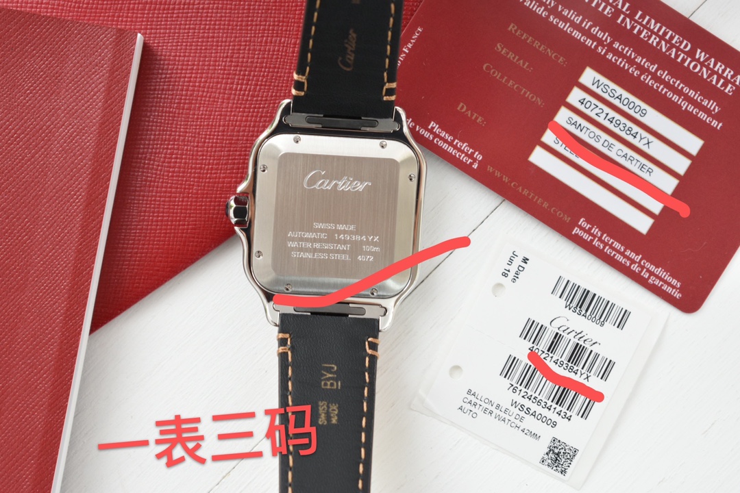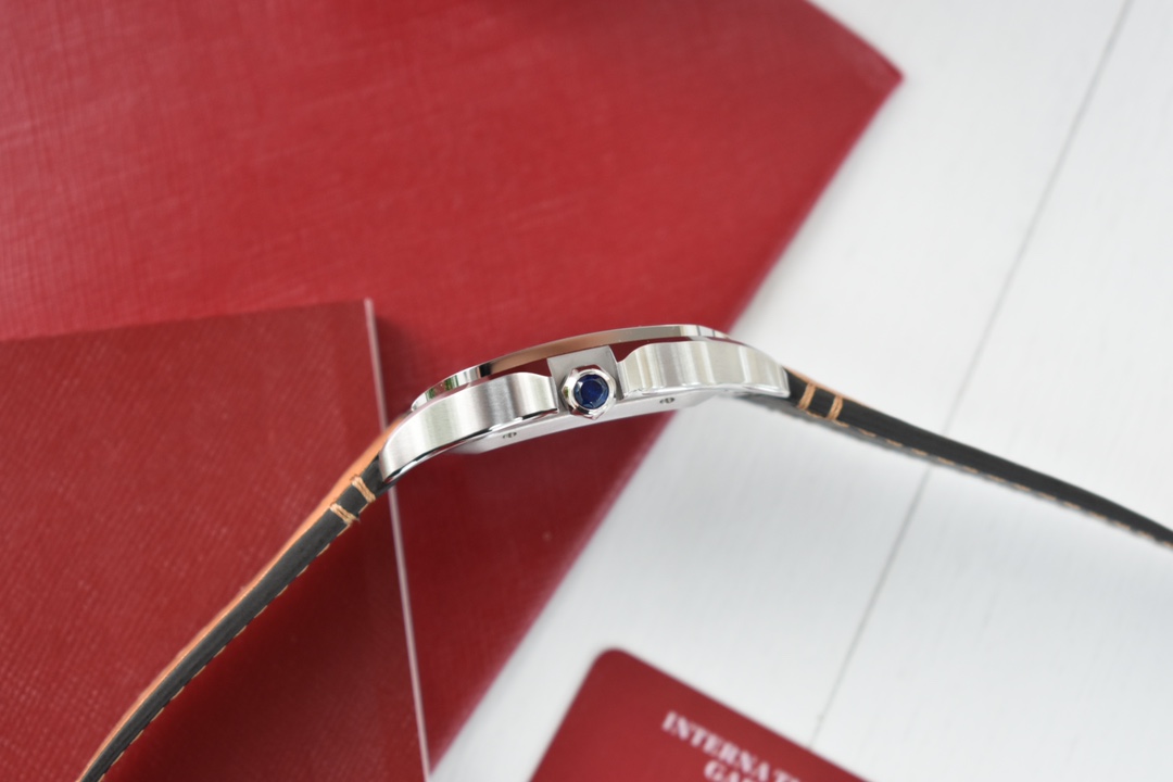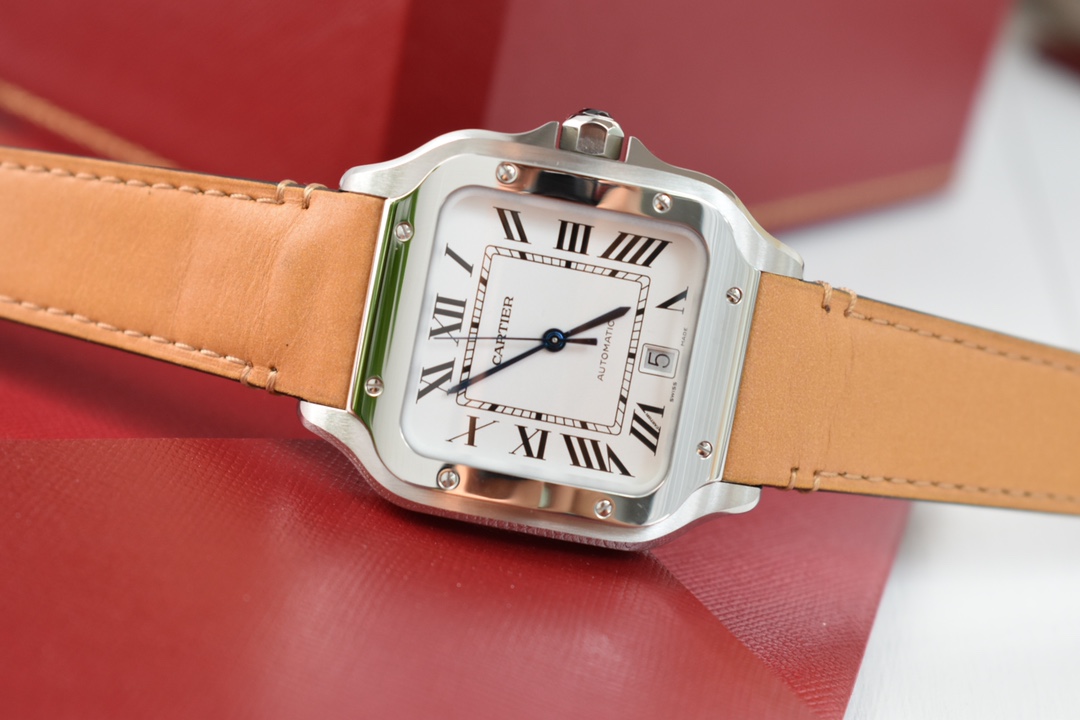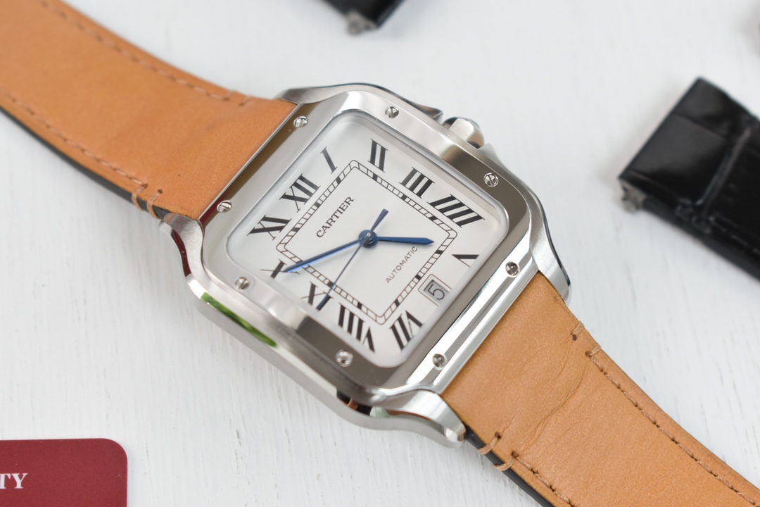 Exclusive custom edition release Those who understand quality, look at the detail and craftsmanship. Cartier's new Santos men's large automatic mechanical watch. Acquired original factory components through substantial financial resources and interpersonal relationships, interchangeable with counter parts for substitution and repair. The new Santos strap features a quick-release structure, allowing self-replacement in one minute, switching between leather and steel straps anytime. Materials: 316L stainless steel case and strap, 100-meter water resistance. Family-style gradient blue hands, classic Roman numeral dial, synthetic bridge sapphire glass. New ergonomic SmartLink quick-release system strap structure. Overall watch dimensions: 39.8X47.5X9.08 mm. Bezel set with multi-faceted spinel sapphire. Equipped with replacement automatic mechanical movement MIYOTA-9015 (with original 1847MC automatic rotor). 48-hour power reserve, accurate timekeeping. One watch with three codes: watch, warranty card, hang tag. Each watch has a unique, non-repeating code. Comes with a full set of the latest packaging. Super high-end for gifting or personal use.