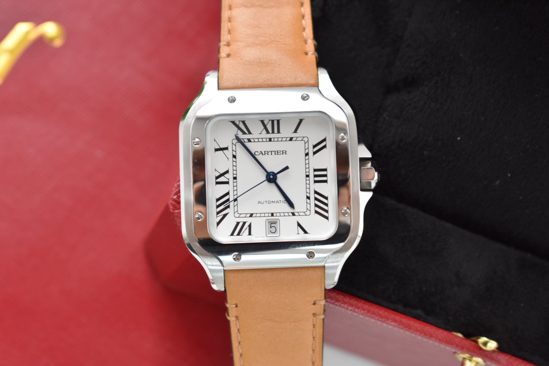 Custom Cartier Santos Men's Automatic Watch. 39.8mm 316L steel, 100m waterproof, Miyota 9015 movement, interchangeable straps. Full set with warranty.