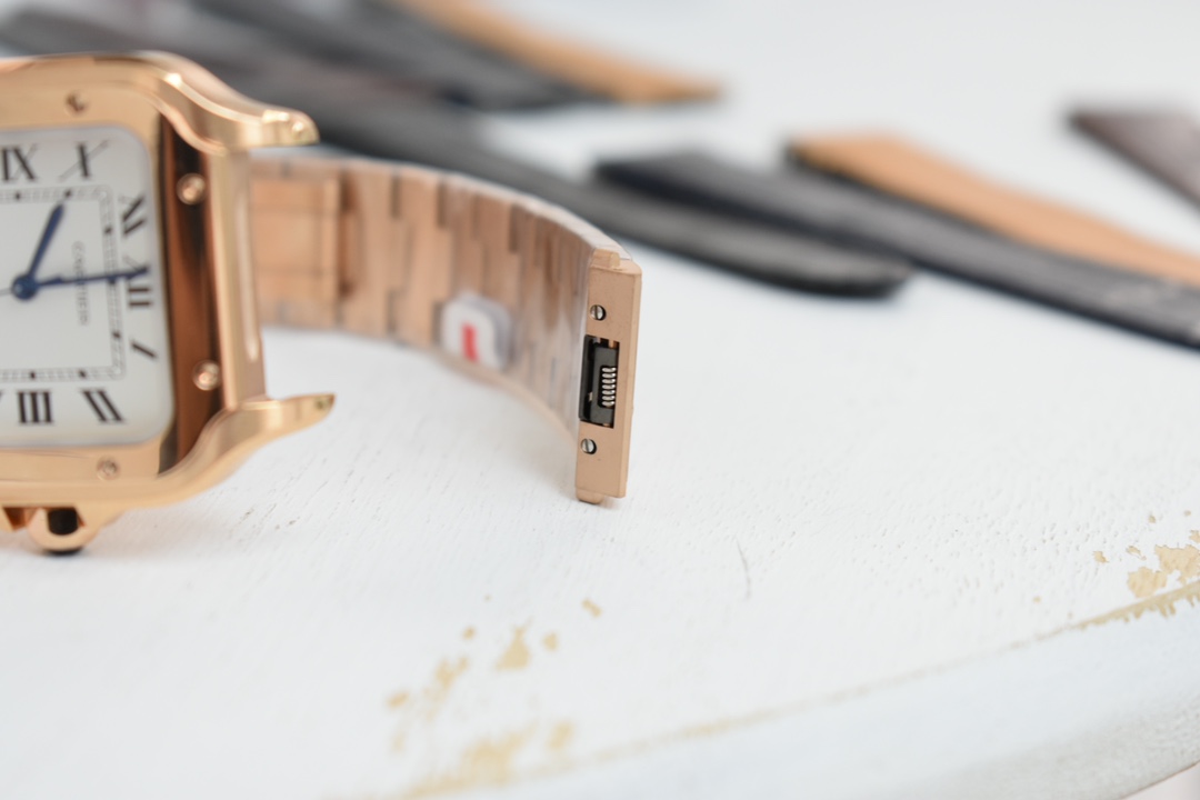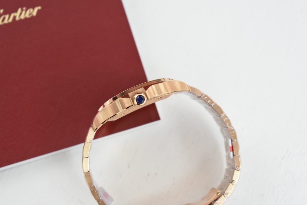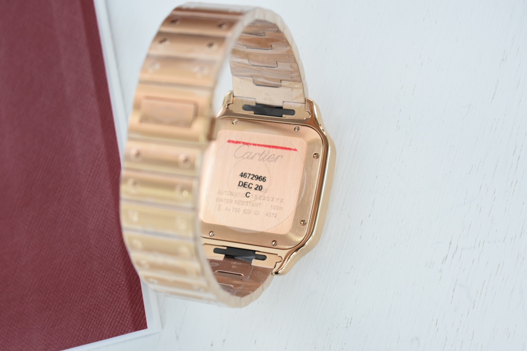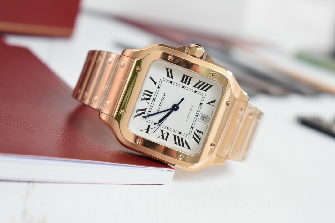 Exclusive custom edition released Those who understand quality look at the detail and craftsmanship Cartier new Santos men's large automatic mechanical watch Acquired original factory components through extensive financial resources and interpersonal relationships, interchangeable with counter parts for substitution and maintenance New Santos strap features a quick-release structure, change it yourself in one minute, switch between leather and steel straps freely Currently 4 color leather strap options available, additional leather straps can be purchased Material: 316L stainless steel case and strap 100-meter water resistance Signature gradient blue hands Classic Roman numeral dial Synthetic bridge sapphire crystal New ergonomic SmartLink quick-release system strap structure Overall watch dimensions 39.8X47.5X9.08 mm Bezel set with multi-faceted spinel sapphire Equipped with replacement automatic mechanical movement MIYOTA-9015 (with original 1847MC automatic rotor) 48-hour power reserve Accurate timekeeping One watch with three codes Watch, warranty card, hang tag Each watch has a unique code, non-repeating Comes with full set of latest version packaging Super high-end for gifting or personal use