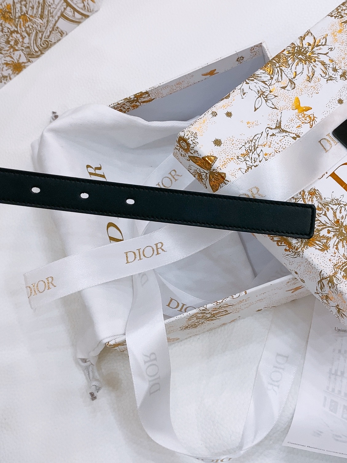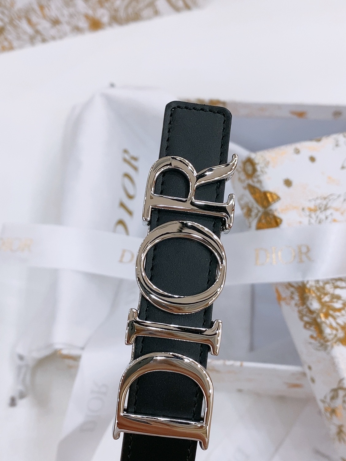 D-Dream belt made of smooth cowhide with a metallic Dior buckle. Highlights waist and pairs well with jeans or dresses. 2.0cm