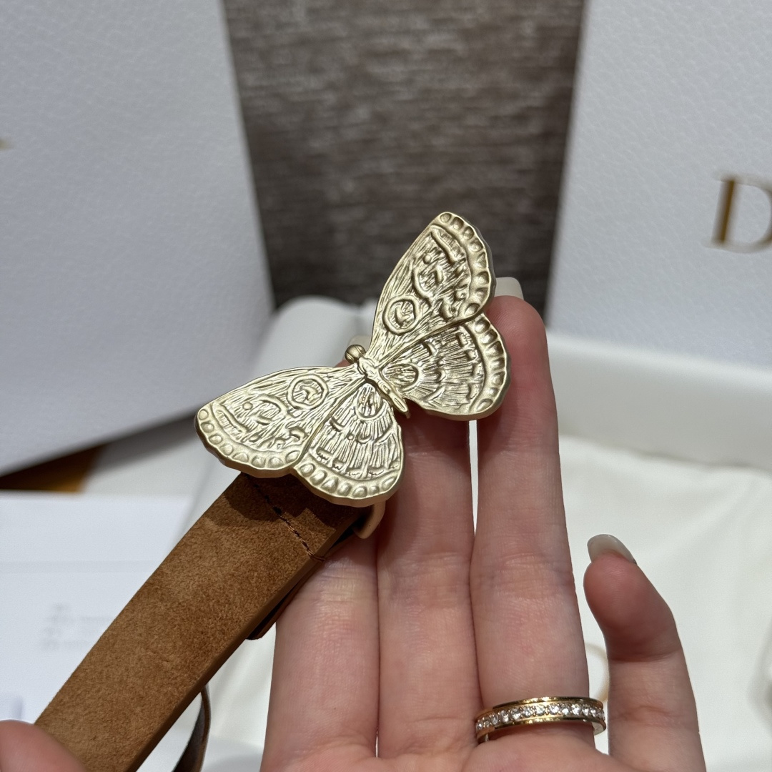 Dijia new women's belt, 20mm suede front, smooth leather back, butterfly buckle series.