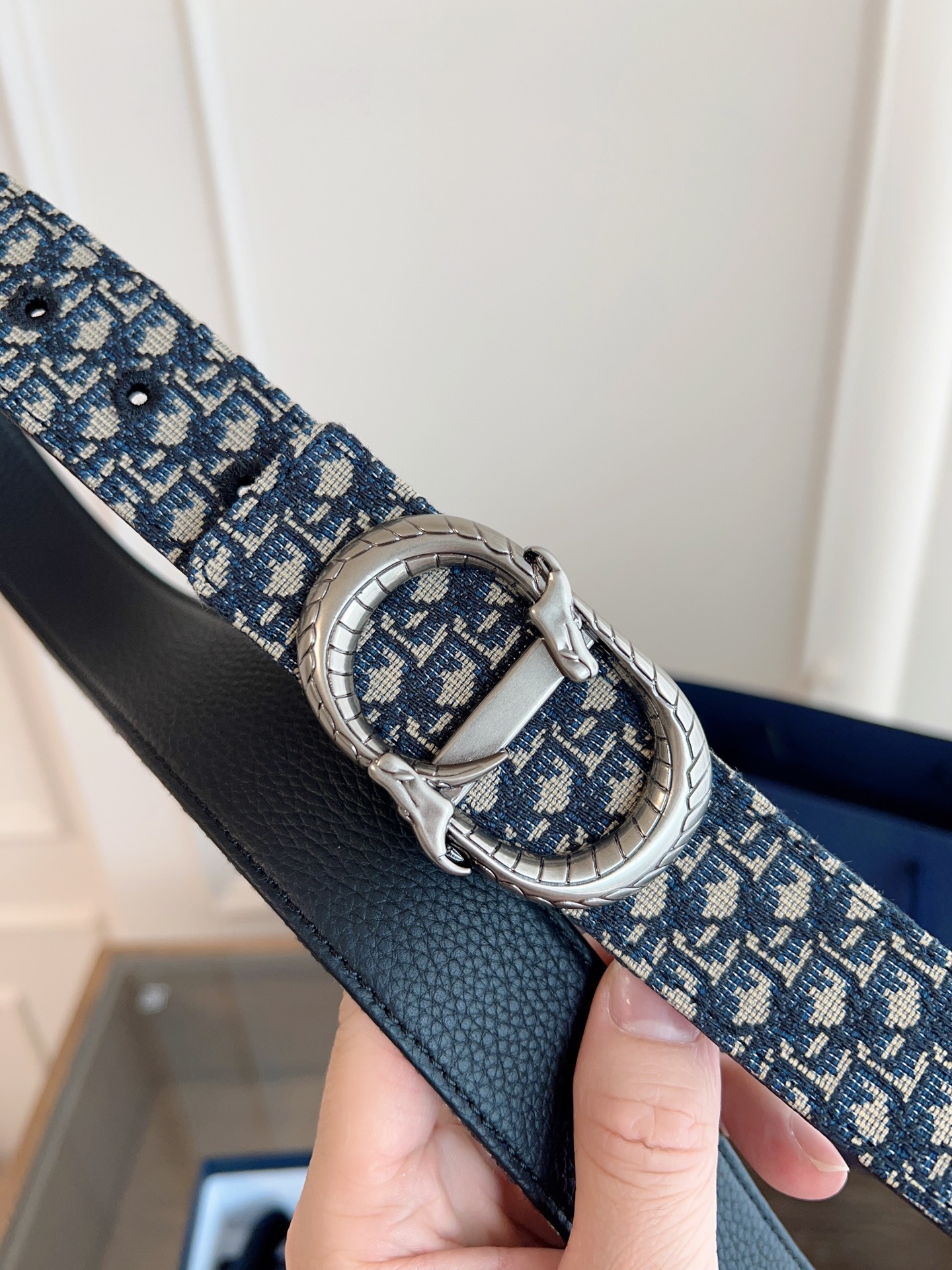 Dior/Enhanced version, original French factory leather, Oblique blue canvas/black cowhide. Quality is beyond doubt, there is no better, only the best. Size 3.5 cm.