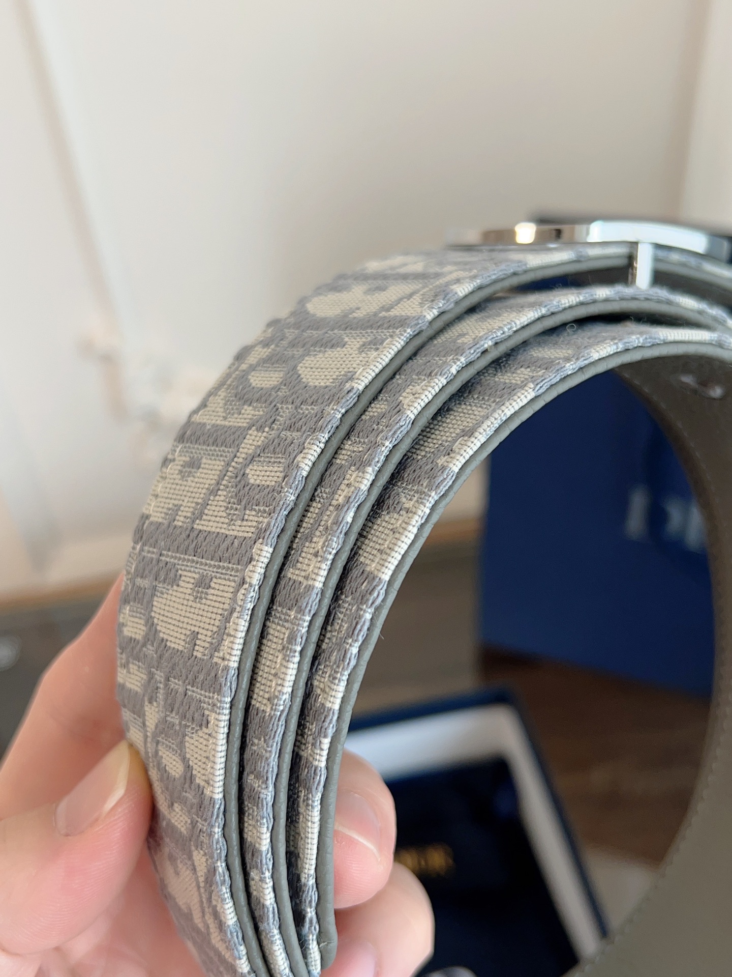Dior enhanced edition: French original leather, Oblique gray fabric/black calfskin. Unquestionable quality, the best. Size 3.5cm.