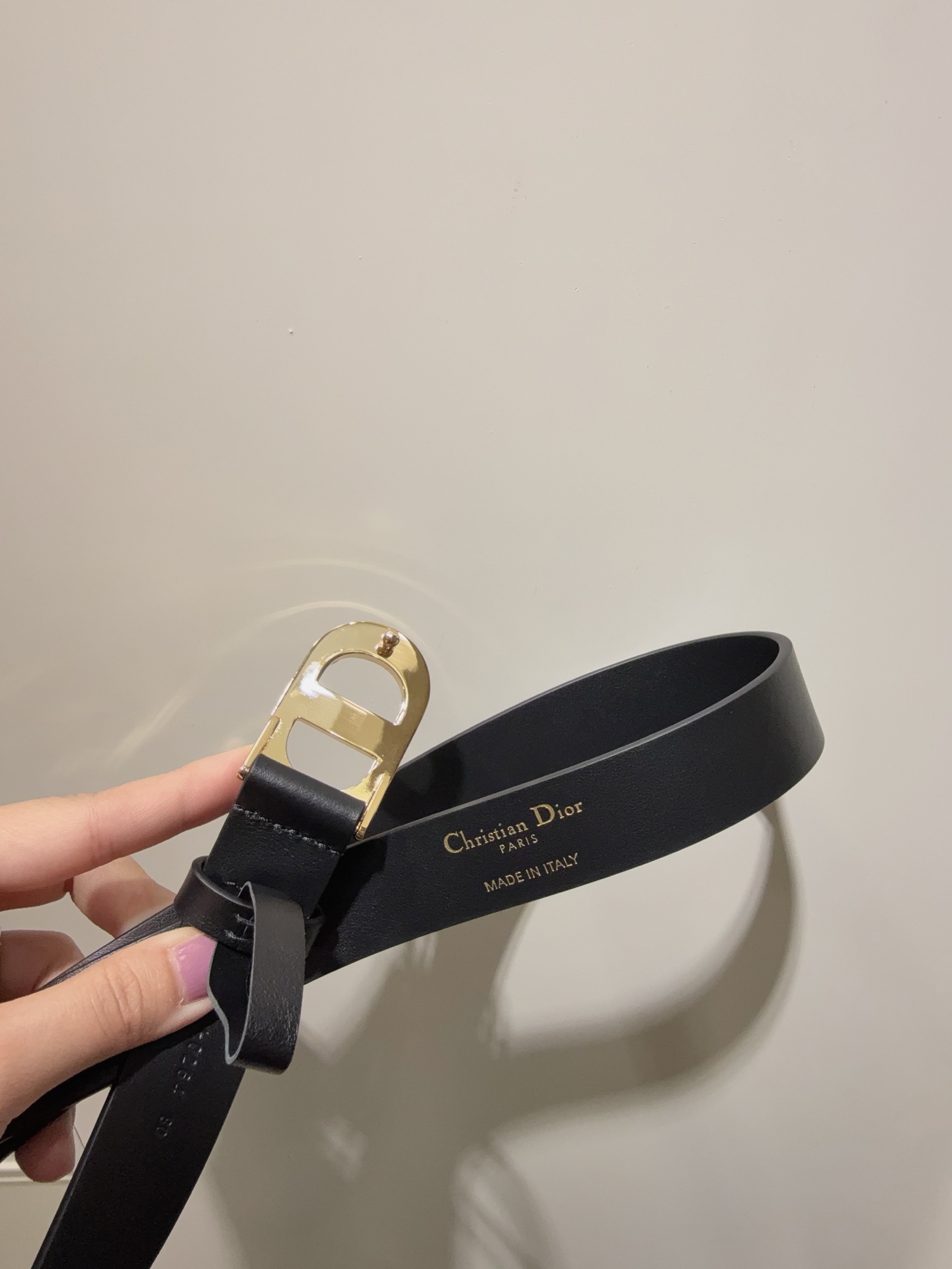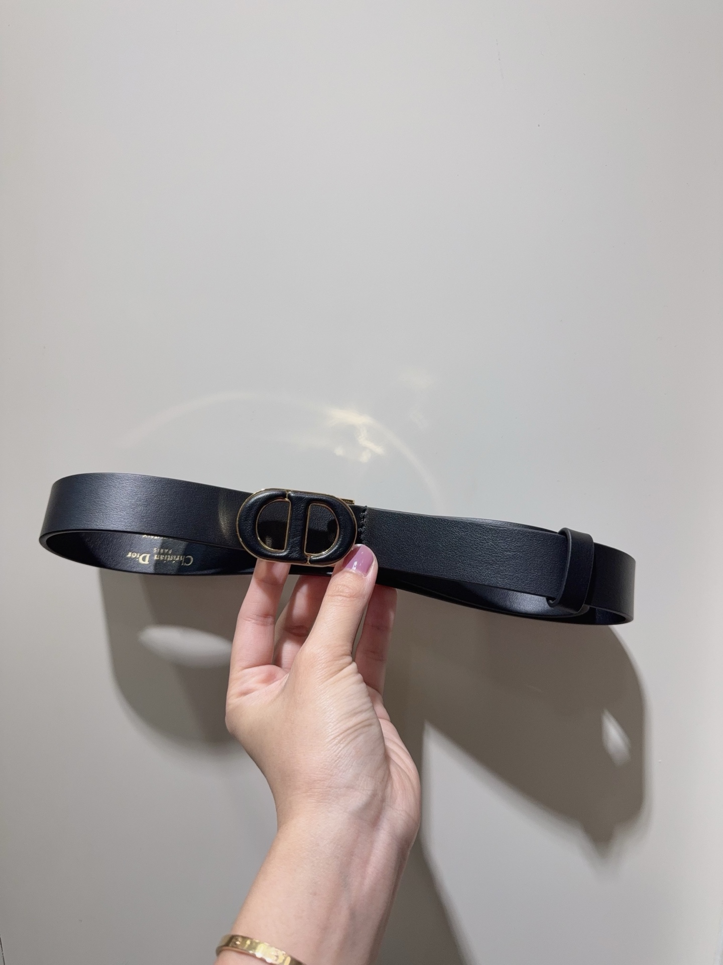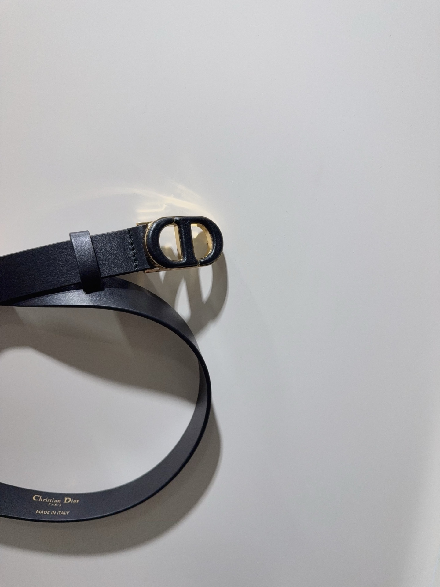 Dior new women's belt. Inspired by 30 Montaigne bag, crafted from smooth calfskin with vintage gold buckle. Elegant design, pairs with jeans or skirts. Width 2.5cm.