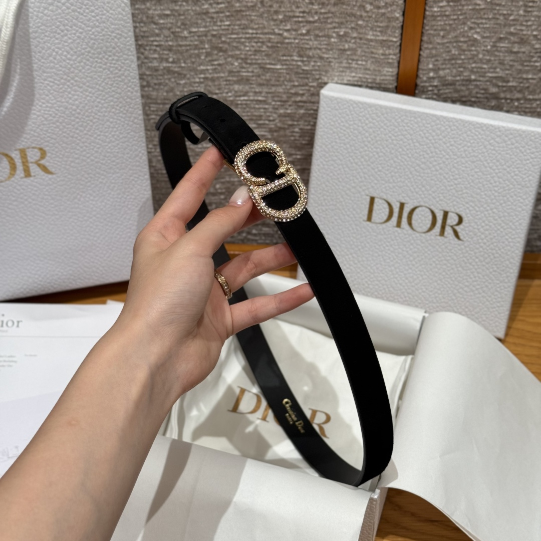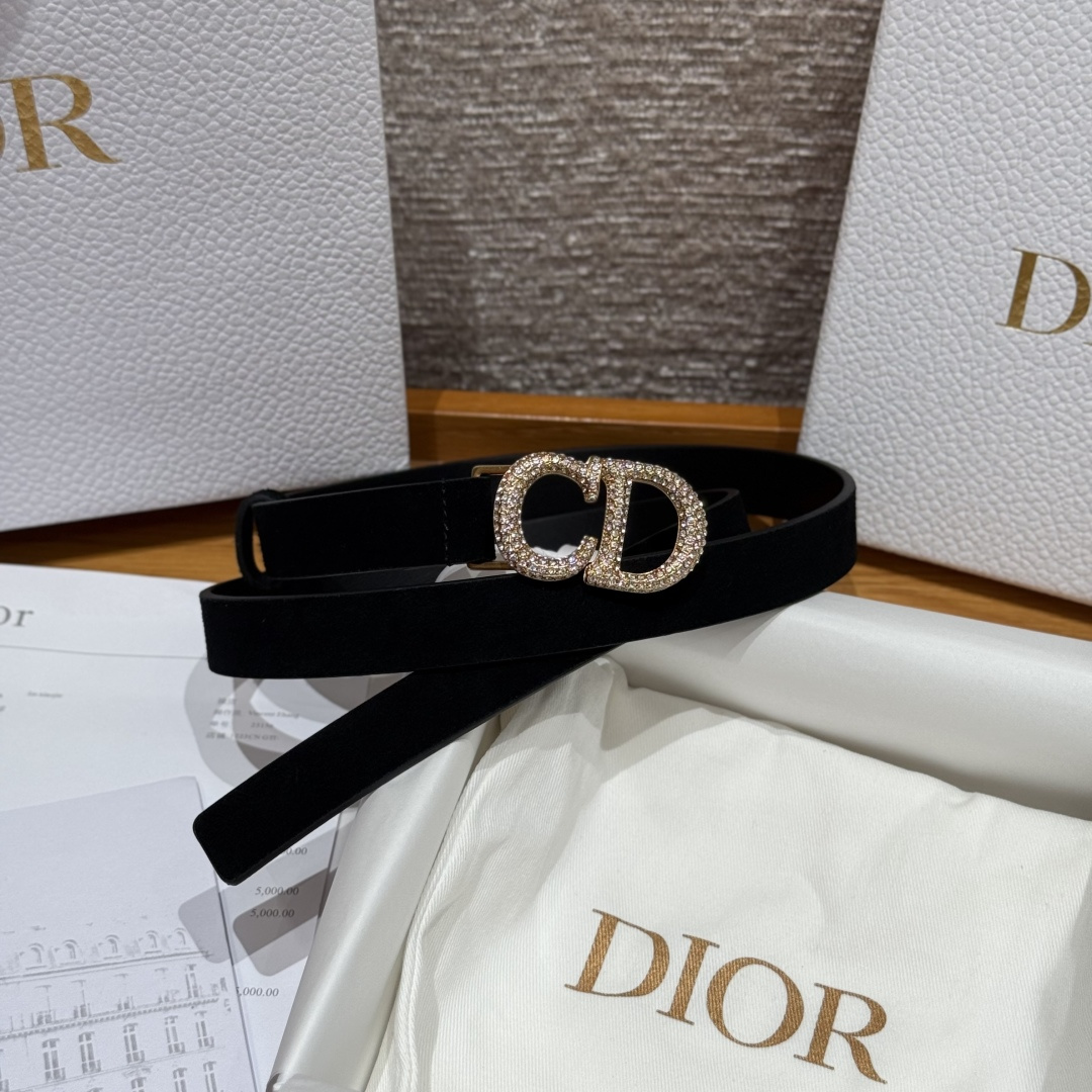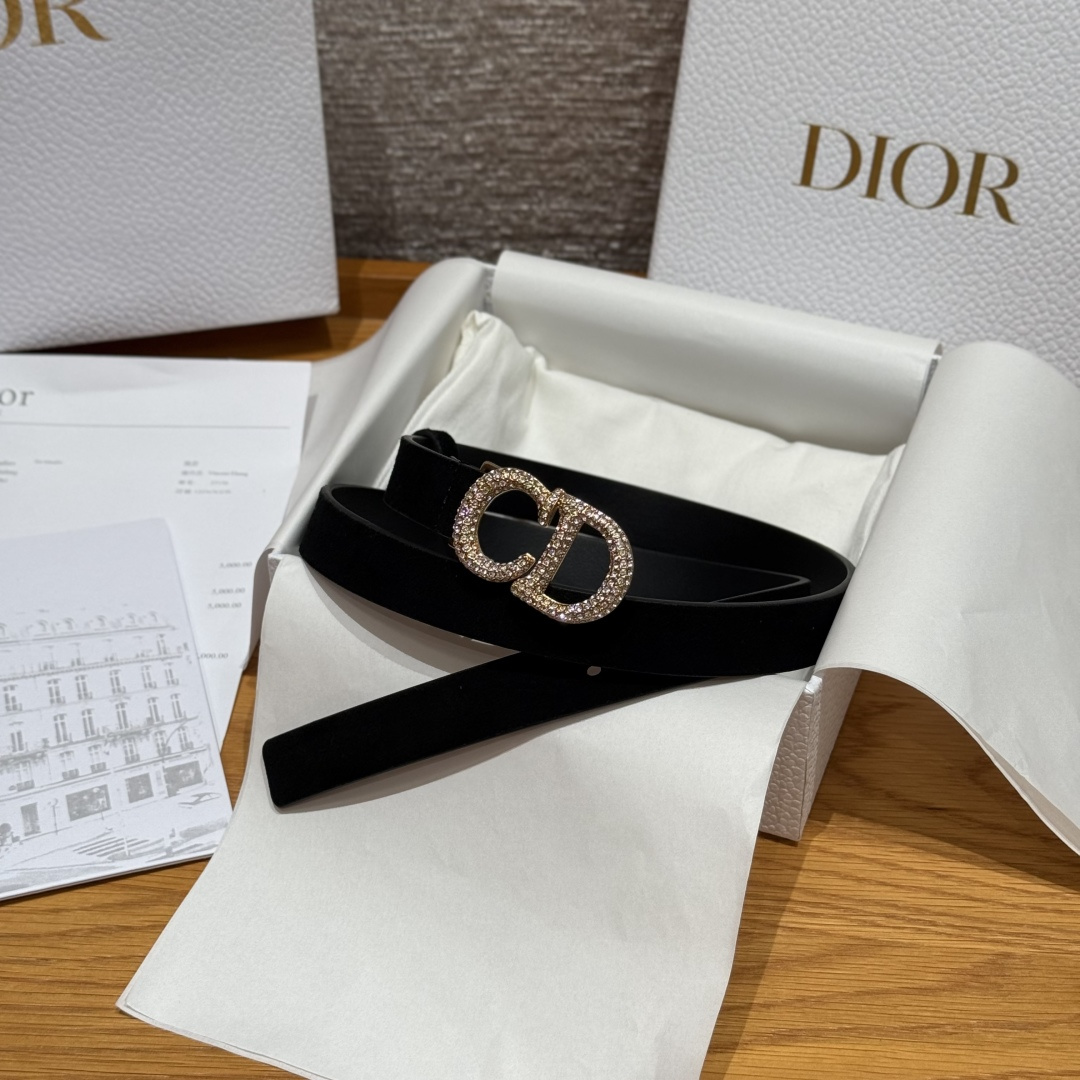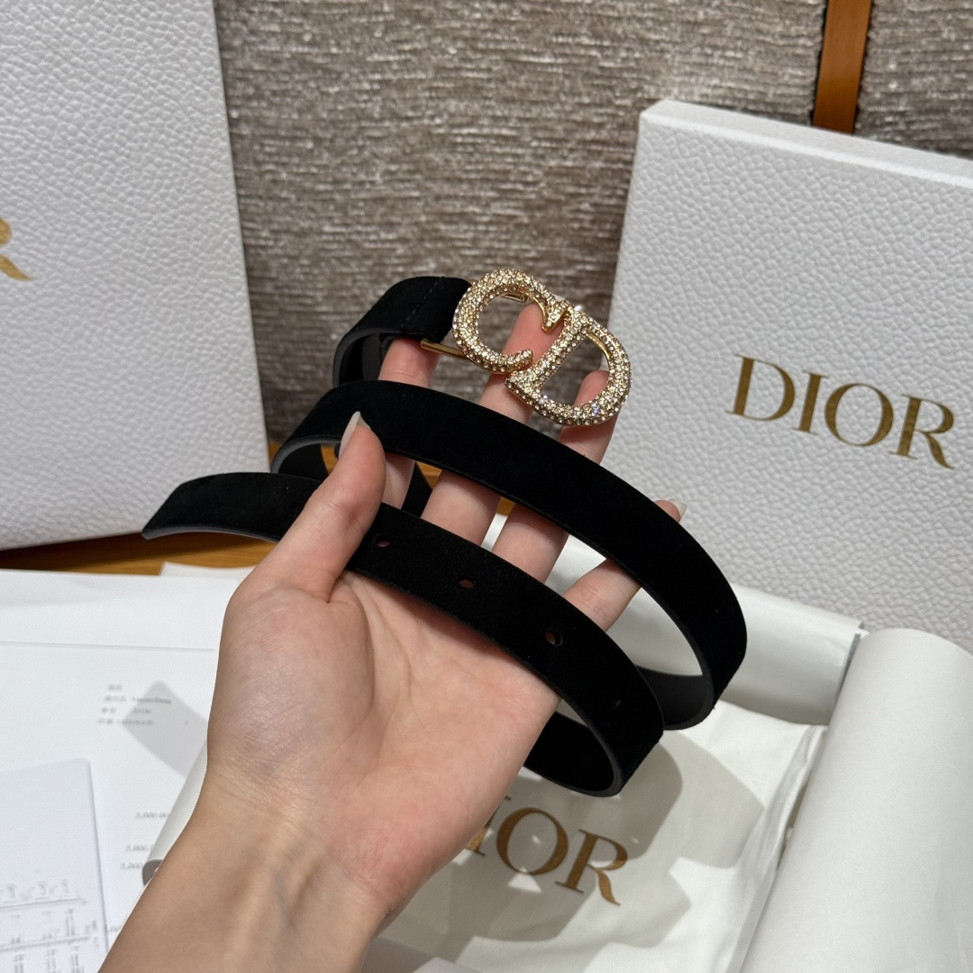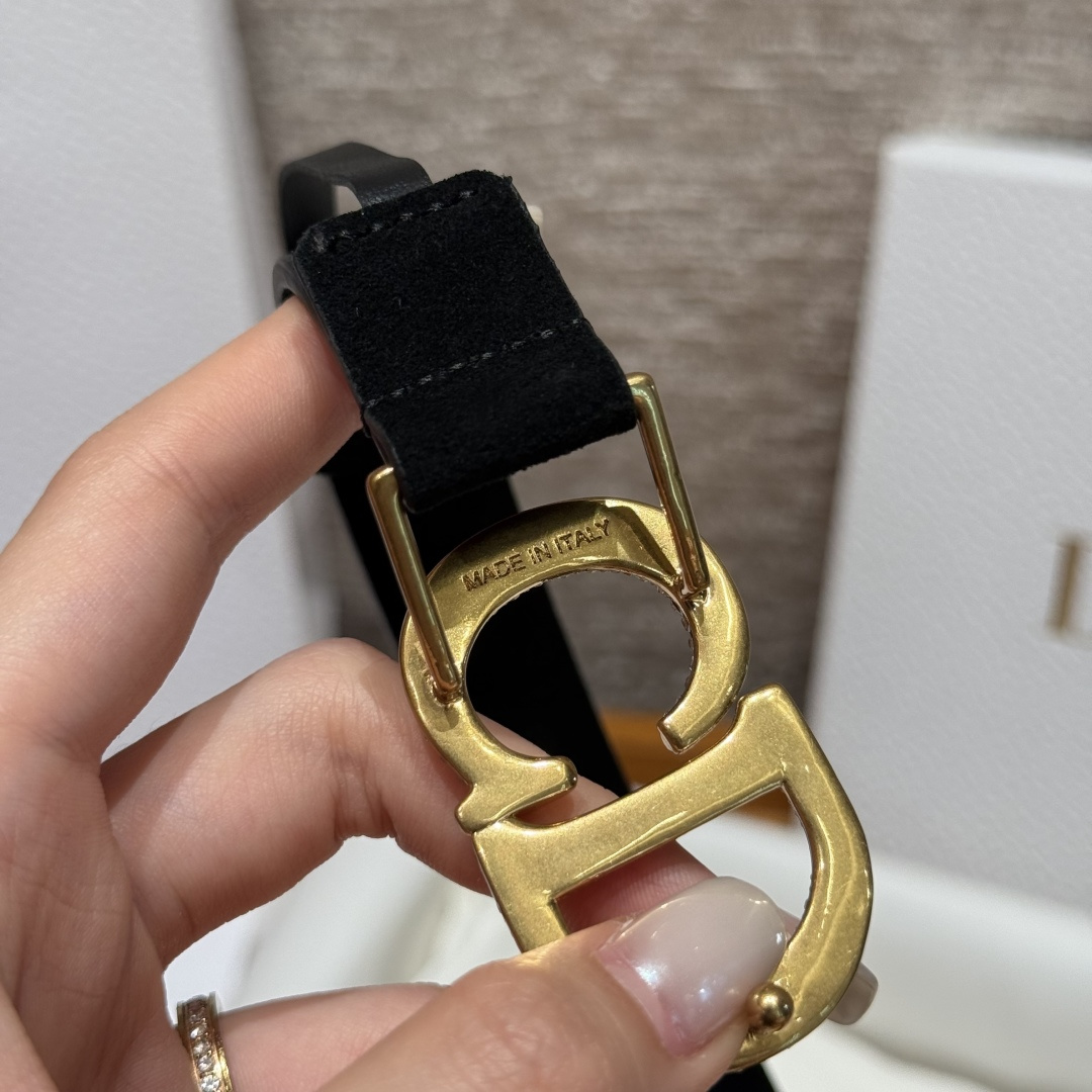 Dior new women's belt with suede front, smooth leather back, gold CD buckle with crystal accents. Elegant design, pairs with jeans or dresses. 20mm width.