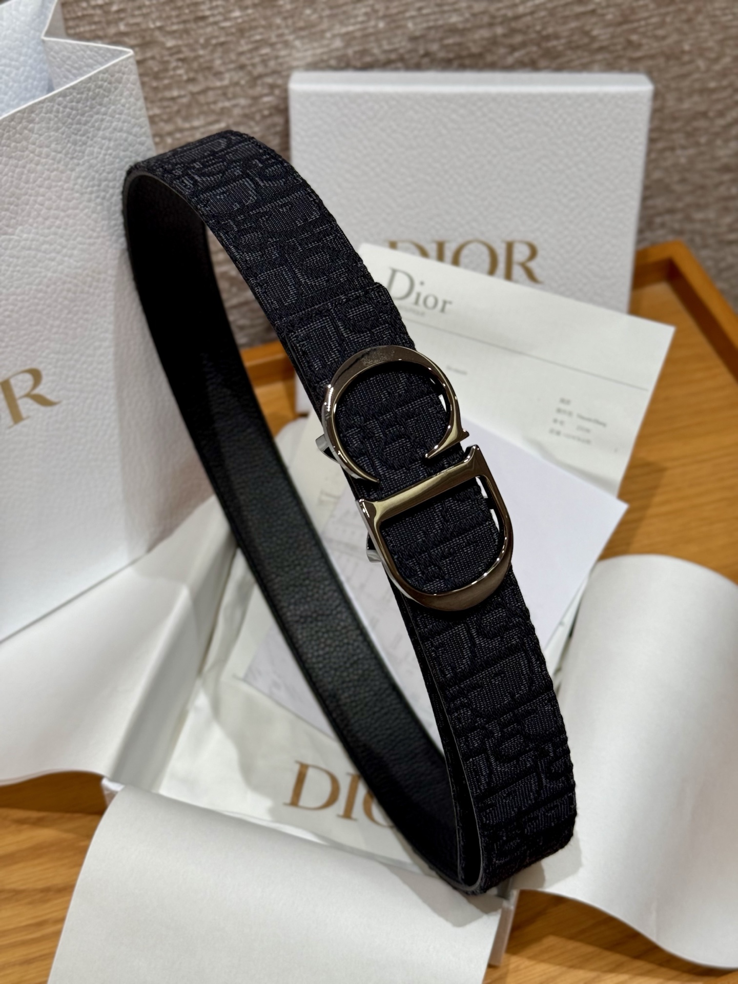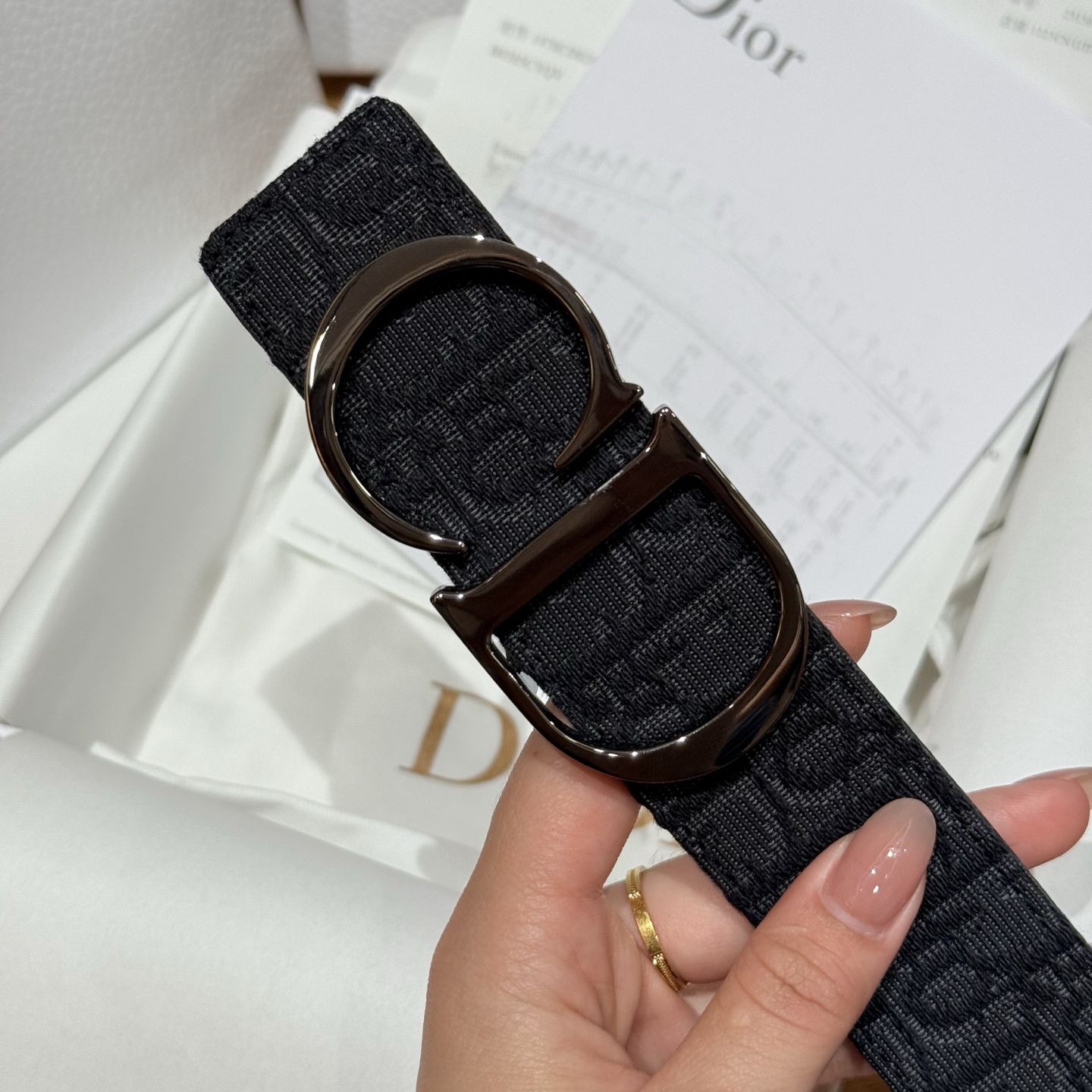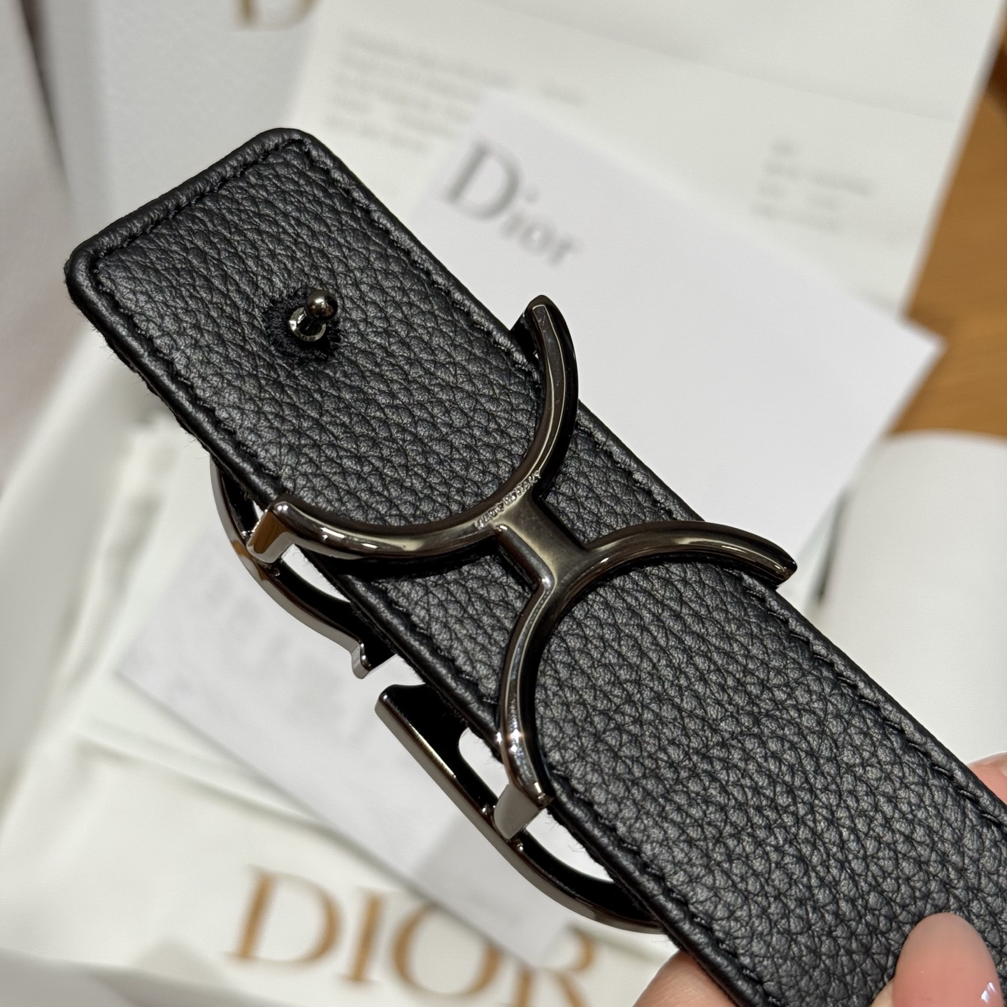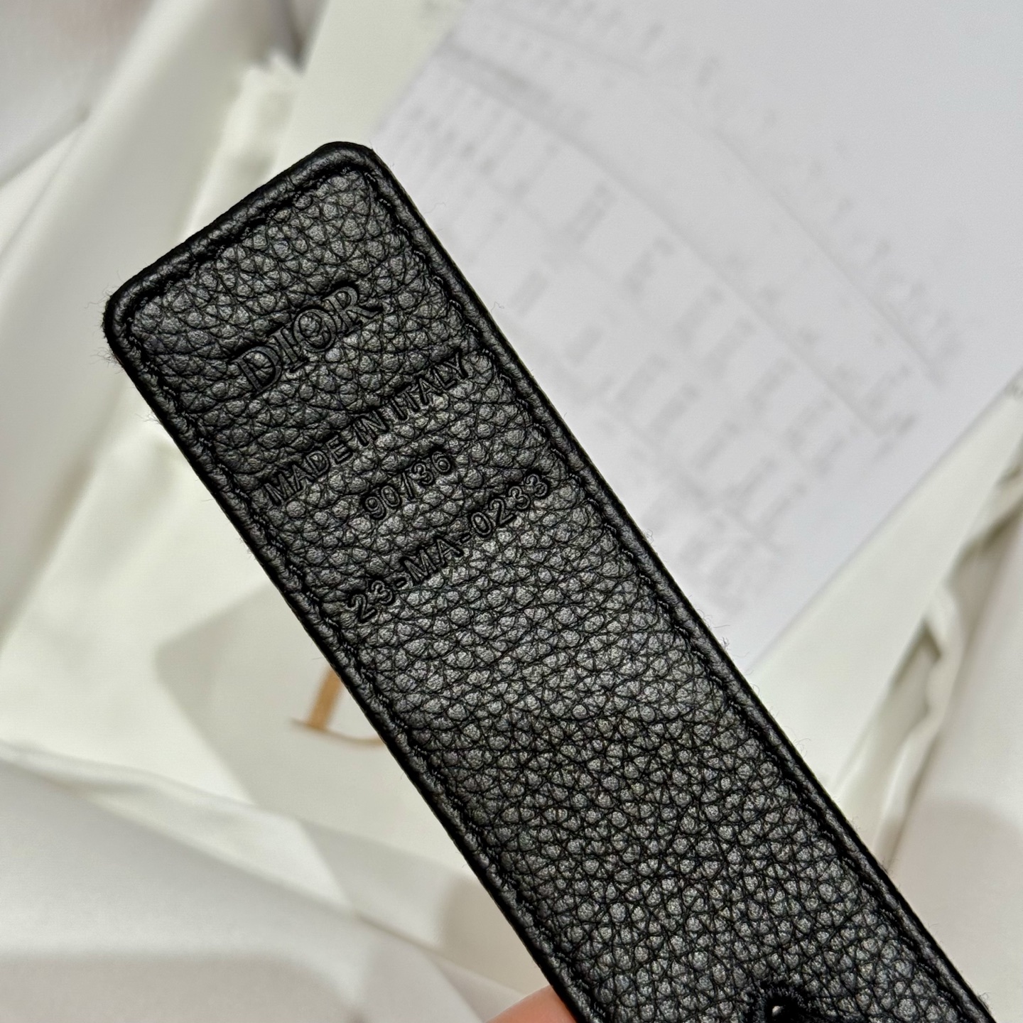 This belt is adorned with the "CD" logo, featuring the brand's pattern. Classic elements present a fresh style for the season. The design is exquisite and double-sided, with one side featuring Oblique印花 and the other side made of black grained calfskin leather. It can be freely paired with various 35cm belts to enhance elegance and create a modern, sophisticated look. It is versatile and fashionable.