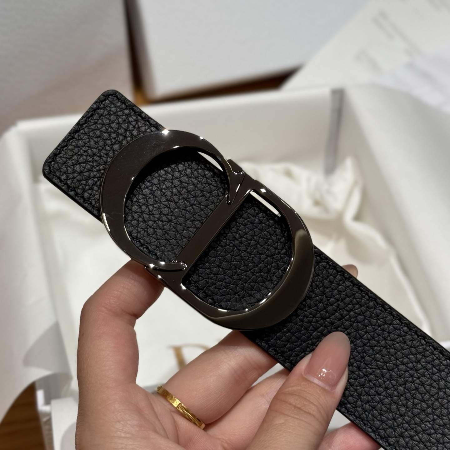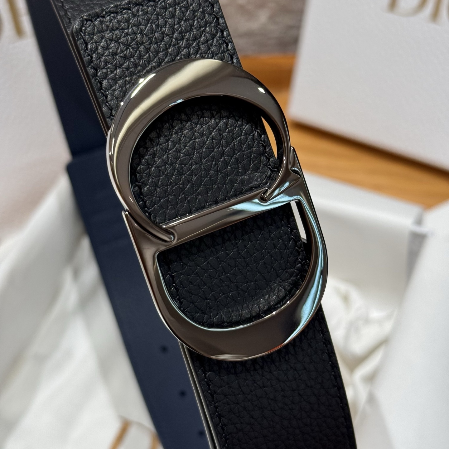 This double-sided belt combines elegant temperament with modern style. Both sides are meticulously crafted from grained calf leather and can be paired with various 35-millimeter belt buckles for added sophistication, creating distinctive accessories that are versatile and fashionable.