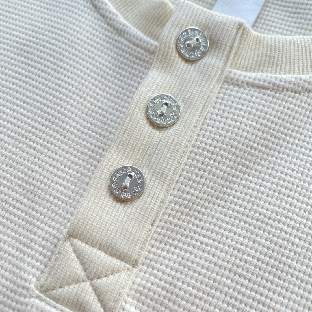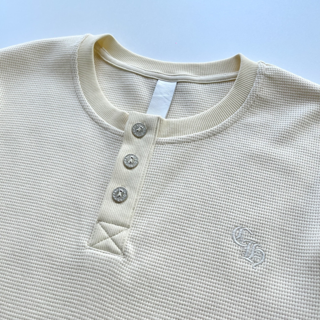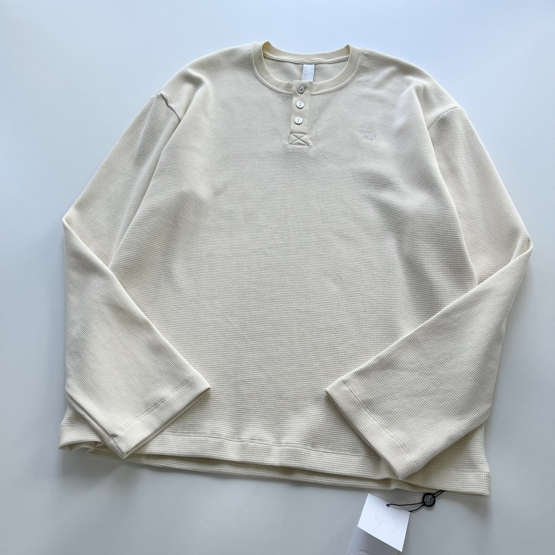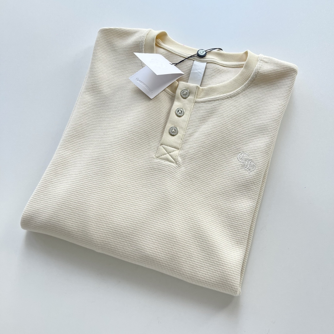 Early Autumn New Arrival: Chrome Hearts Button Round Neck Waffle Long T-shirt Custom 320g 100% Cotton Double-Sided Jacquard Waffle Fabric (Market fabrics are single-sided and contain polyester) Sanskrit CH Embroidery, Silver-Plated Molded Buttons Colors: Black/Apricot Sizes: S, M, L, XL In Stock