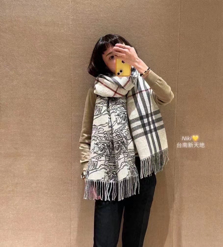 Exclusive hit, Bur Equestrian Knight Double-Sided Shawl, very beautiful, hailed as Burberry's most beautiful style this year, the most classic jacquard equestrian warhorse logo + classic khaki shawl, finely crafted scarf, made from jacquard fine-spun cashmere fabric, adorned with the brand's large check pattern and equestrian knight design, showcasing Burberry style.