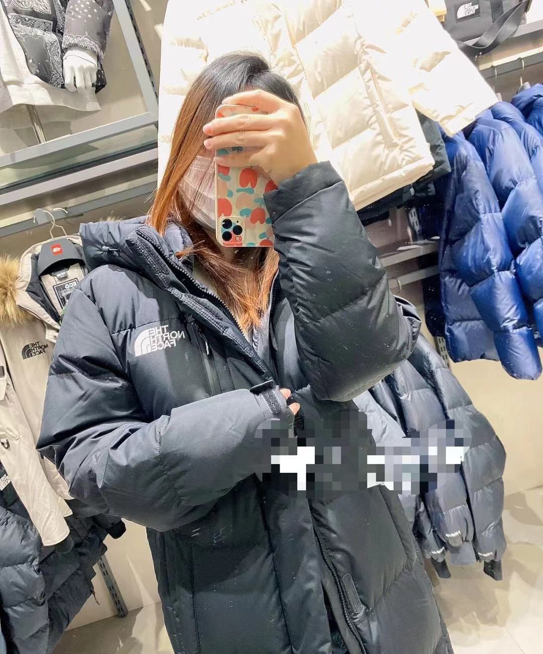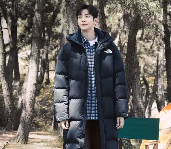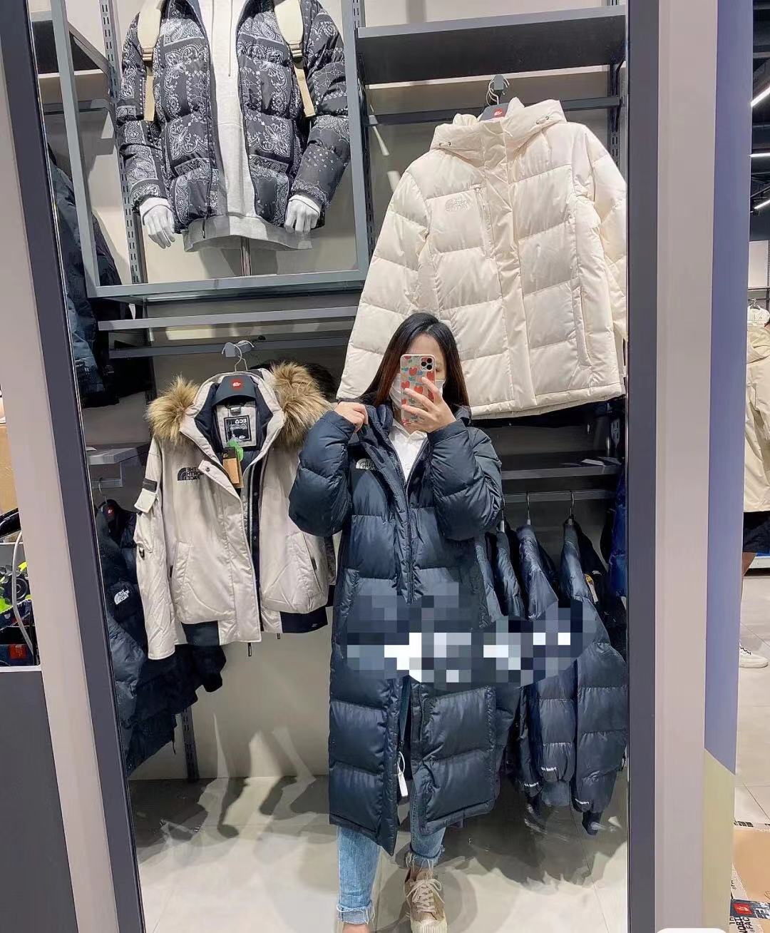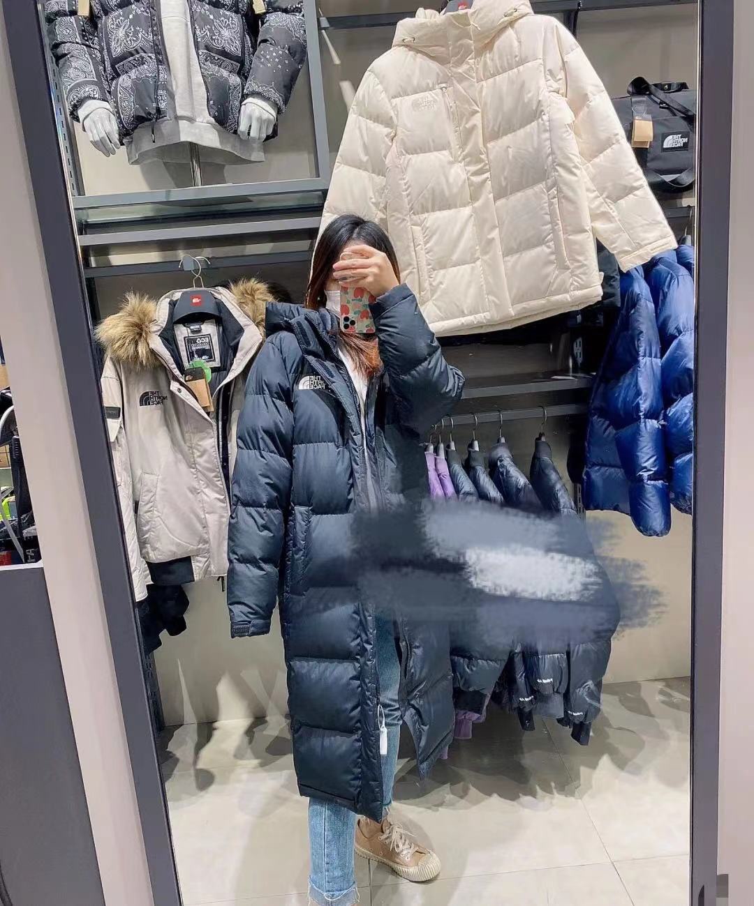High version Guangzhou The North Face embroidered logo extended down jacket over knee long couple coat