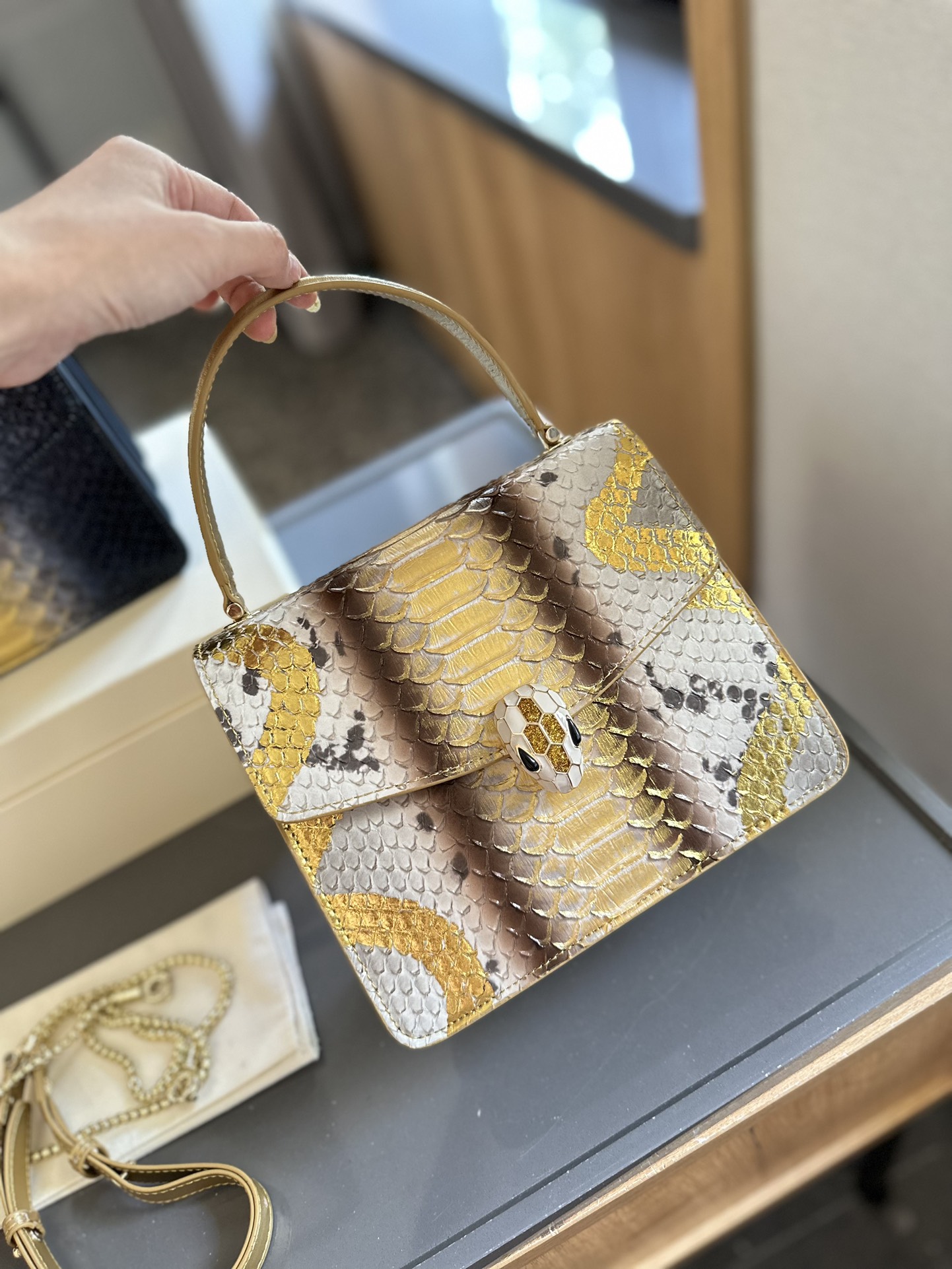 Genuine leather gift box. Size: 20x16cm. Bvlgari style, original leather and hardware. Quality cowhide with imported enamel clasp.
