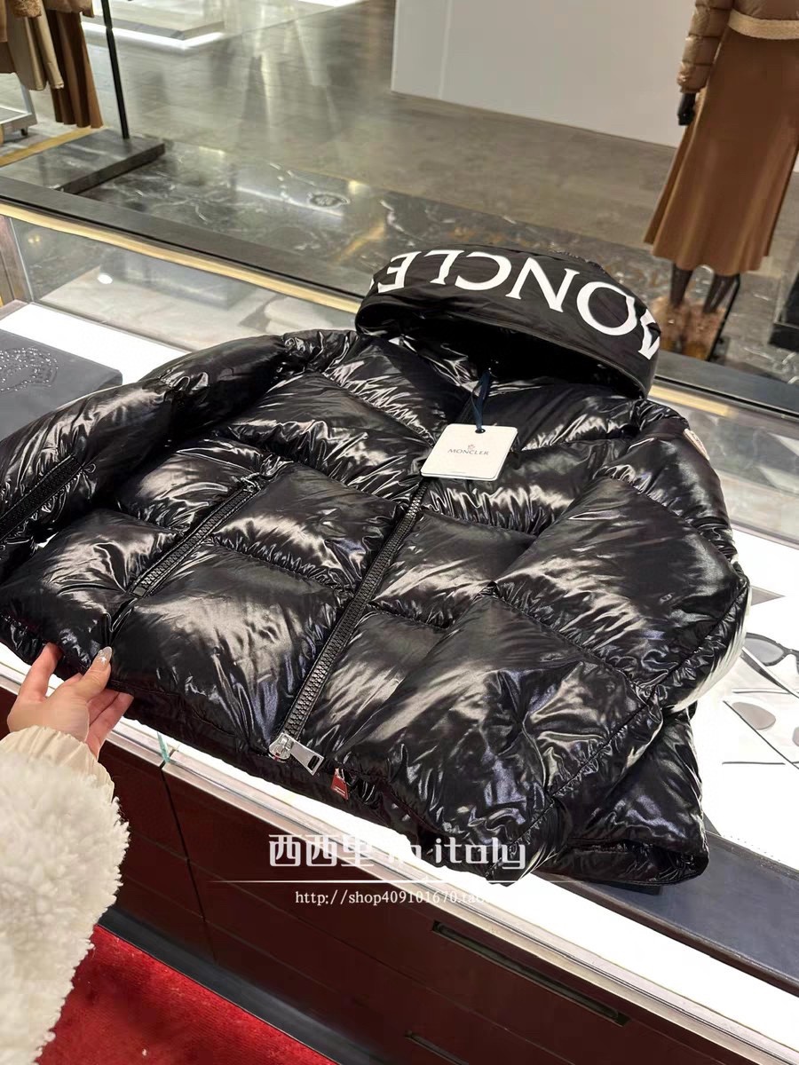 Guangzhou high-end Moncler Abbaye short jacket, hidden logo hood. Stylish, versatile, great fit. Warm for autumn/winter. Colors: black, white. Sizes: 1,2,3,4.