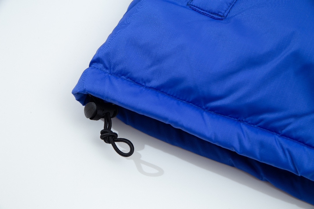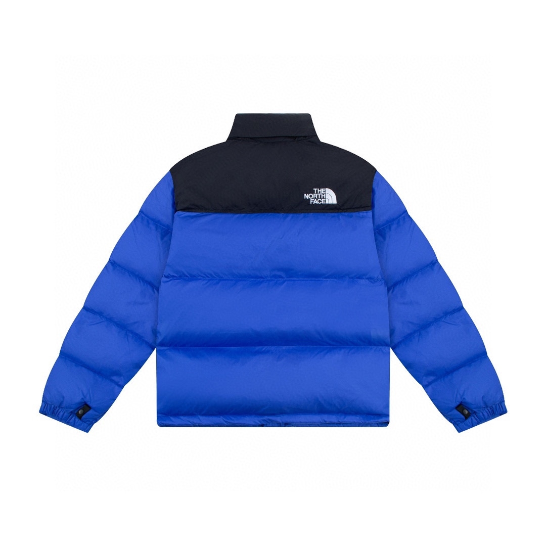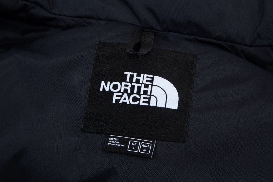 Guangzhou high-end replica North Face 1996 jacket. Waterproof, fade-resistant fabric. 400D lining prevents down leakage. 715+ fill power white duck down. Original YKK zippers.