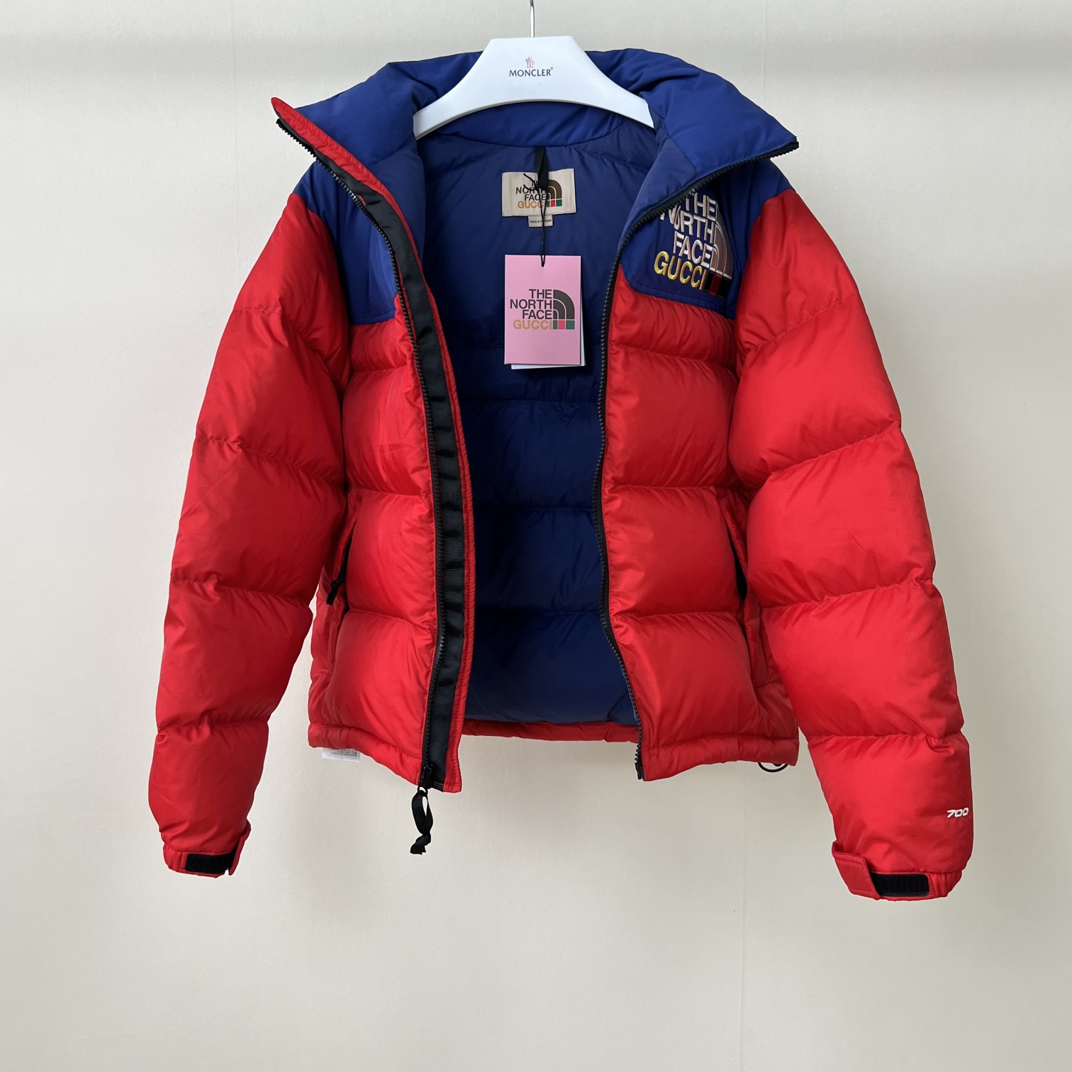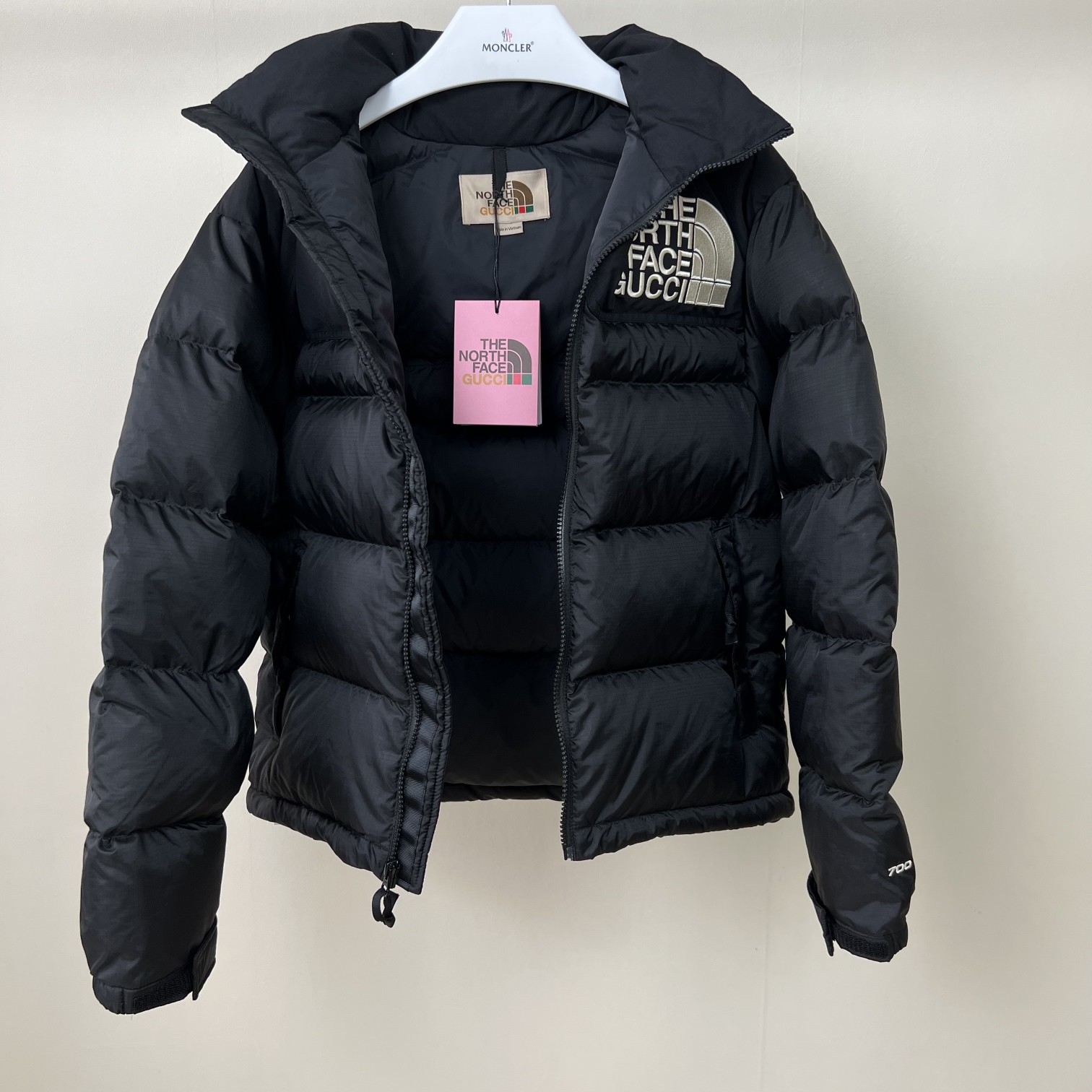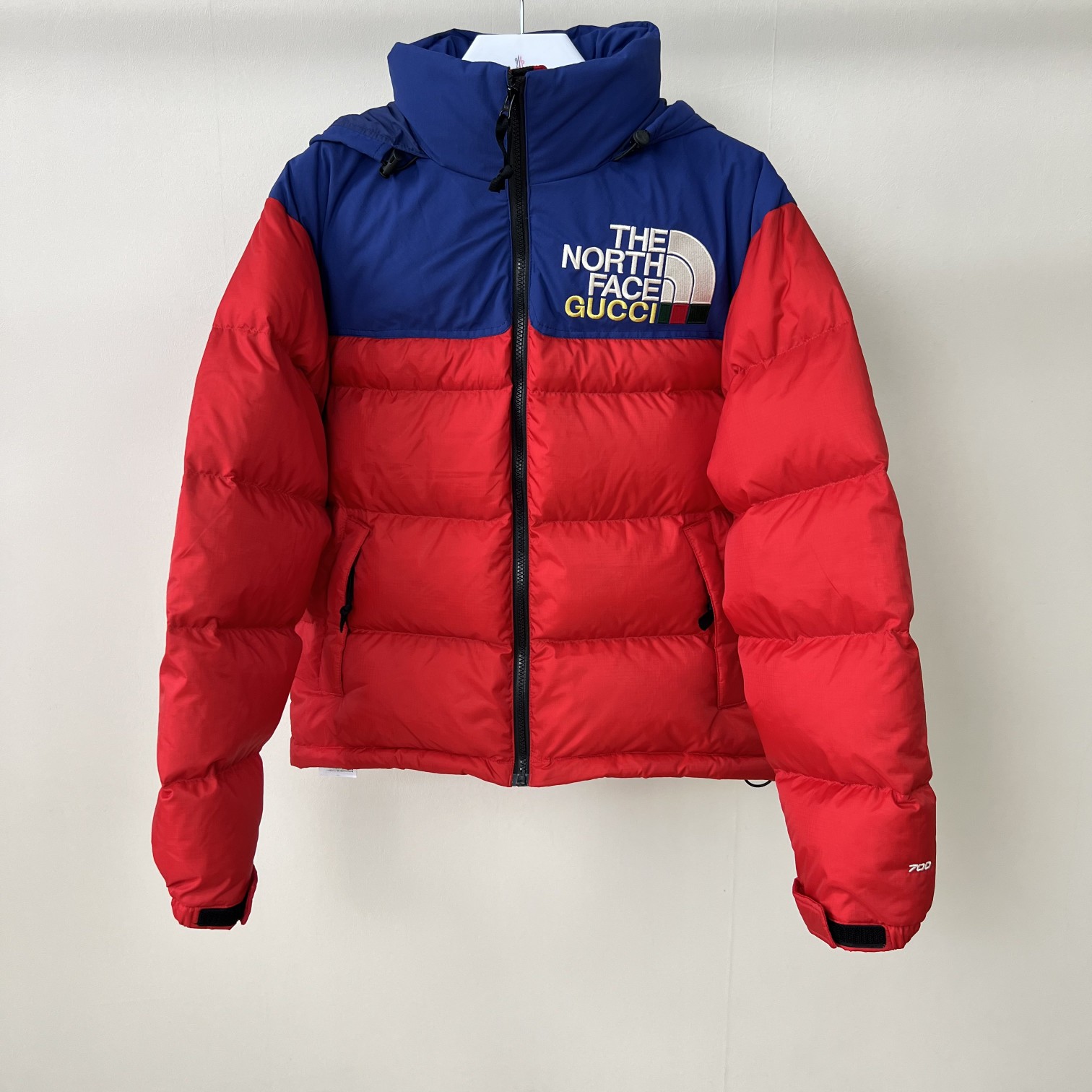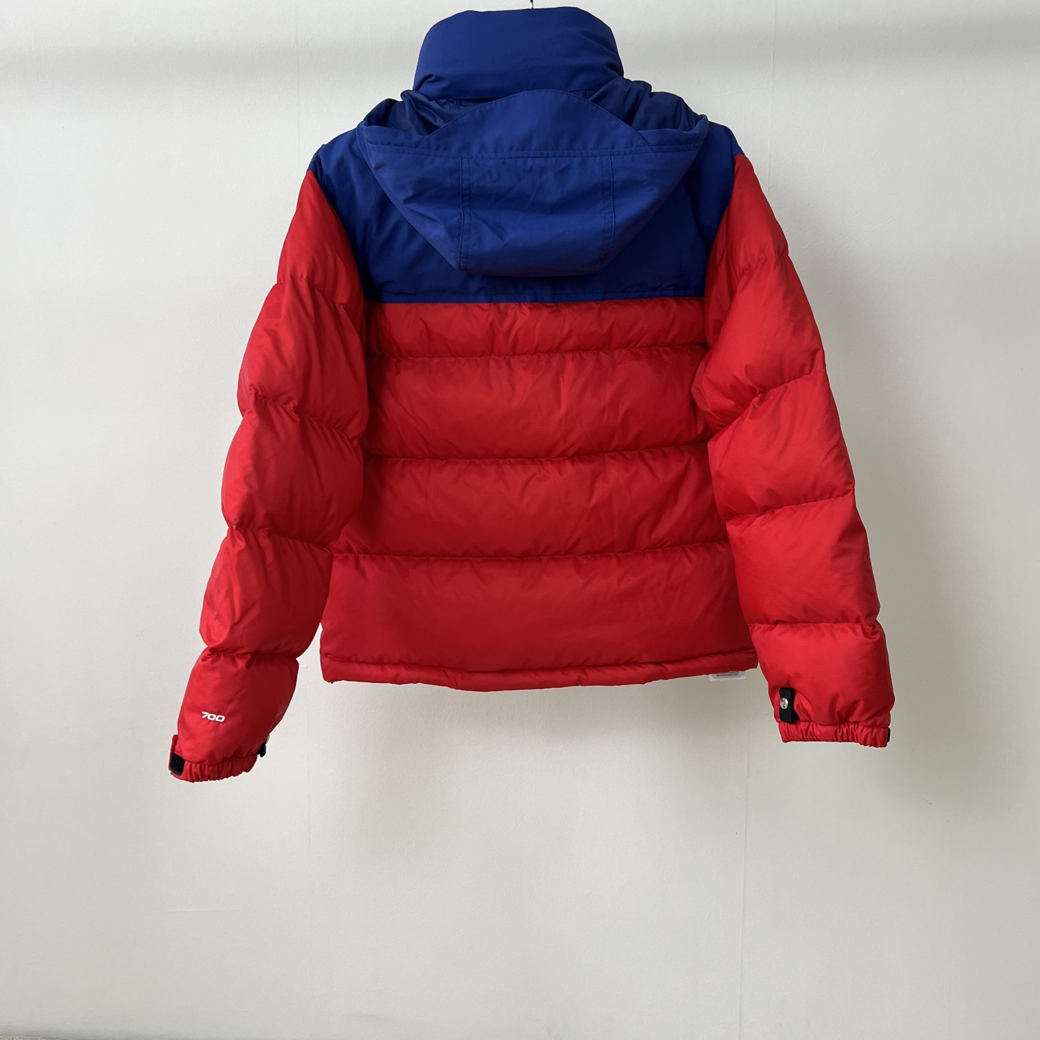 Guangzhou high-end replica of 100% original American sample down jacket. Features custom embroidery, 90% white duck down, windproof nylon lining, and original YKK zippers. Durable, warm, and professional quality.