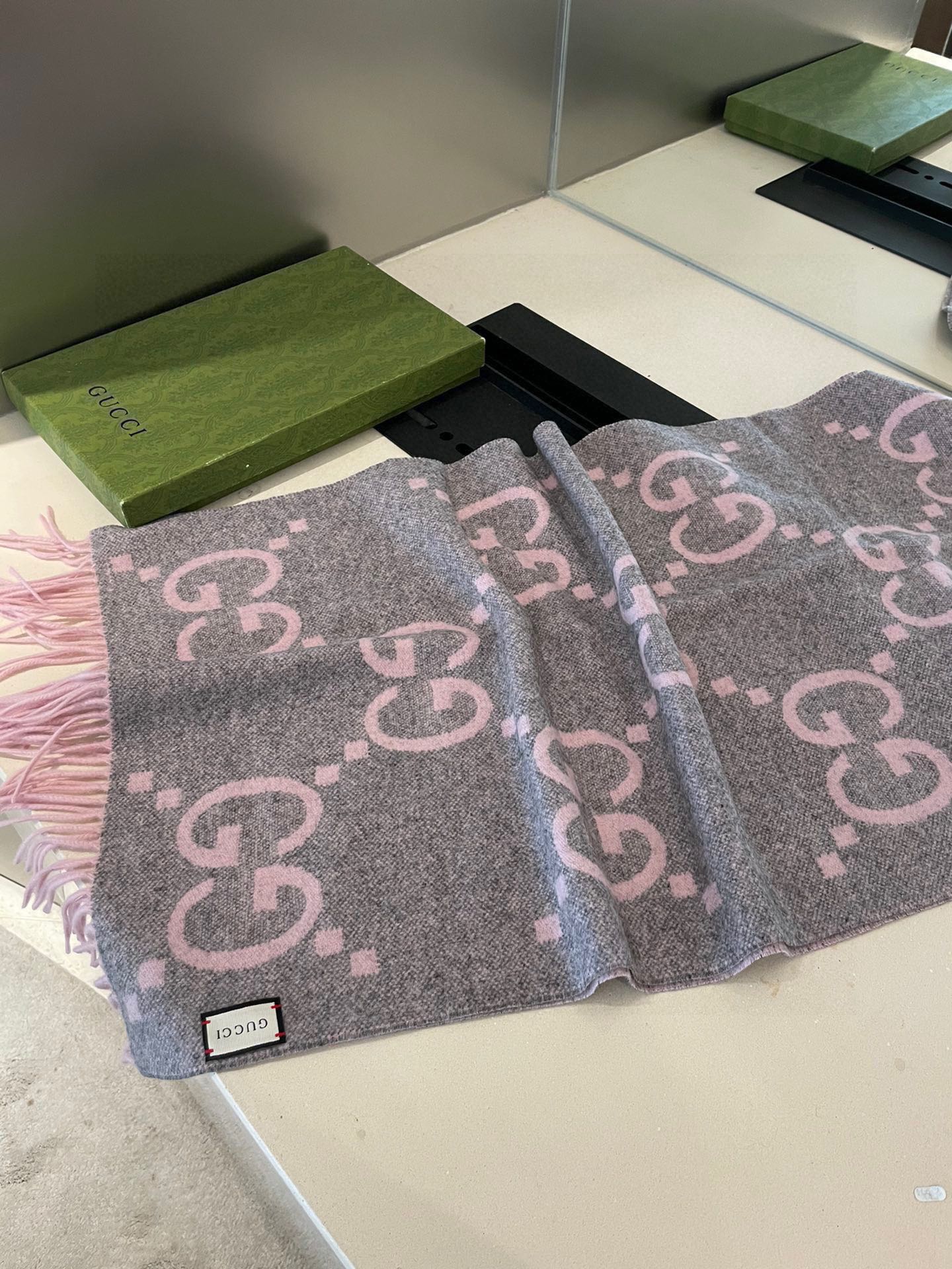 Gucci rare quality, so beautiful. Gucci's latest ZG synchronized style. The pattern is really super beautiful~ Just love this GG style! The price is super attractive, a福利推荐. ZG selling price 7195. The fabric is strong twist worsted double-sided cashmere jacquard, very neat and exquisite fabric, presenting a powerful line and surface structure, with great support and flexibility. Highly recommended by veteran customers, such texture, style, and craftsmanship can really surpass many. Good materials, style, and craftsmanship give us a completely different feeling. Often, not only do we need a high-quality item, but we also care most about how easy it is to handle. Those who understand will get it. Limited color matching, looks especially good on both men and women. Specifications: 35*190cm
