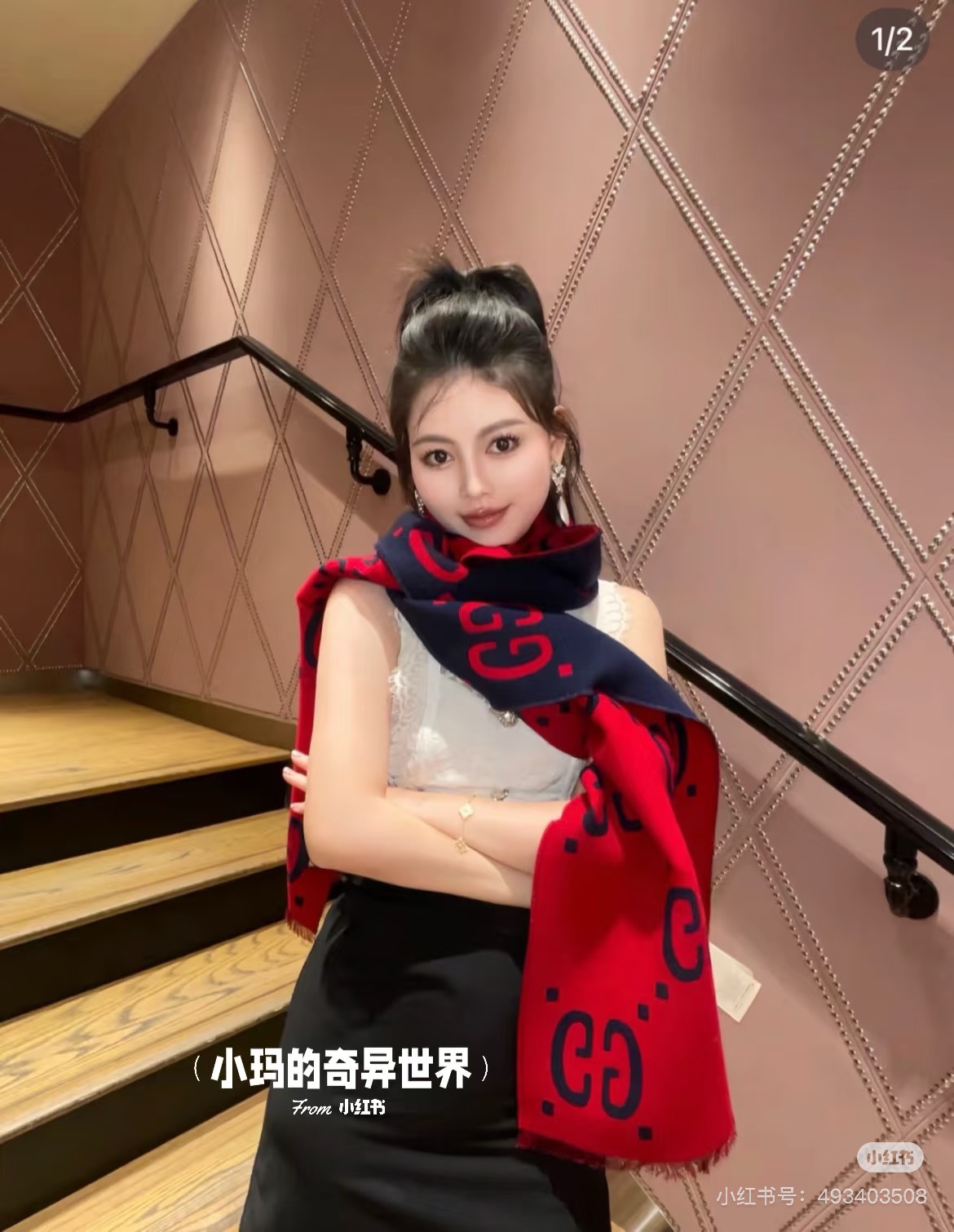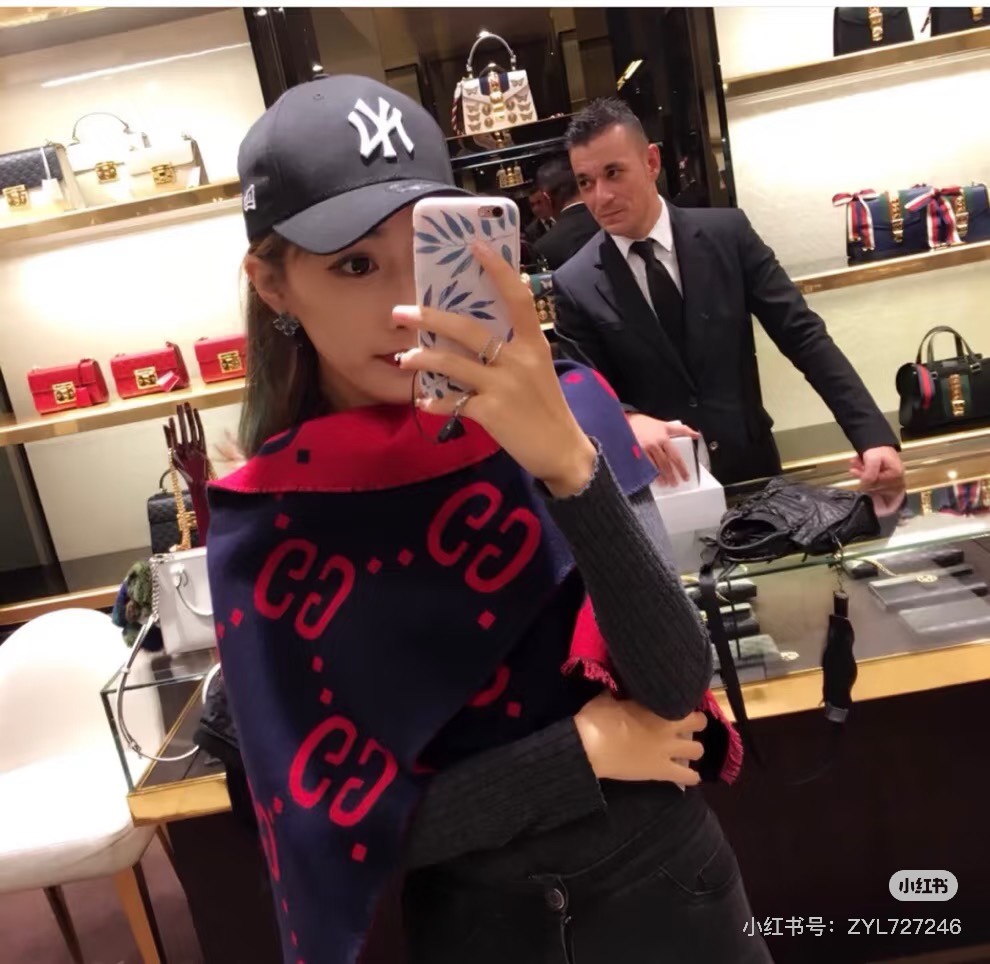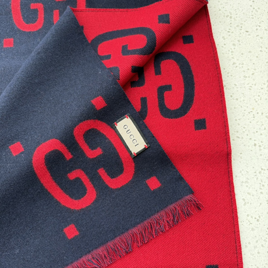 Gucci Heavyweight Recommendation Details The GG logo, as a highly representative traditional essence of Gucci, is always inseparable from the series. It innovates in a modern way full of new ideas, presenting extraordinary layers, style, and design. The GG pattern on this wool-silk blend scarf has been reinterpreted and presented in large, fashionable font.