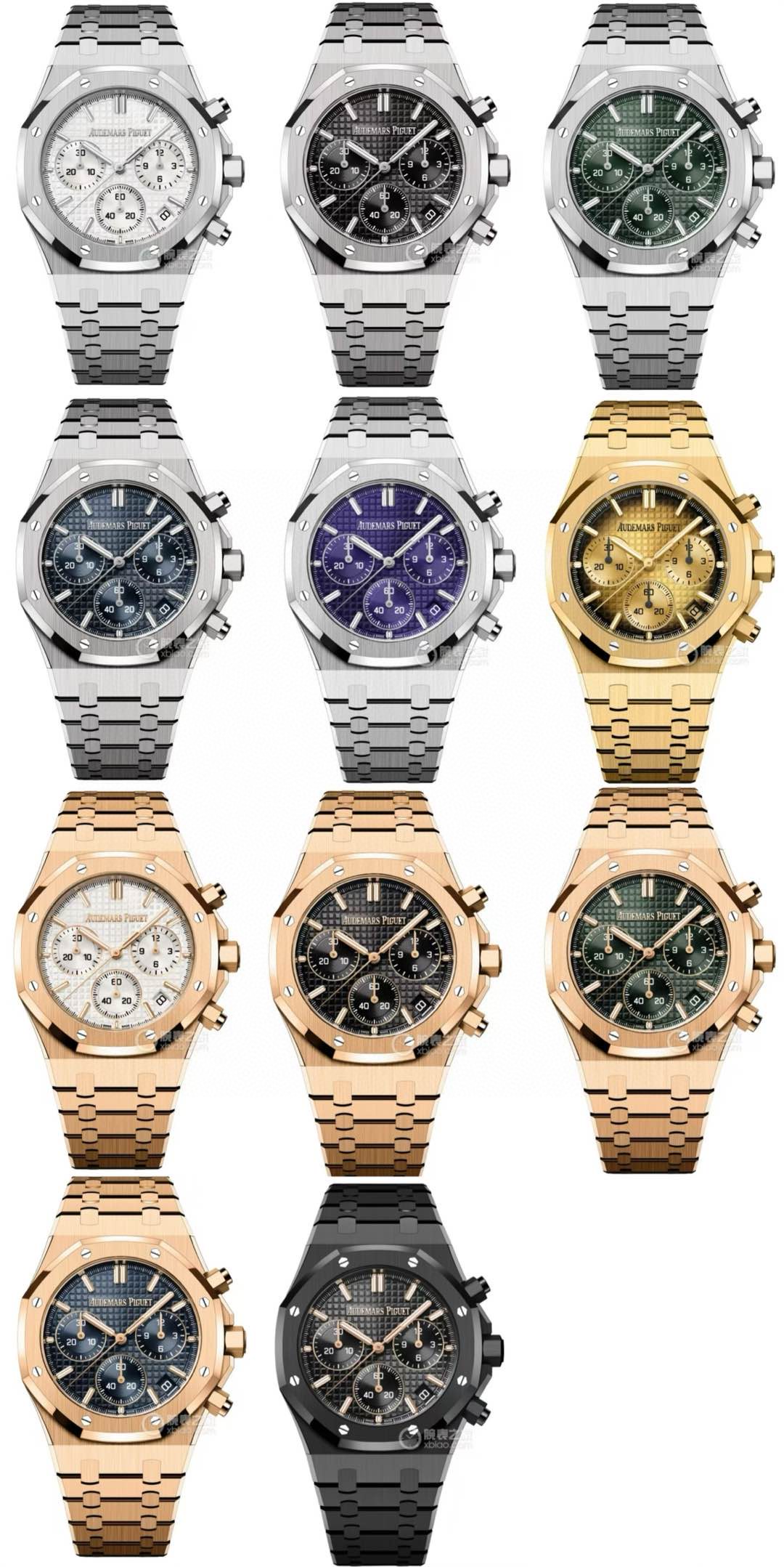 HBF Factory Audemars Piguet 2024 50th Anniversary Royal Oak 26240ST chronograph. 1:1 replica with 7750 movement, 316L steel case, 41mm dial, 14mm thickness, strong lume. Top market version.