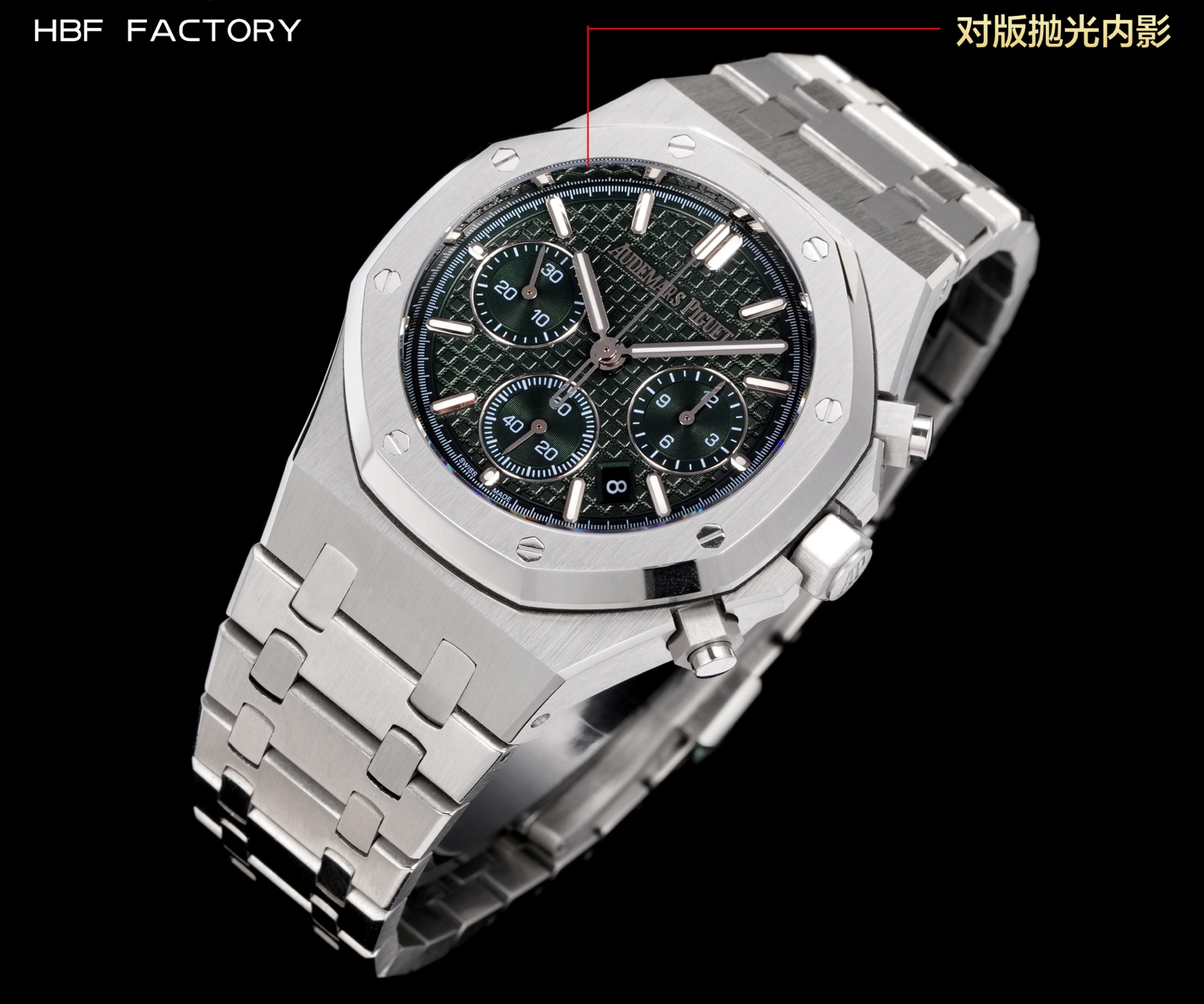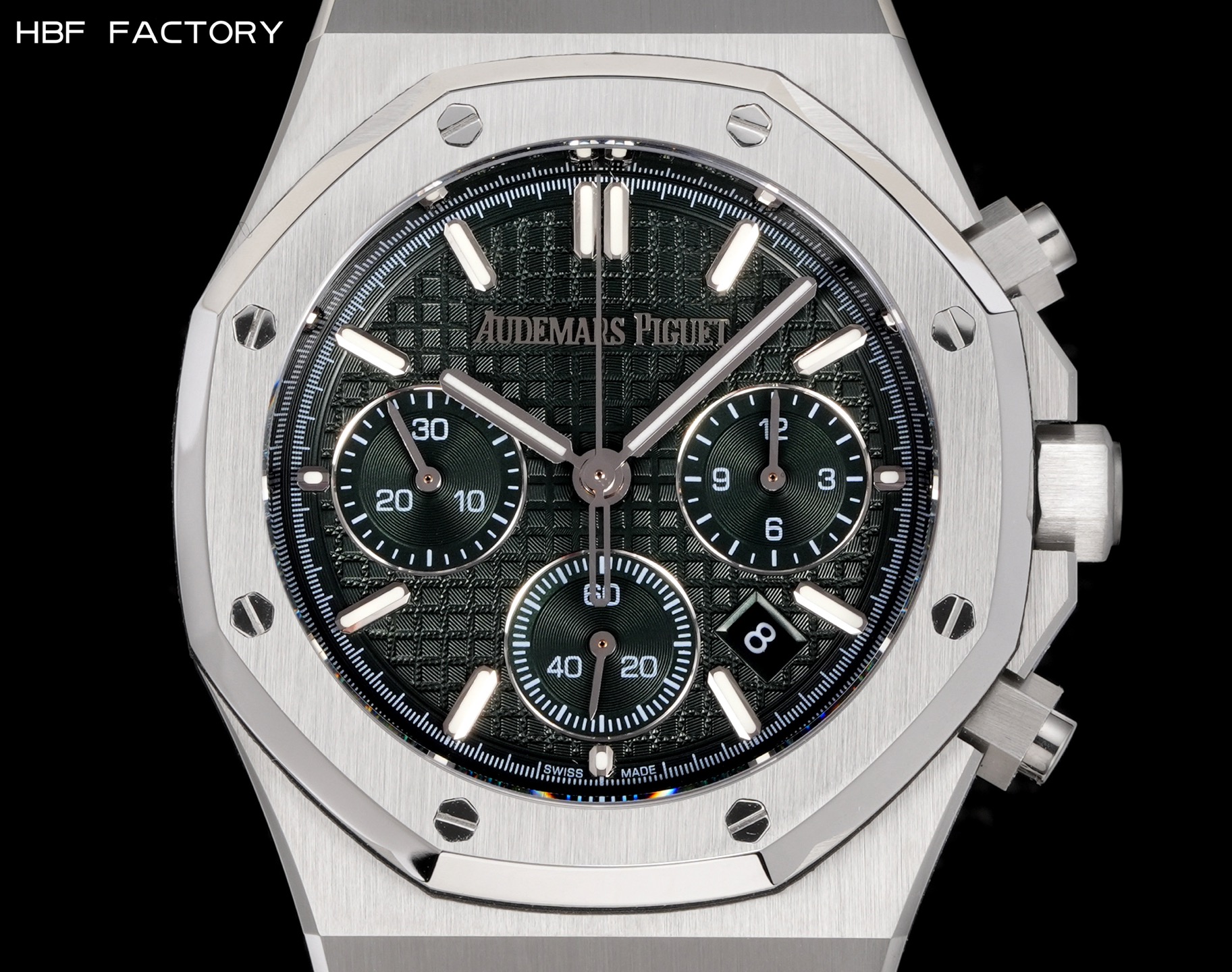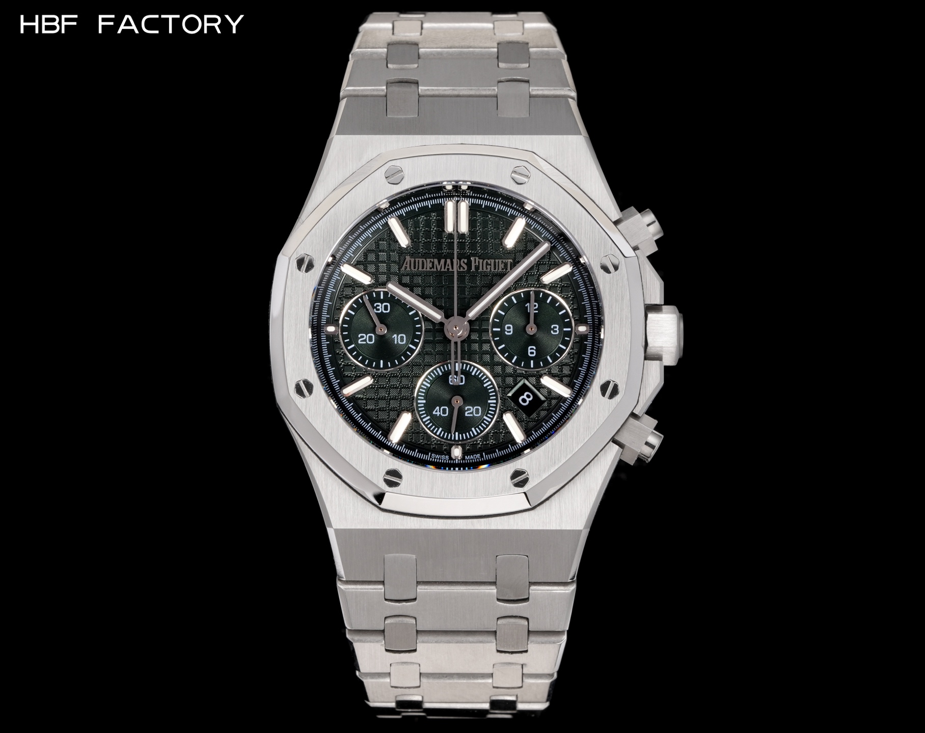 HBF Factory Audemars Piguet Royal Oak 26240ST watch. 41mm case, 13.8mm thickness. Upgraded movement and polished inner bezel. Superior lume, 316L steel. Top-tier replica.