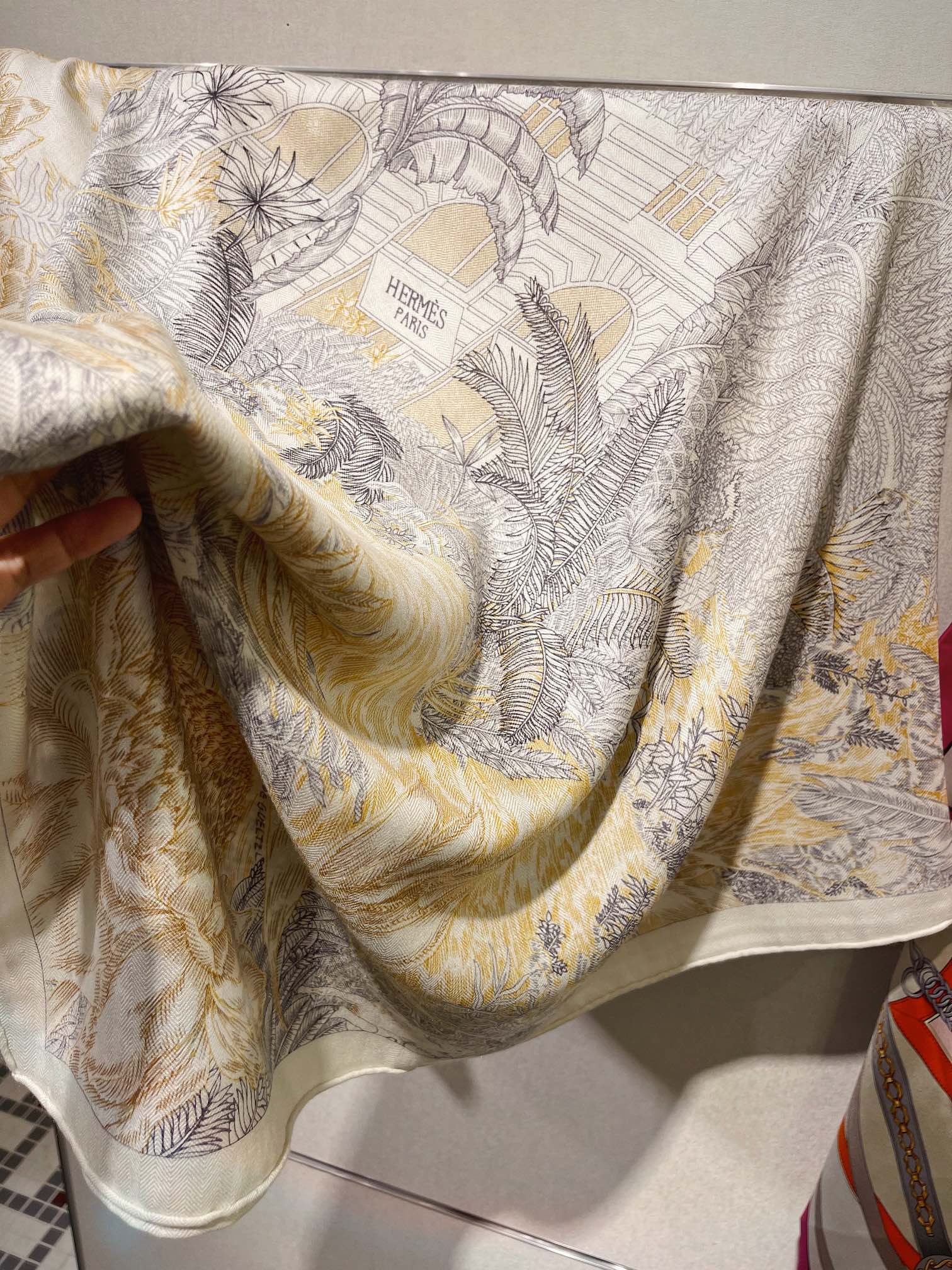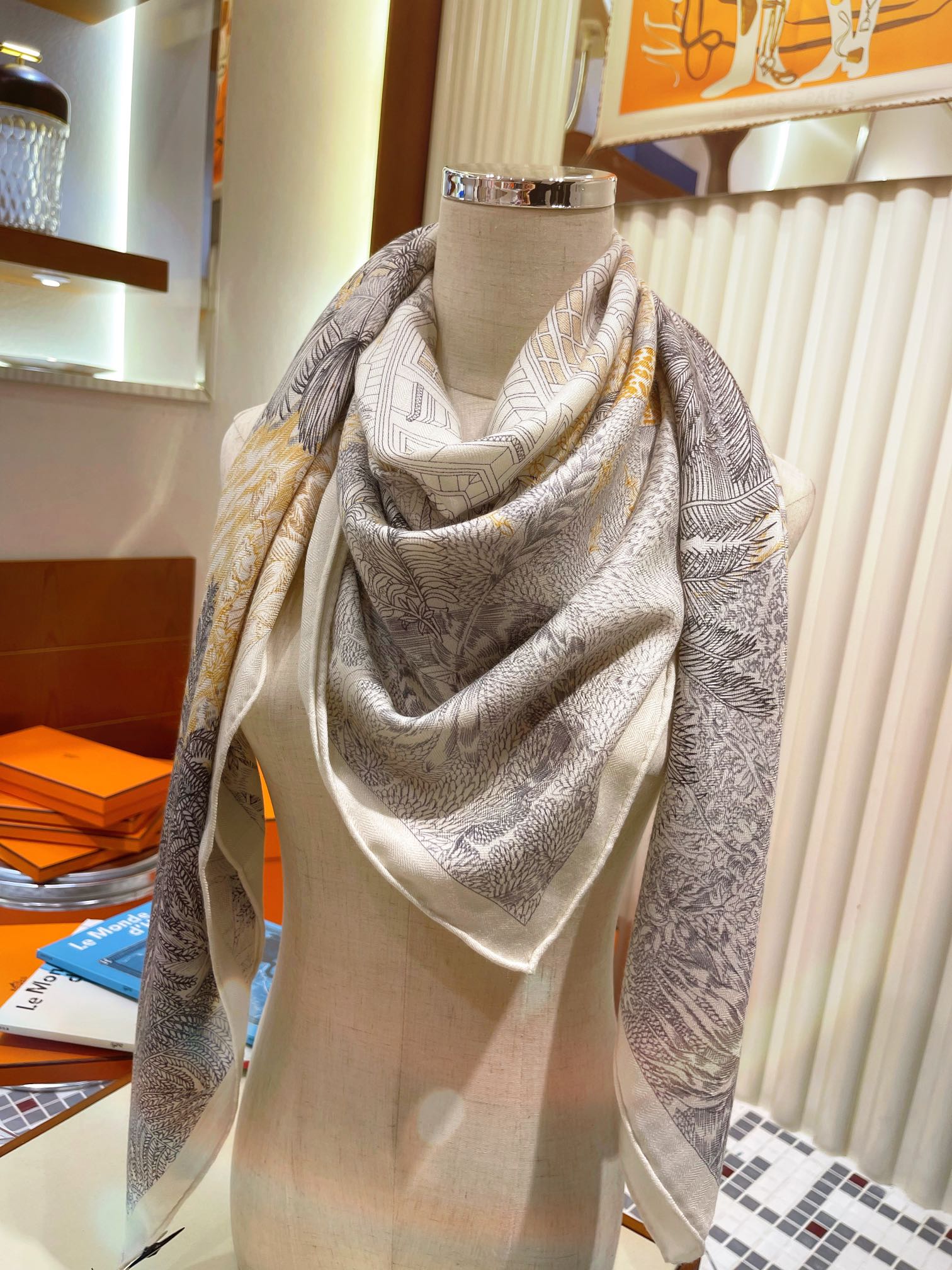 【Indescribable beauty, indulging in the word-of-mouth line! Heavyweight garden sketch series—Hermes' rare design!!!】Gently and softly stunning everyone, it is the highest expression of beauty! New Hermes release!! Premium fabric texture and excellent color matching patterns, such a beautiful and elegant shawl ensures a high-level victory, making your temperament stand out in the crowd!!! The mastery of color tones is exceptionally well-handled! This sketch floral design is sophisticated, elegant, and tasteful!! Remember, Hermes' design relies on high-quality fabrics as its foundation and meticulous details as its strength—such an H is truly remarkable, everything else is superfluous! Dimensions 140*140cm top-grade silk-cashmere large scarf. Two colors.
