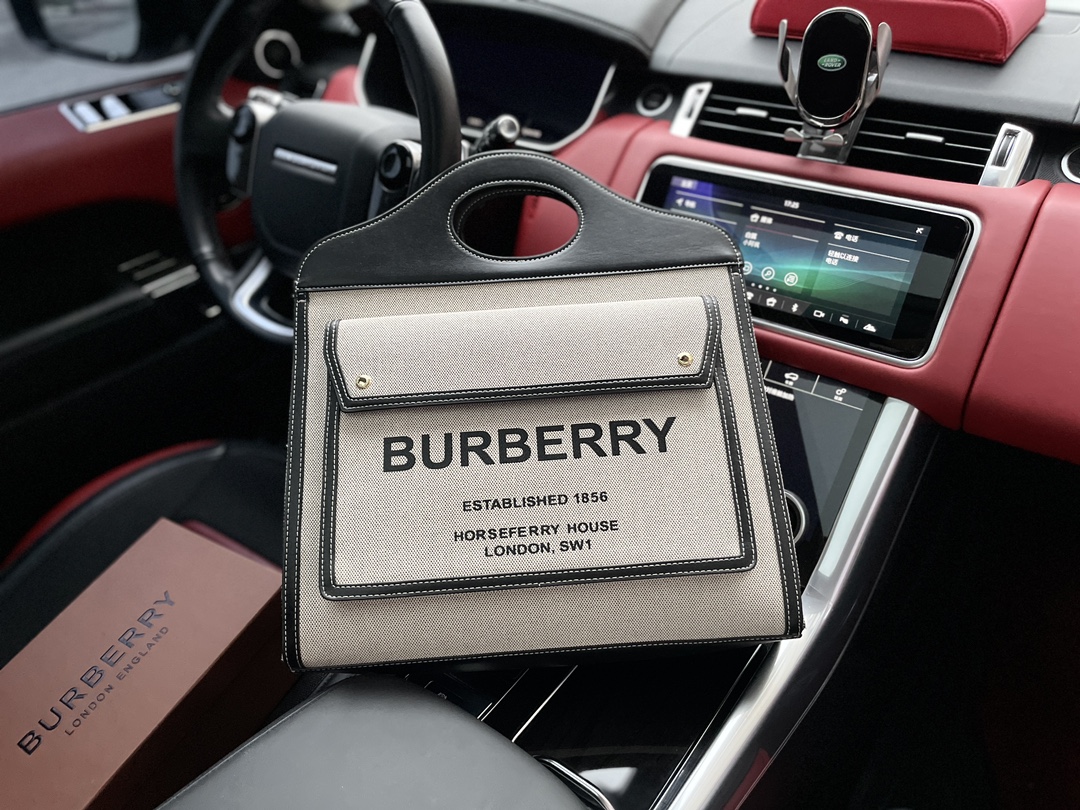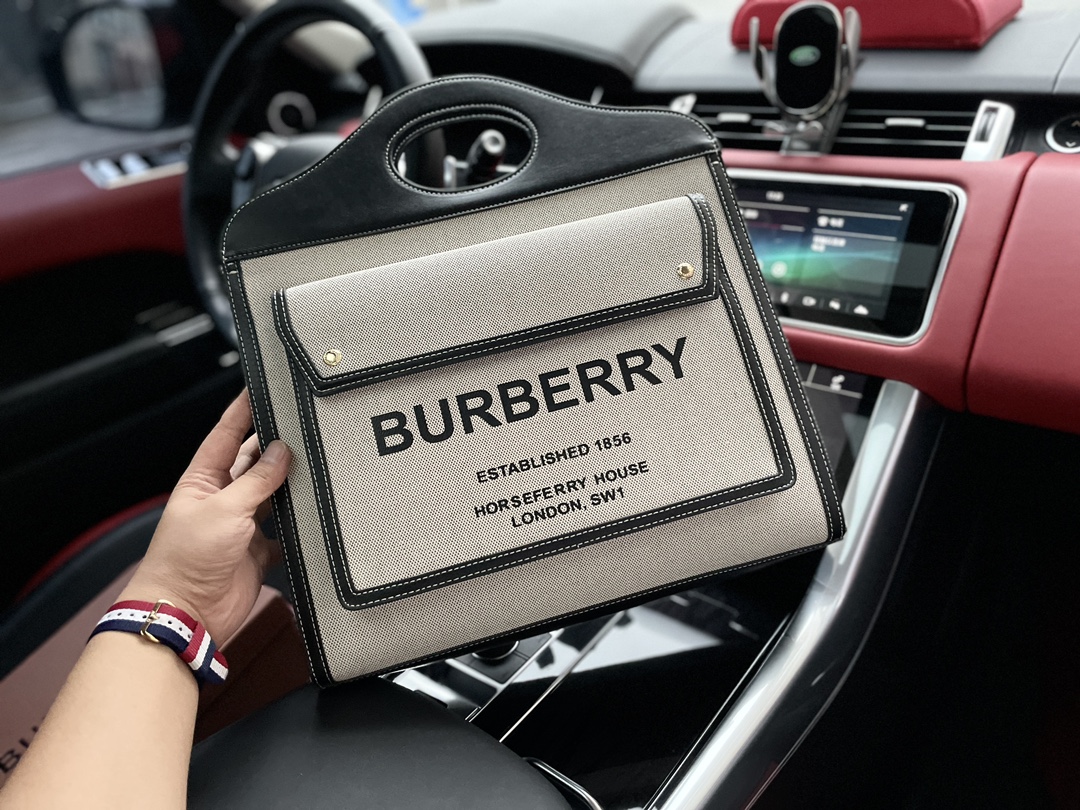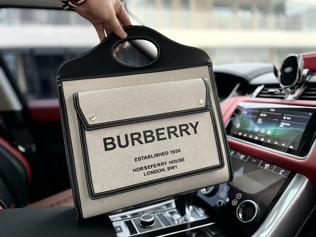 High-end Burberry tote bag, imported canvas, smooth zipper, detailed craftsmanship.