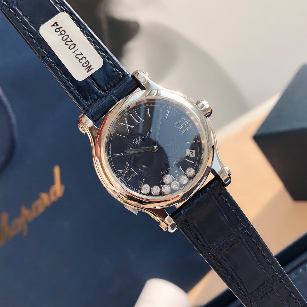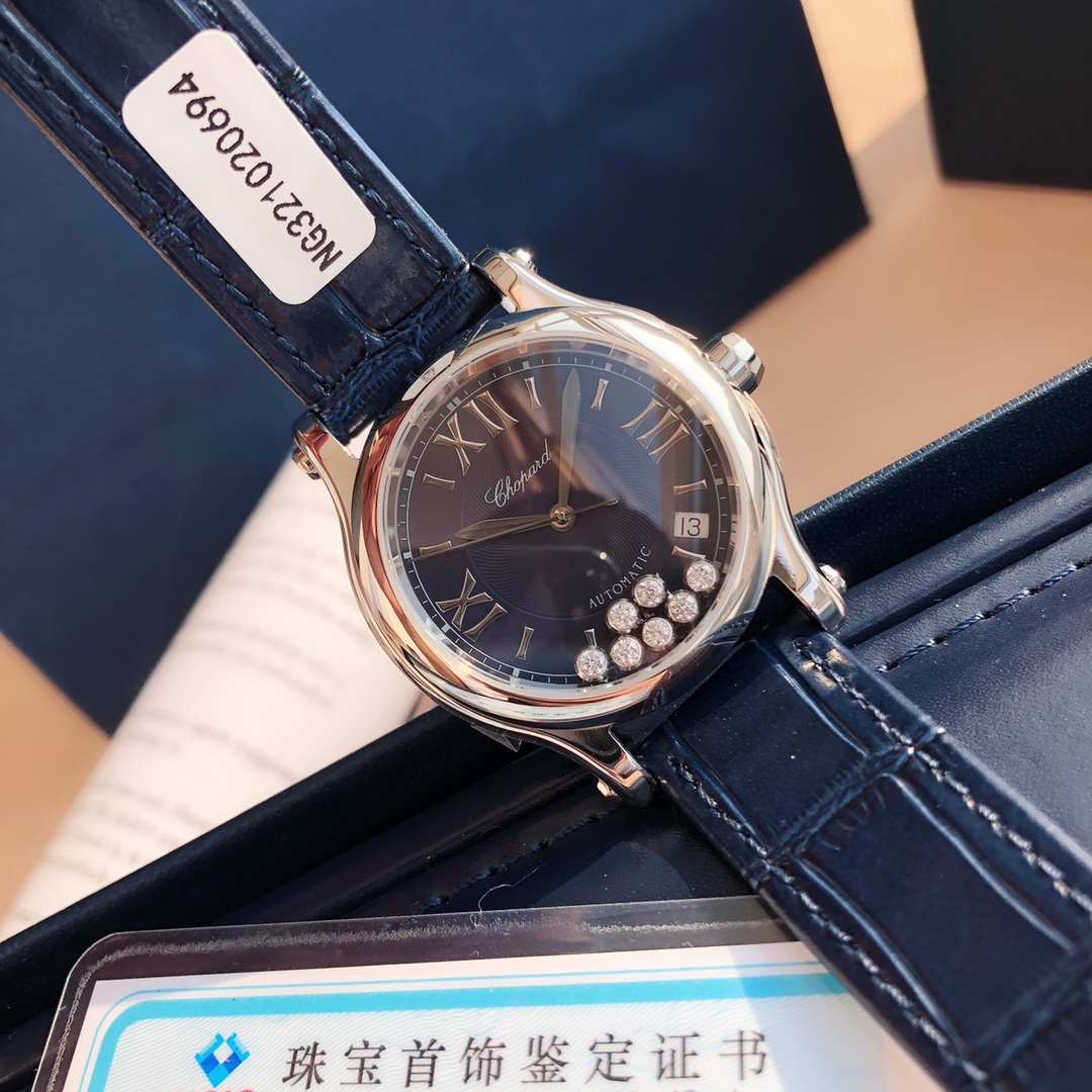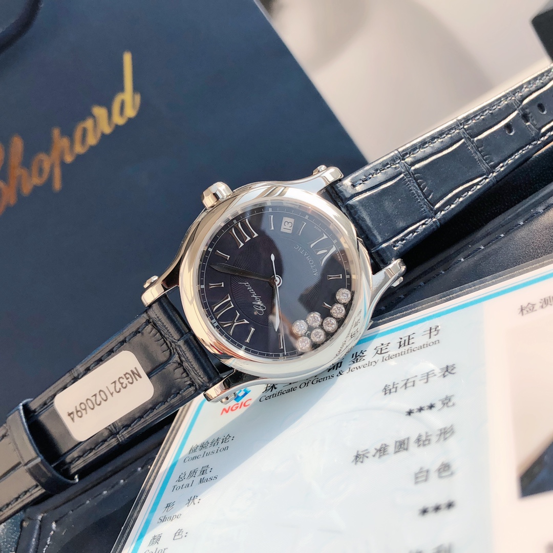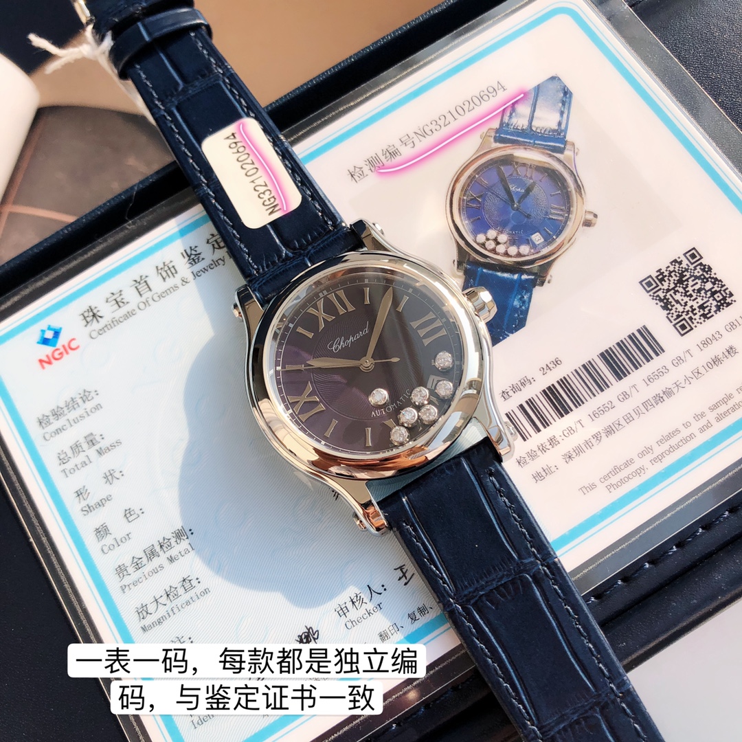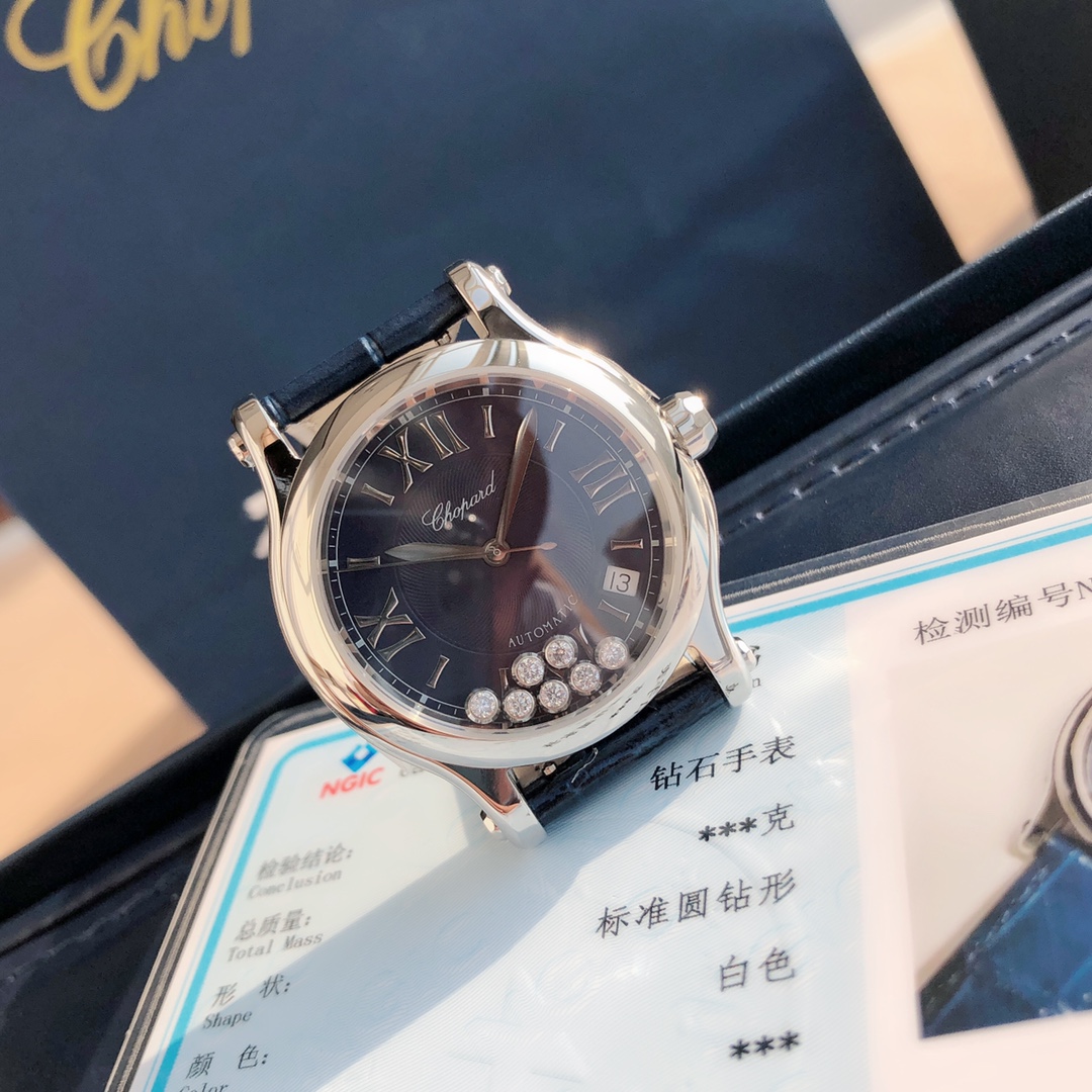 High-end premium goods! Exclusive to the entire network, Chopard (HAPPY DIAMONDS), as Chopard's best-selling series, has always interpreted the brand's iconic concept of flexible diamonds with exquisite craftsmanship. The pieces in this series are soft, beautiful, and fashionable. It's often said that men wear IWC and women wear Chopard—having gold (advancement) and diamonds (profit) carries a very good寓意. The diamond beads inside the dial can slide and rotate freely, symbolizing a turn of fortune and rolling in wealth, allowing every woman to astonish the world with the most enchanting style. This time, we bring you the Chopard Happy Diamonds series—the most representative watch under Chopard. The most distinctive feature is the seven real diamonds between the layered glass. Each piece comes with an inspection certificate, one watch, one code. The seven diamonds spin on their own, like dancing, which can be considered a boon for women's watches—adding another classic watch home besides the Blue Balloon. This Happy Sport stainless steel watch is fashionable and gentle, with iconic moving diamonds dancing cheerfully and shining brilliantly. The smooth, dynamic case and the modern silver dial perfectly reflect Chopard's interpretation of casual style. The strap also deserves mention—100% American alligator leather strap. If fake, guaranteed refund. The luxury of the seven South African diamonds inside goes without saying❗️ We would never recommend it to you without full confidence—it's truly a heavyweight, high-quality product. Only through close cooperation in multiple aspects, such as original materials and the original assembly factory, can this be achieved. I have always wanted to bring you the best watches. The production cycle for this model often takes over half a year. Only this batch available—don’t ask after it’s sold out. Uses a modified genuine 9015 movement, shipped with packaging.