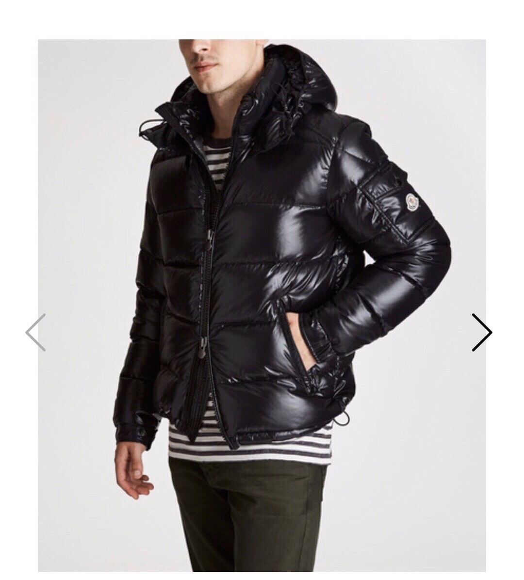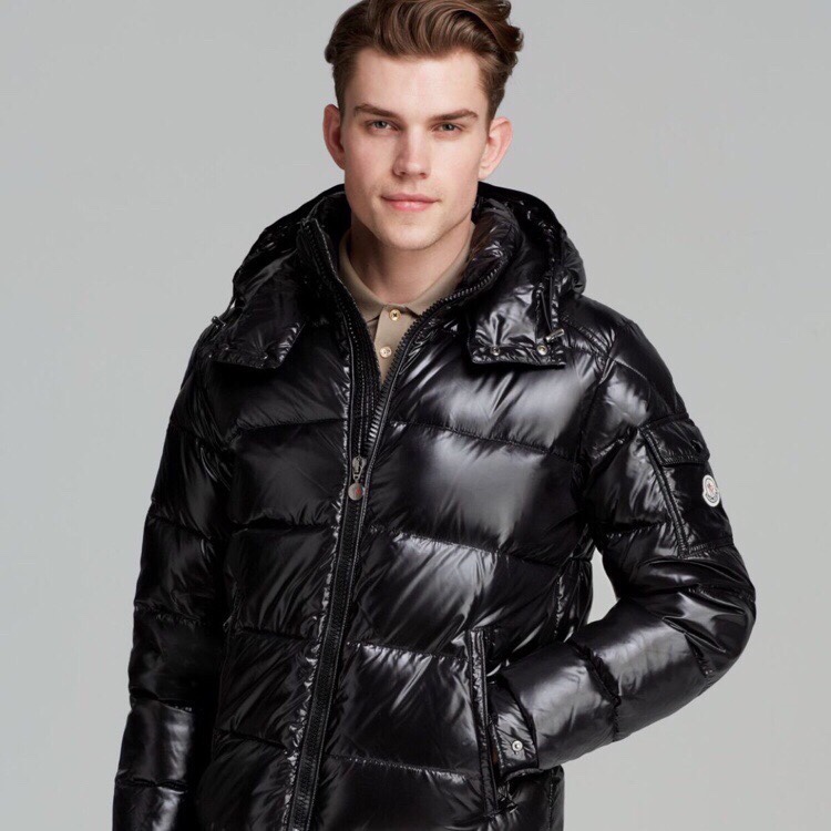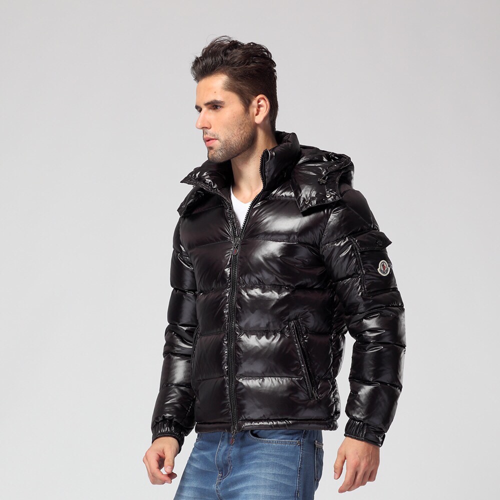 High-end Moncler Maya short down jacket in Guangzhou. Classic design with 80s style details, glossy nylon, signature quilting, detachable hood, adjustable hem, and iconic branding.