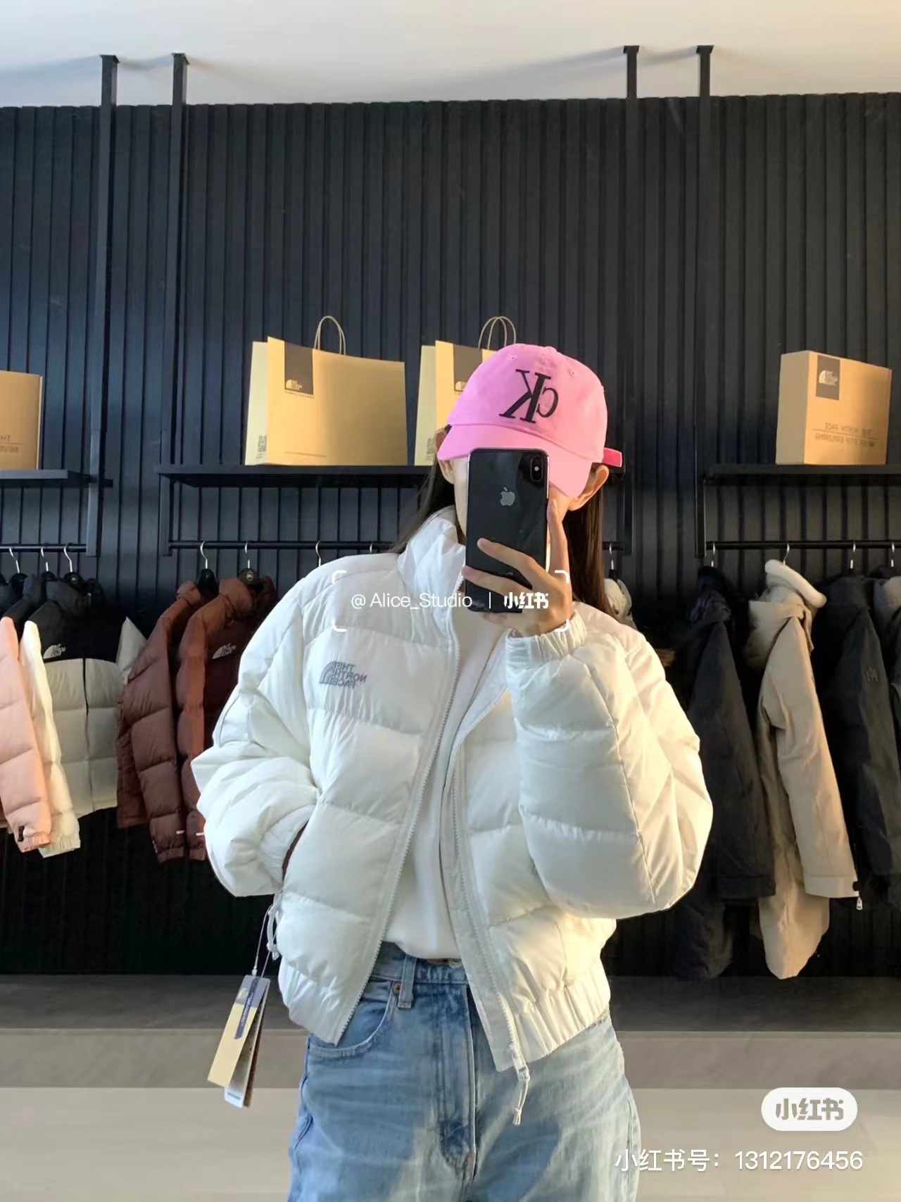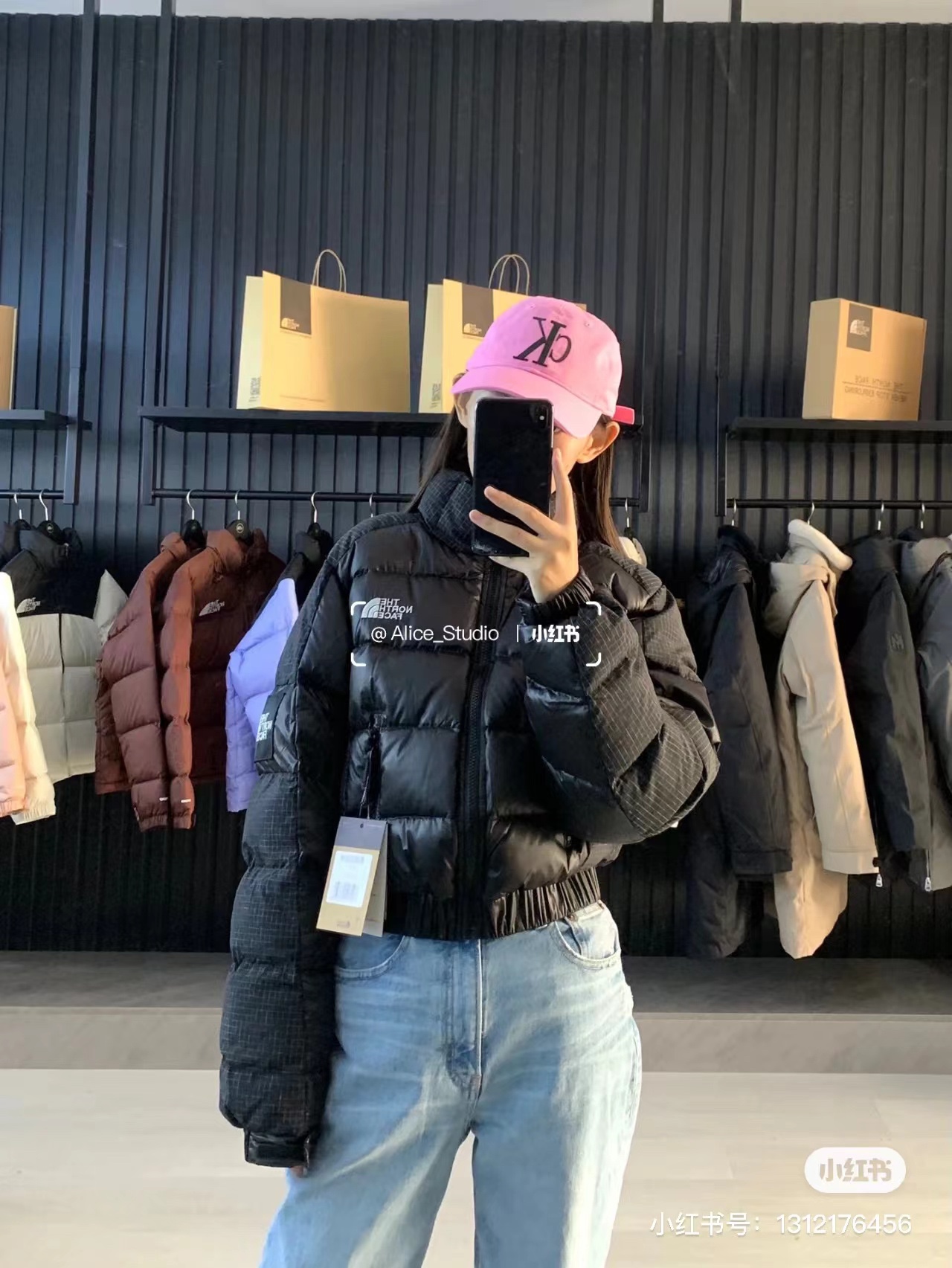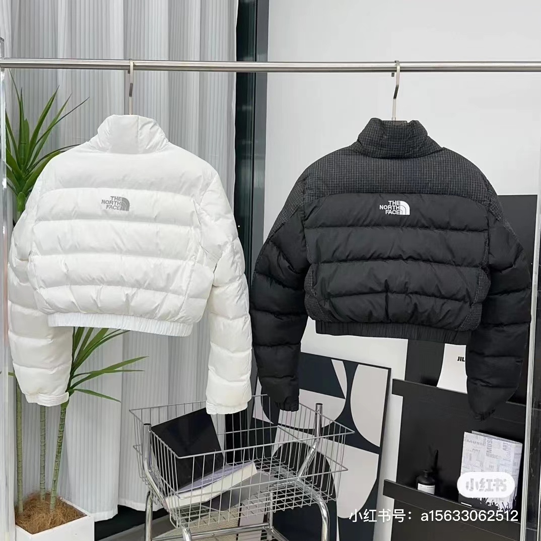 It's extremely popular, worn by various celebrities and internet influencers. Paired with high-waisted pants to make legs look longer, it's the most suitable North Face down jacket for women. Black is versatile and slimming, the stand-up collar design highlights personal charm, windproof and cold-resistant, offering comfort and leisure. The patchwork plaid adds just the right touch of fashionable detail, showcasing a unique and interesting style. The high-waisted, ultra-short design looks very elegant when worn, rejecting a bulky winter. The overall garment is lightweight and warm, accentuating long legs. Short styles are this year's ultimate, super cool when worn.