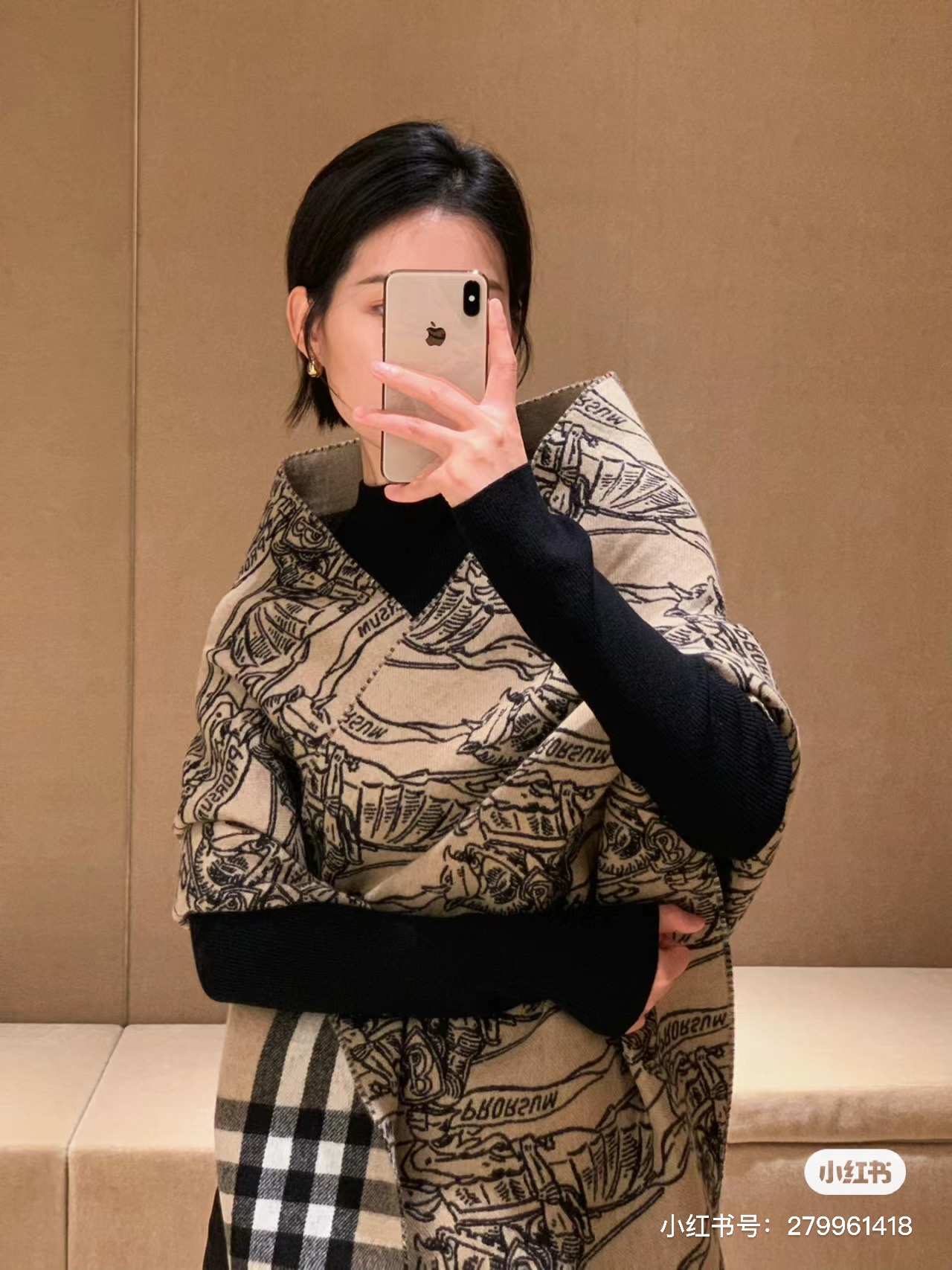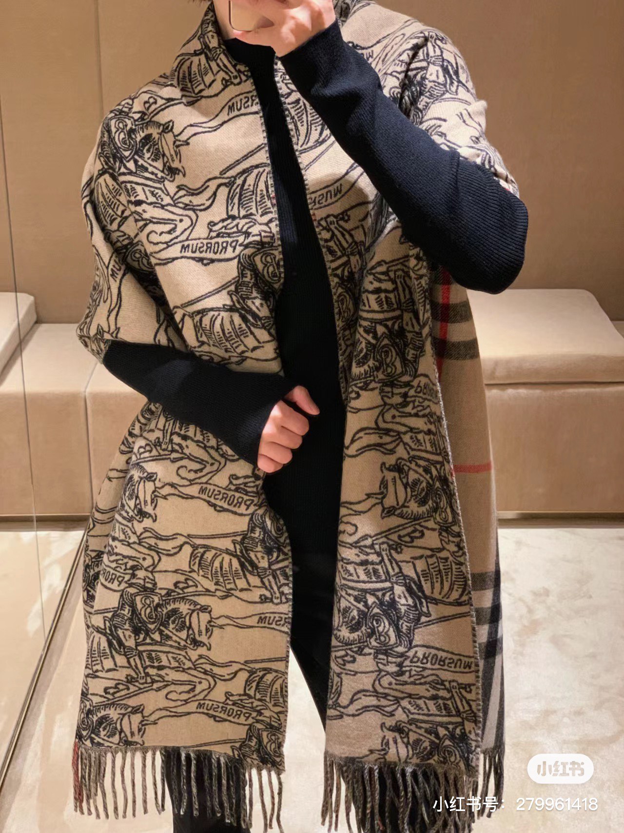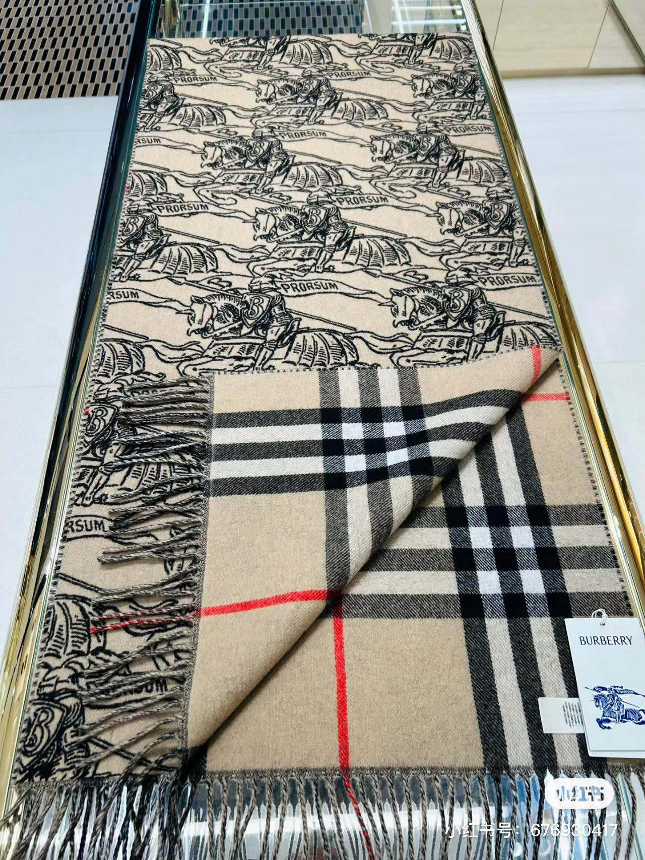 High-quality exclusive hit, Bur double-sided dual-use equestrian knight logo cashmere scarf shawl, various beautiful styles, hailed as Burberry's most beautiful style this year, the most classic jacquard equestrian knight logo plus the most beautiful classic khaki color matching shawl, exquisitely crafted scarf, made of jacquard worsted cashmere fabric, decorated with the brand's large check pattern and equestrian knight design, showcasing Burberry style.