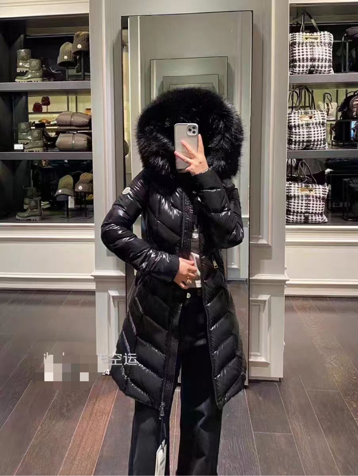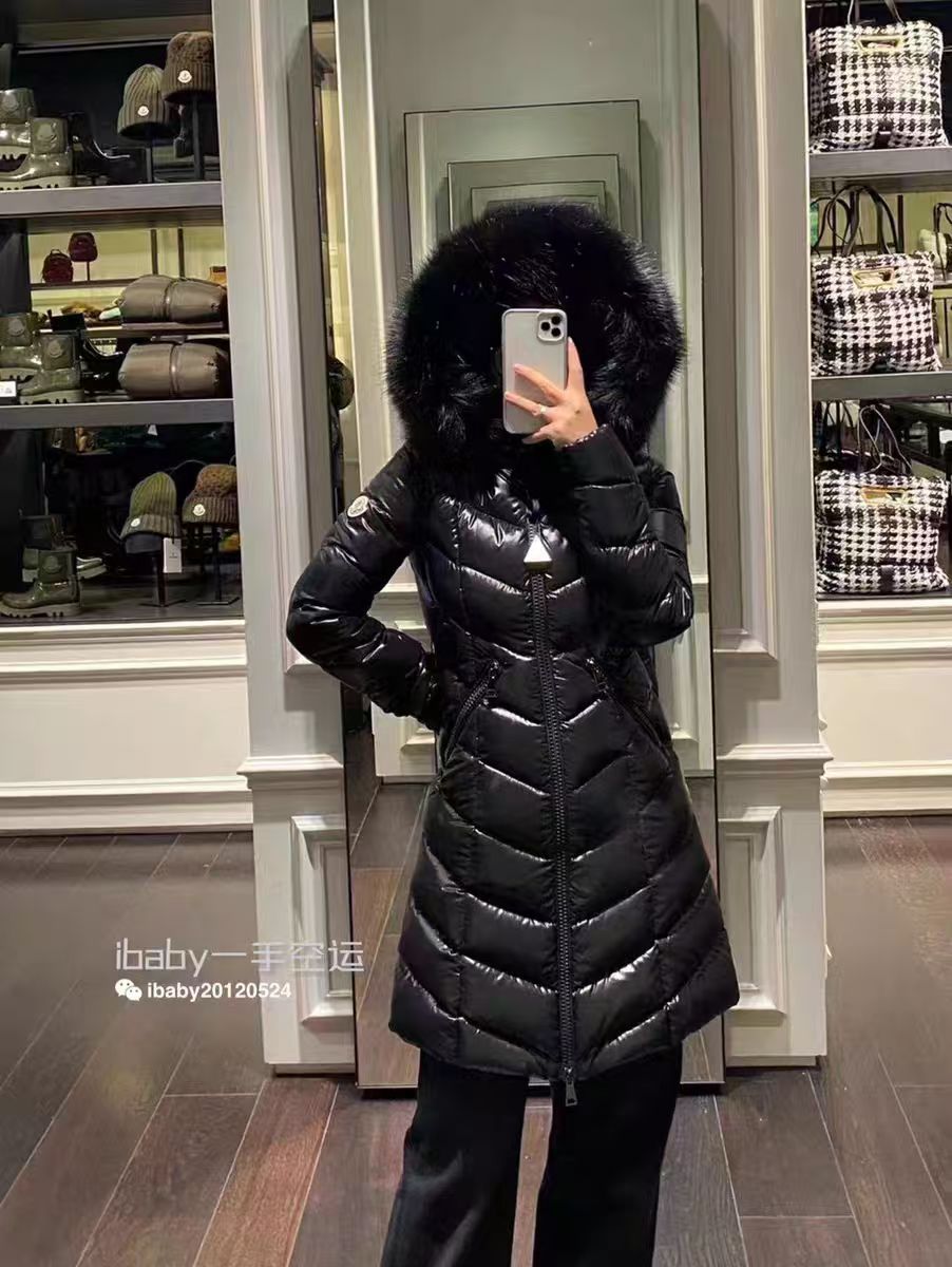 Guangzhou high-version Moncler Fulmarus mid-length down jacket, diamond-pattern hood with oversized fox fur collar, slim and slimming, store quality, top craftsmanship, original hardware, original wash tags, impeccable details.