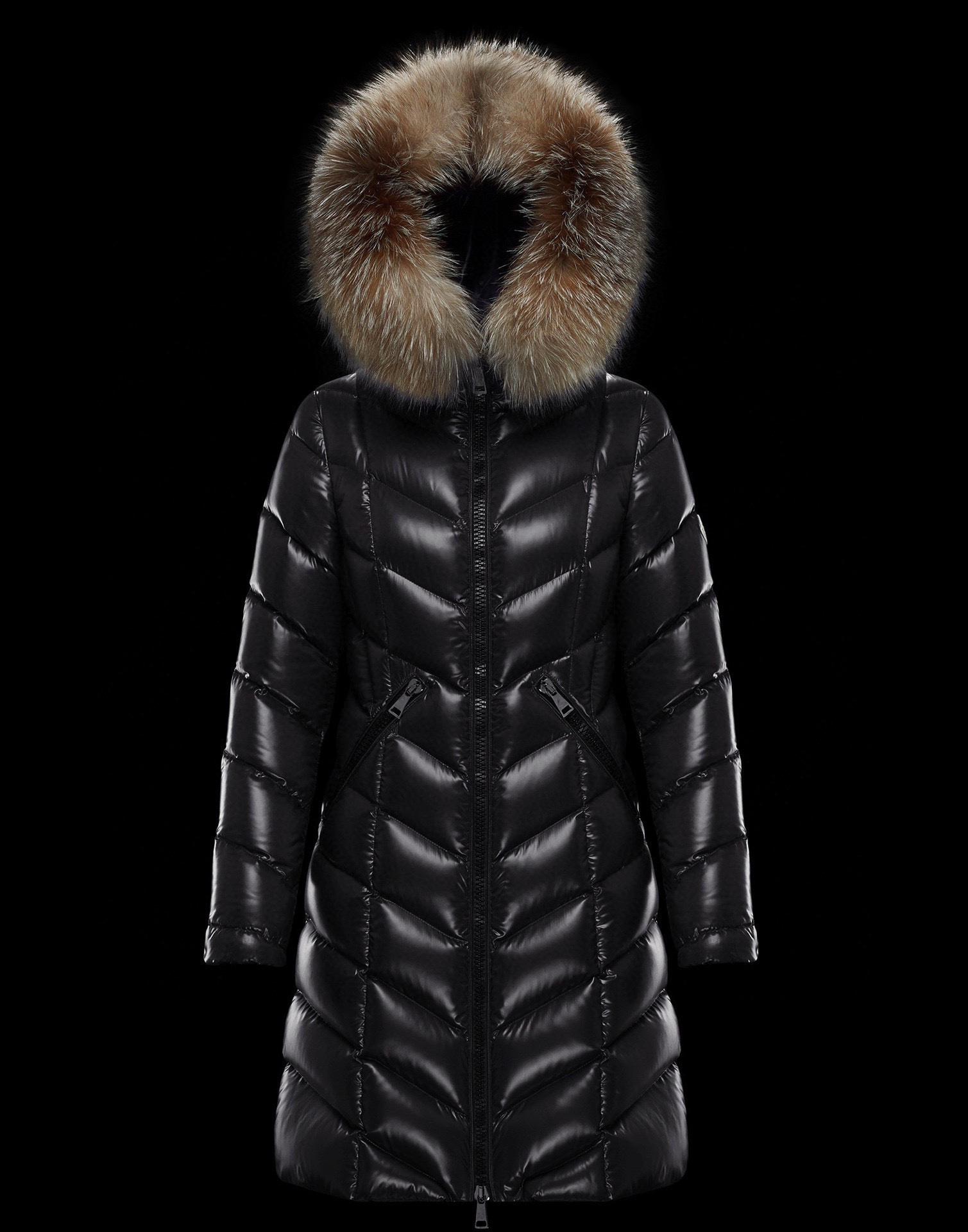 High-quality Guangzhou Moncler Fulmarus long down jacket with fox fur hood. Colors: Black. Sizes: 1-4.