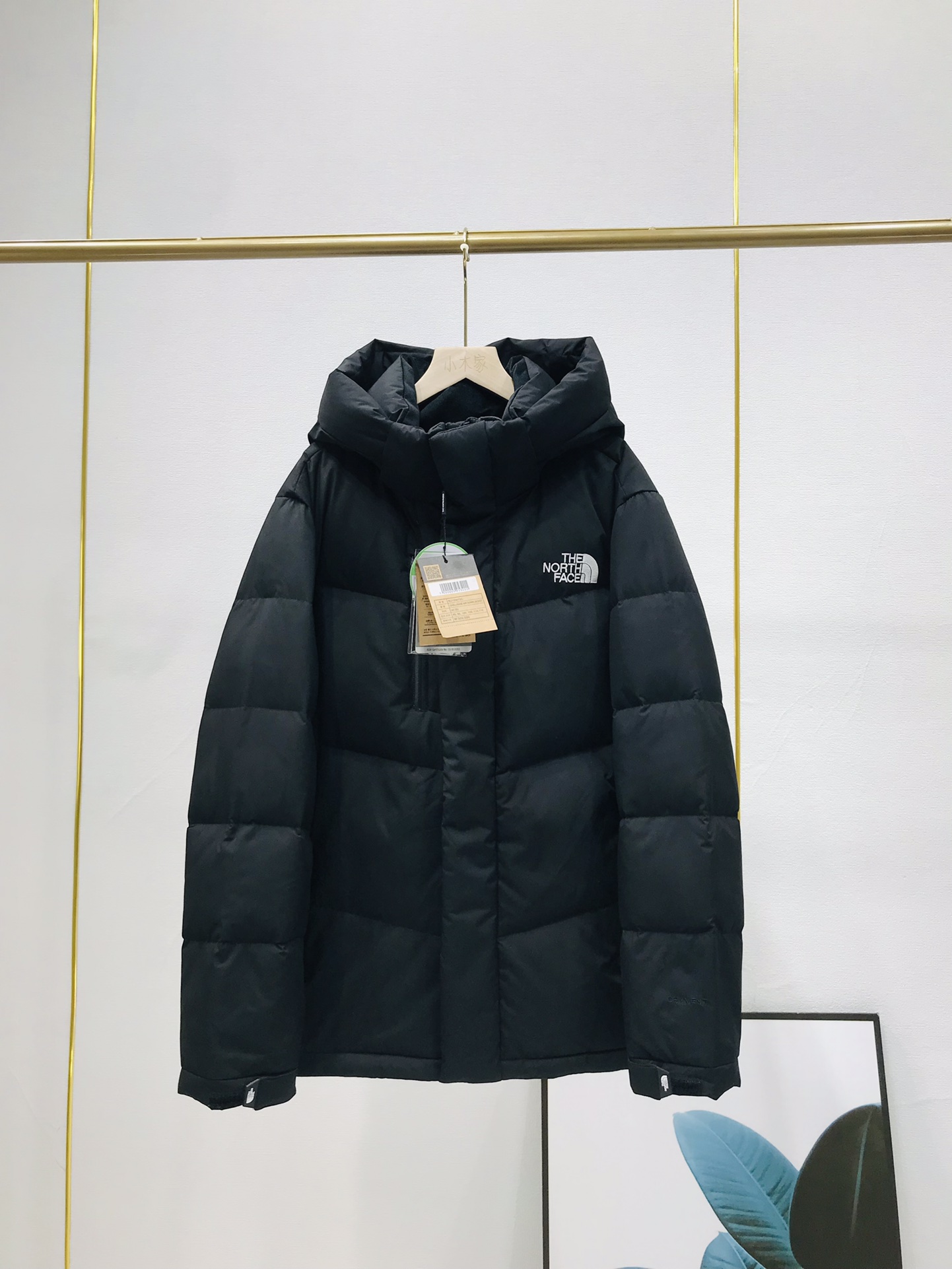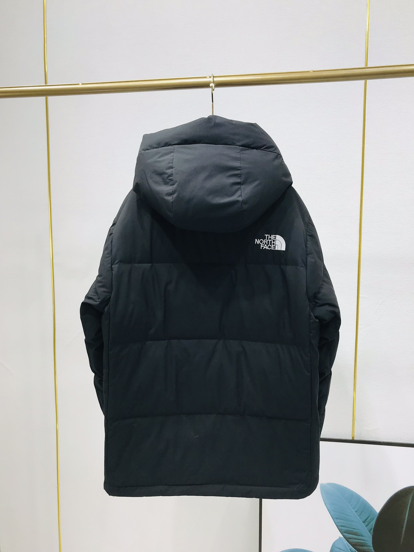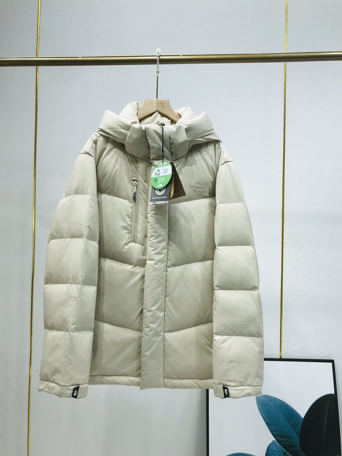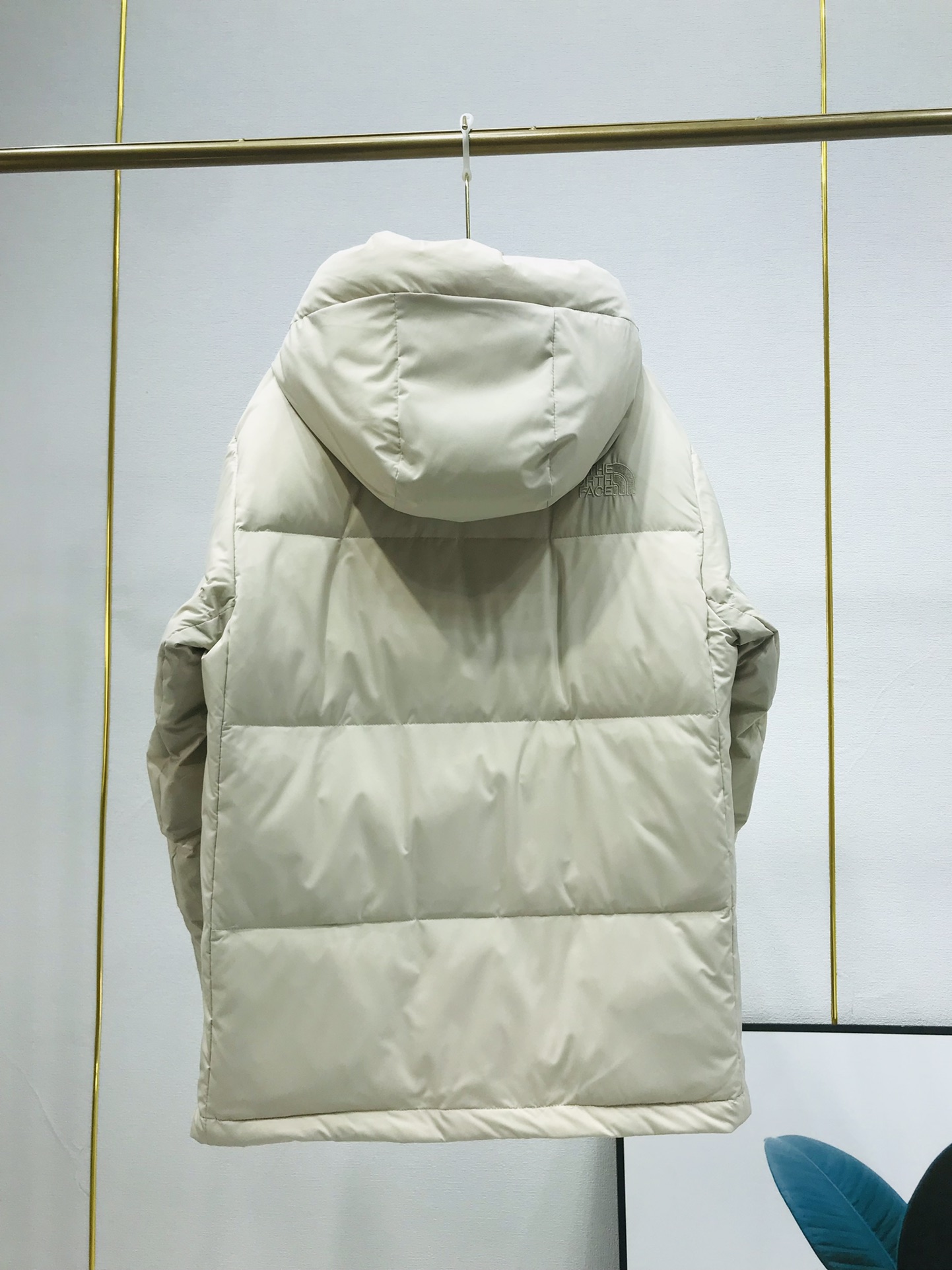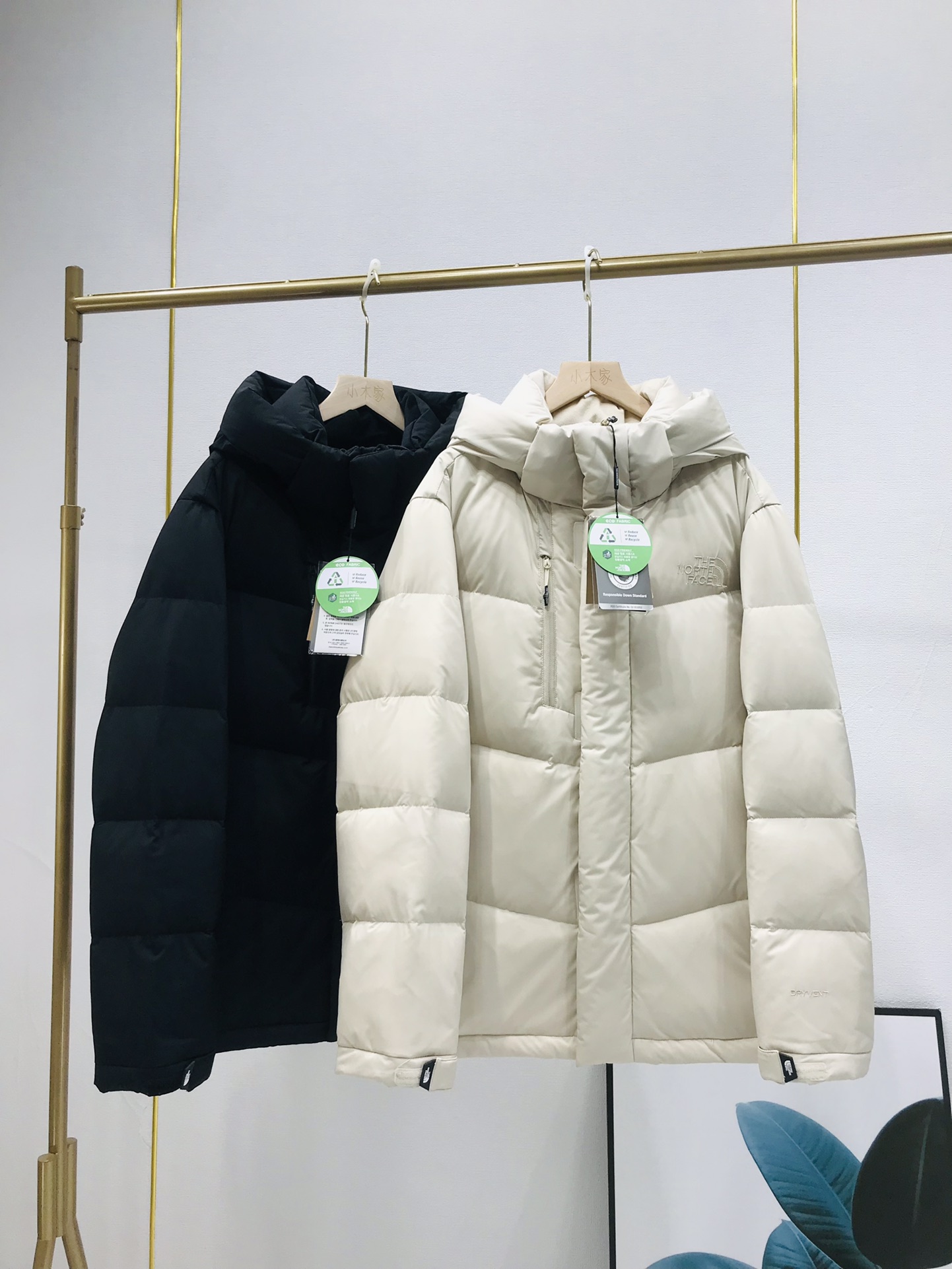 High-quality Guangzhou version The North Face hooded down jacket. 90% white duck down. Colors: Black, Off-white. Sizes: S to 3XL.
